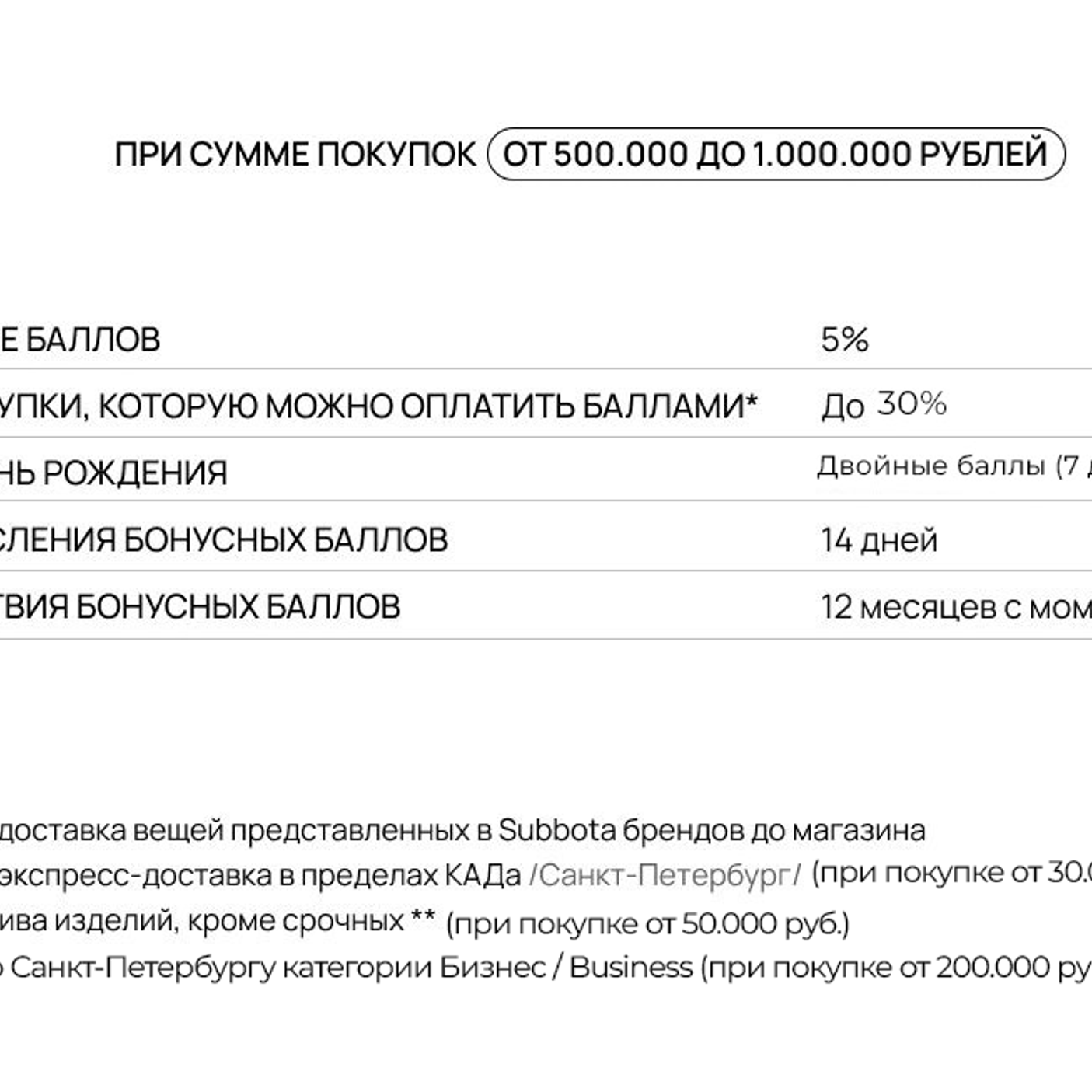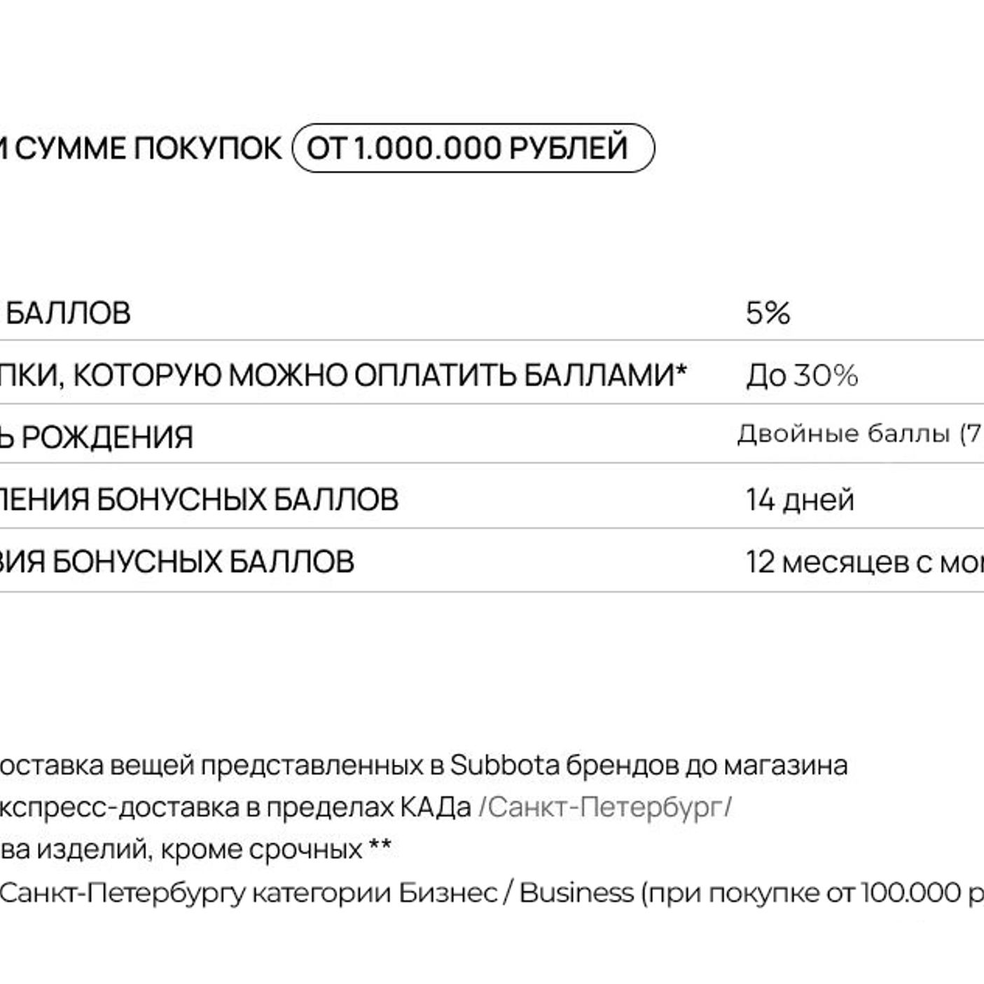 - Ранний доступ к распродажам и другим специальным предложениям Subbota (если такое предусмотрено акцией)