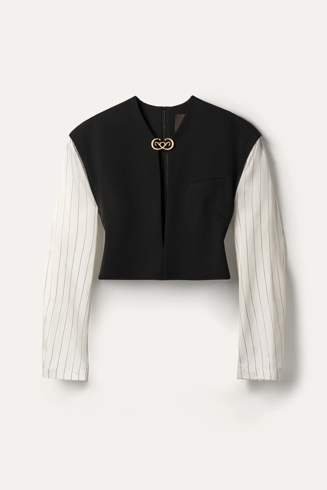 Блузкa Transform — это не просто одежда, это символ трансформации и обновления. Она создана из пиджаков прошлой коллекции и дополнена контрастной подкладочной тканью в полоску. В блузке Transform трансформироваться под разные случаи жизни.
