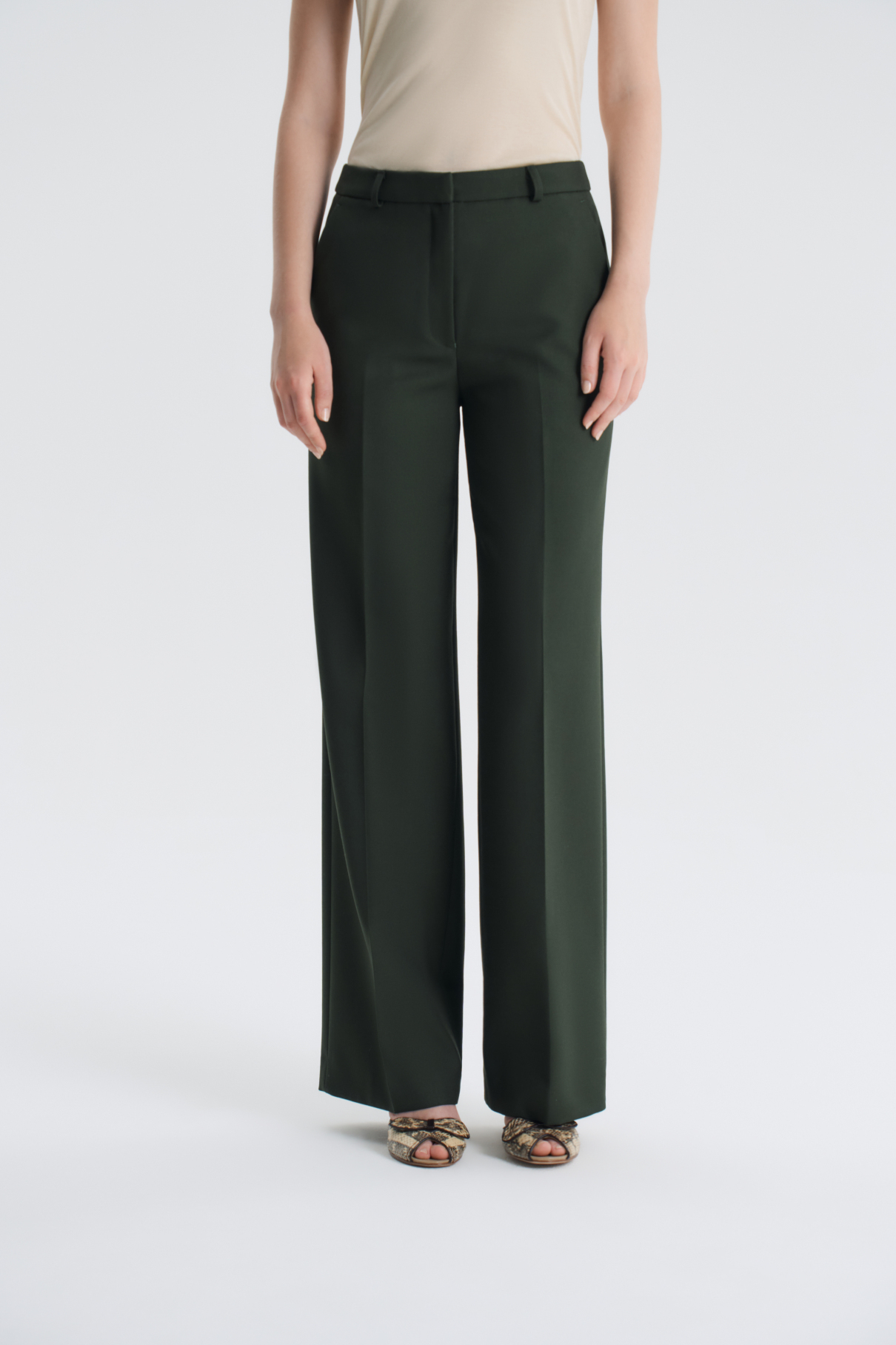 Эти брюки с застёжкой на молнию и крючок, со шлёвками для ремня, предлагают универсальную длину, подходящую для каблуков любой высоты. Модель выполнена из премиальной ткани с 70% содержанием шерсти.