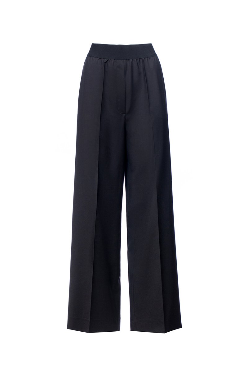 Брюки-палаццо на резинке. Боковые карманы. Сзади карманы-листочки. Свободная посадка