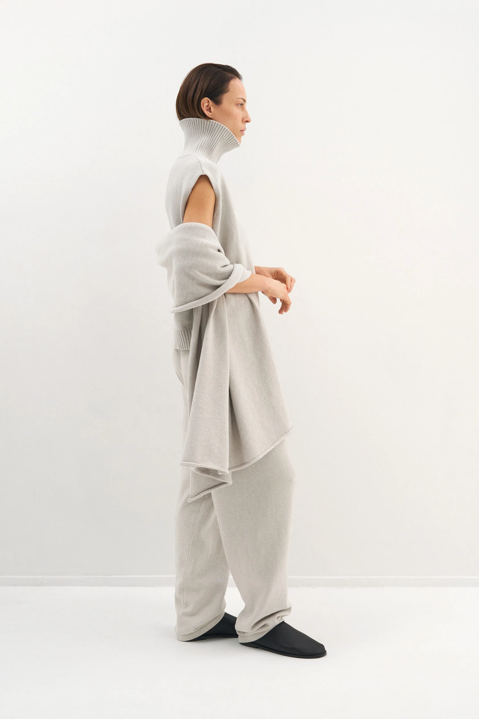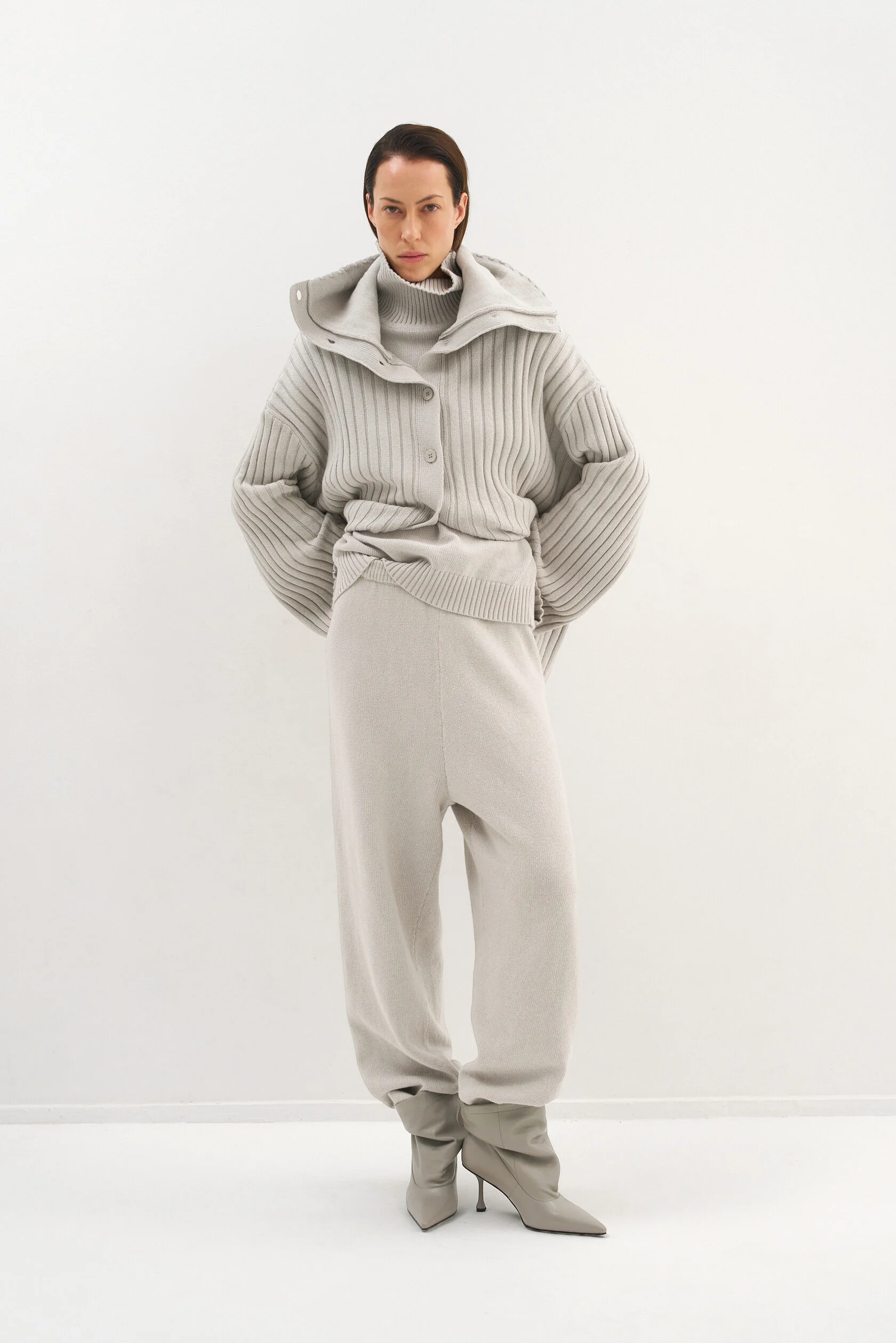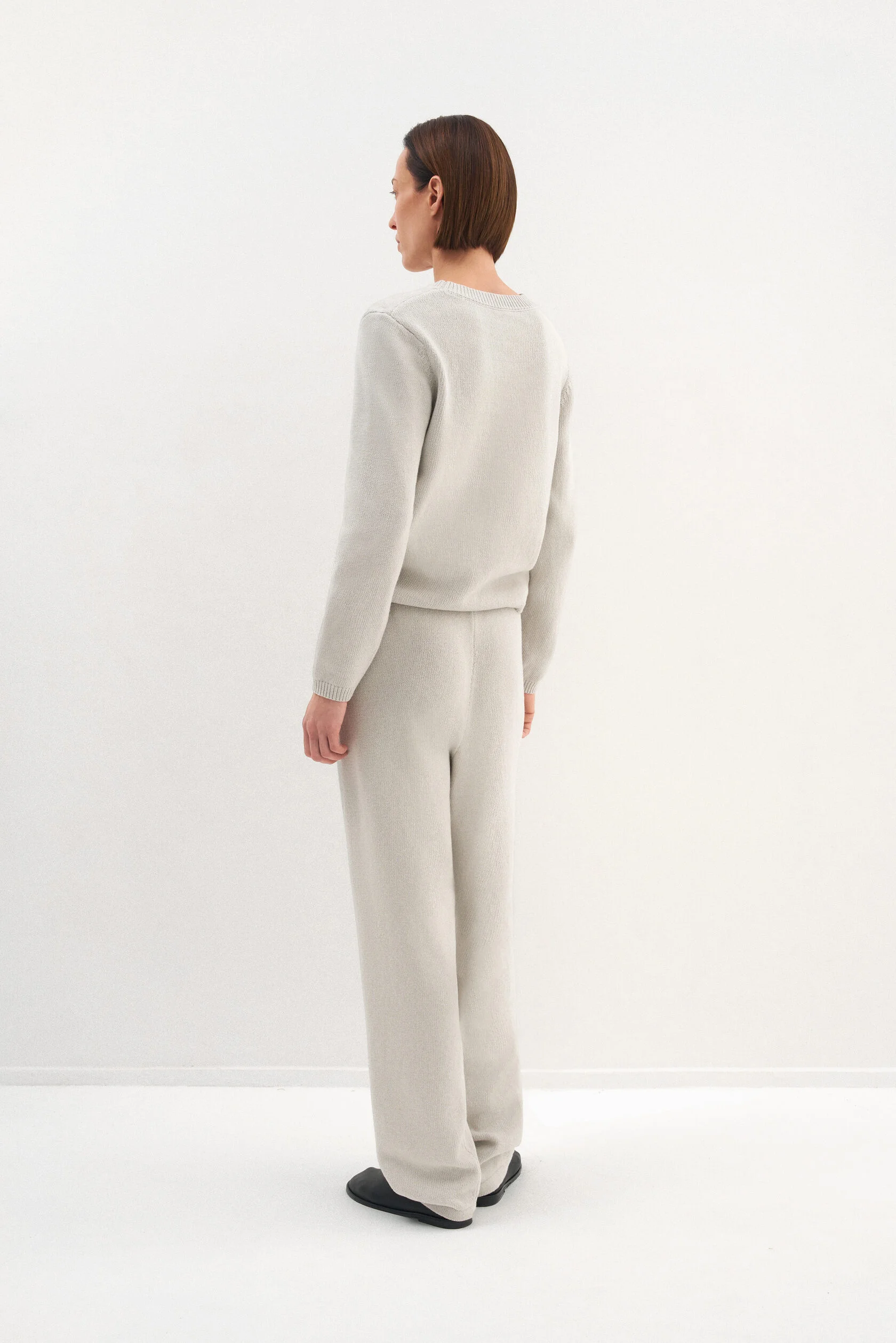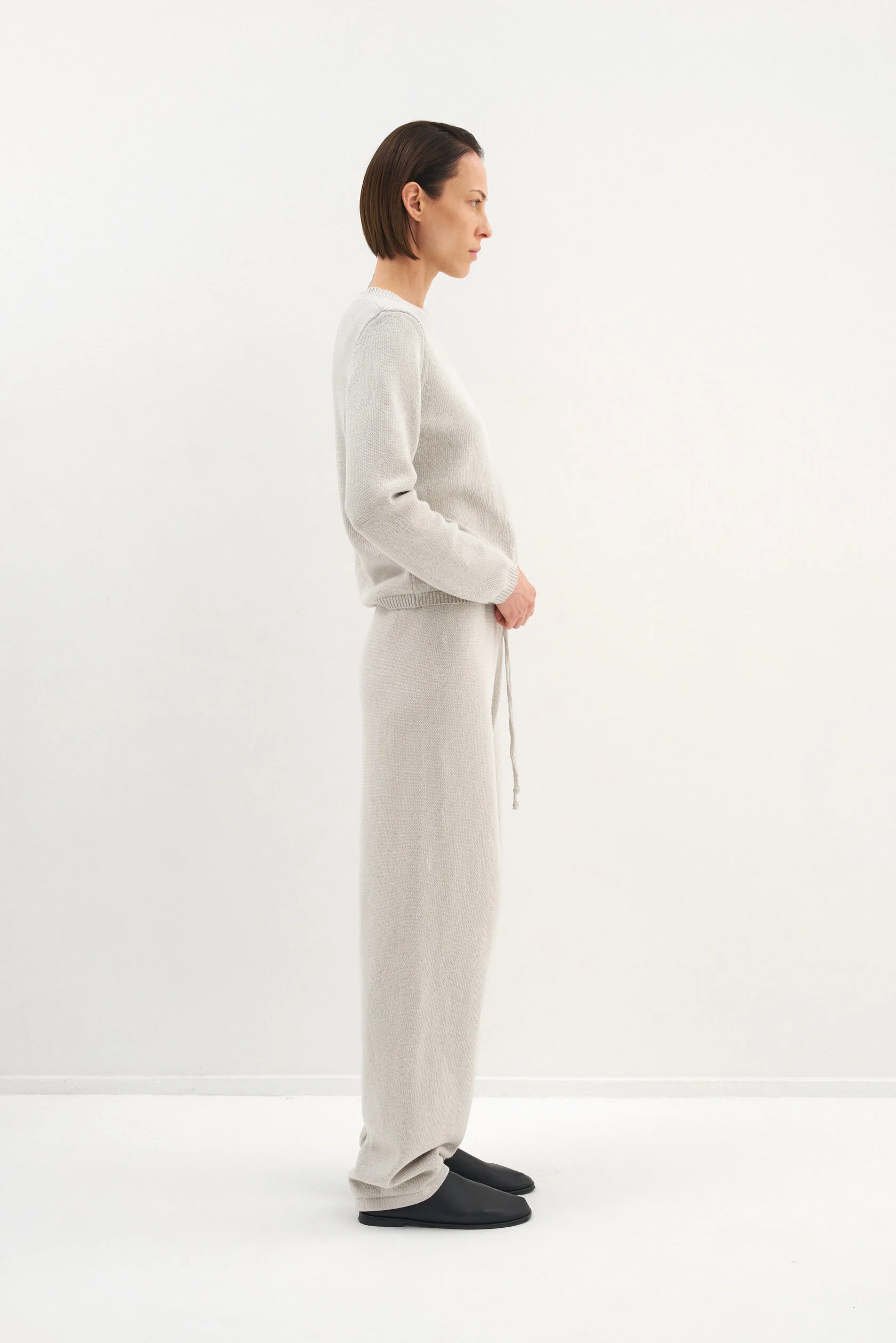 За основу модели взяли силуэт-бестселлер из коллекции Опора. Новый вариант из хлопка, но все еще плотный и комфортный. Модель представлена в двух размерах и рассчитана на среднюю посадку, которую можно регулировать при помощи шнурка внутри пояса.