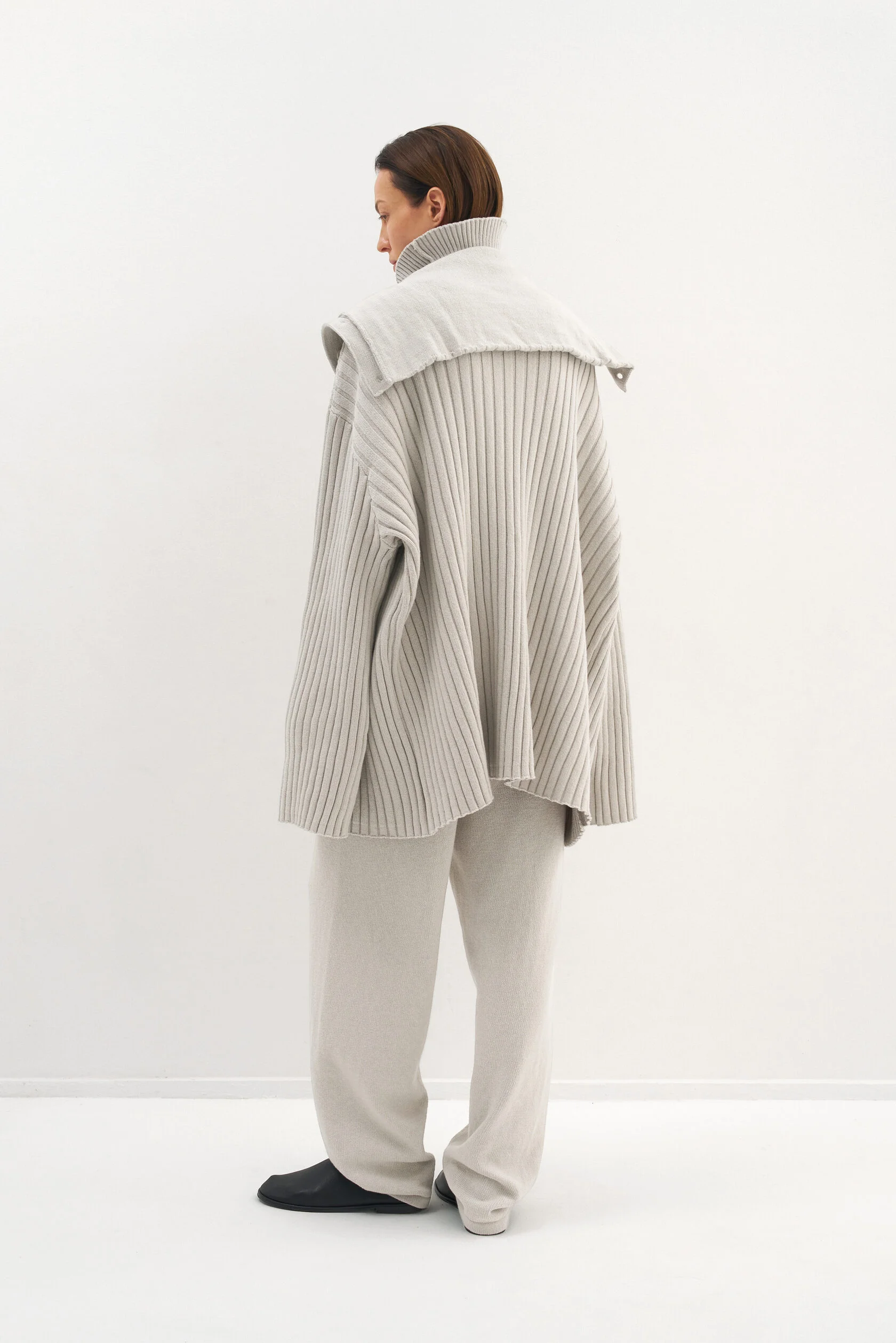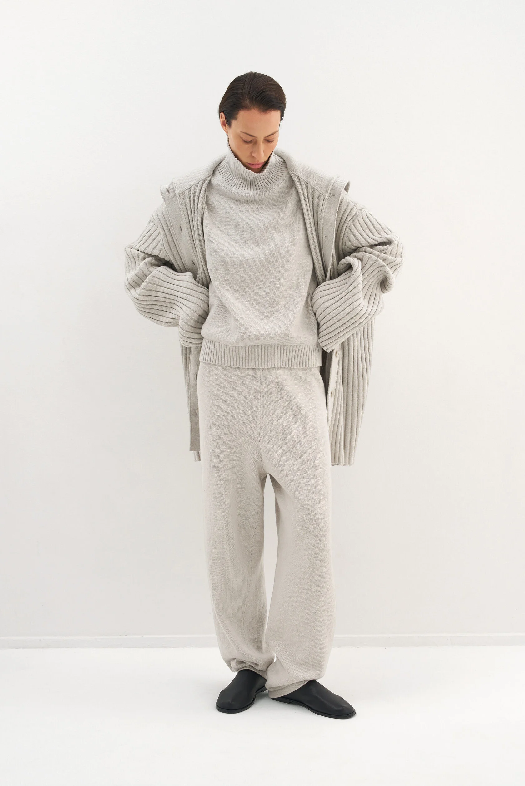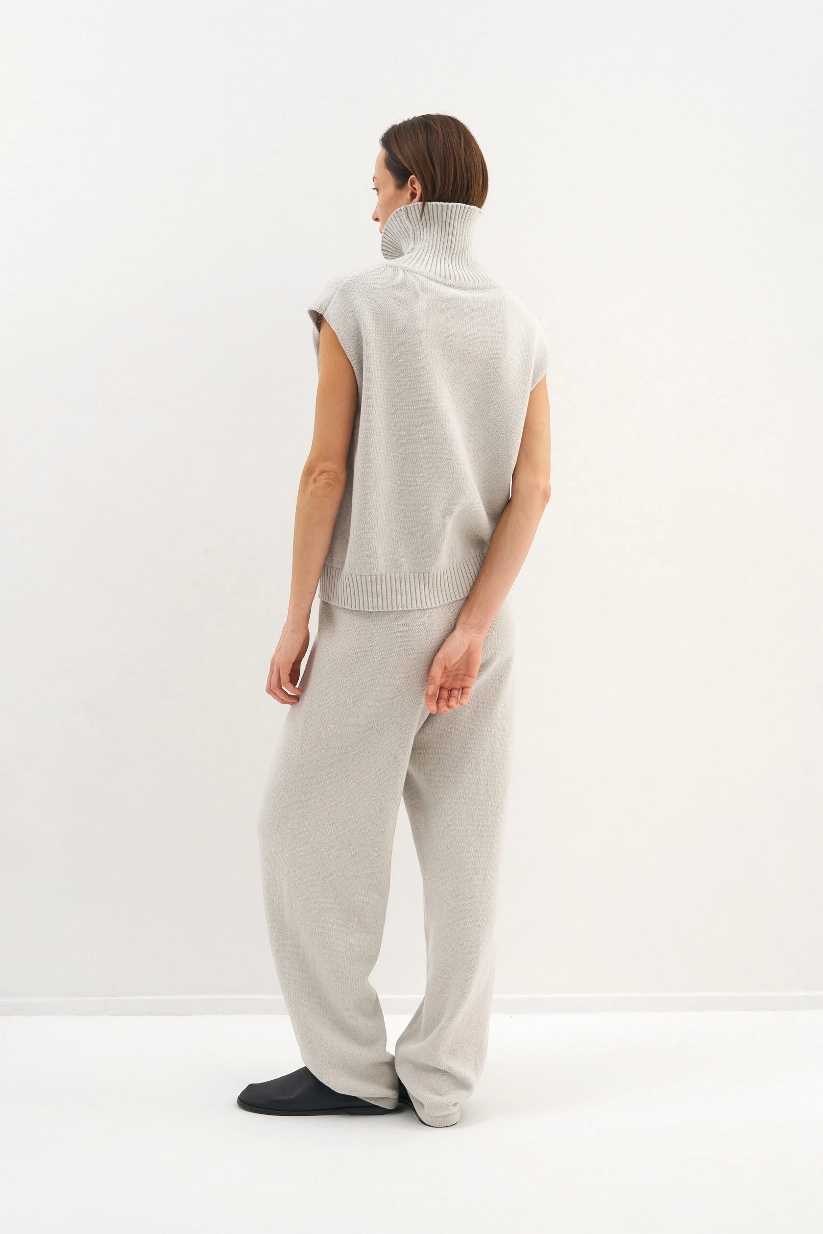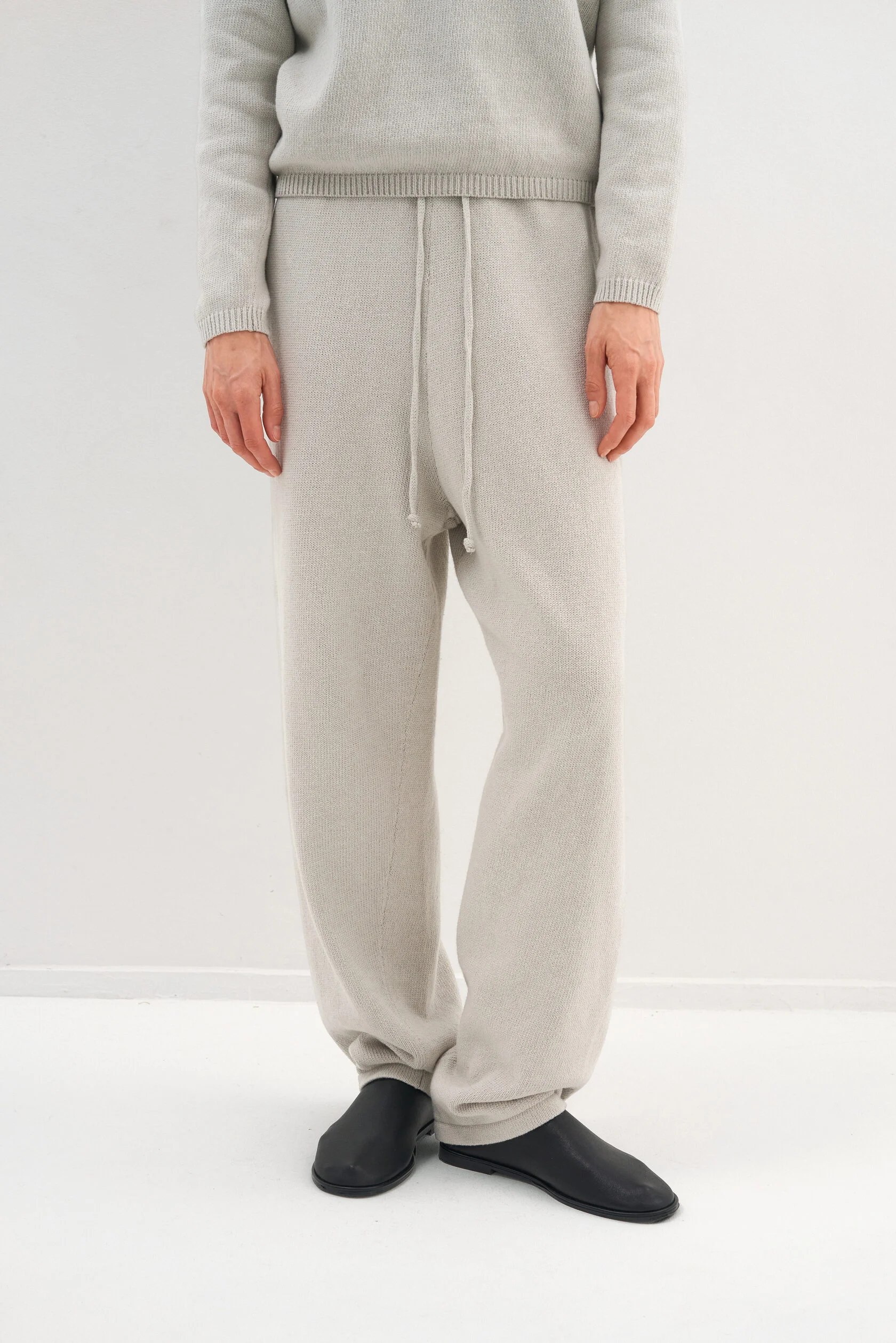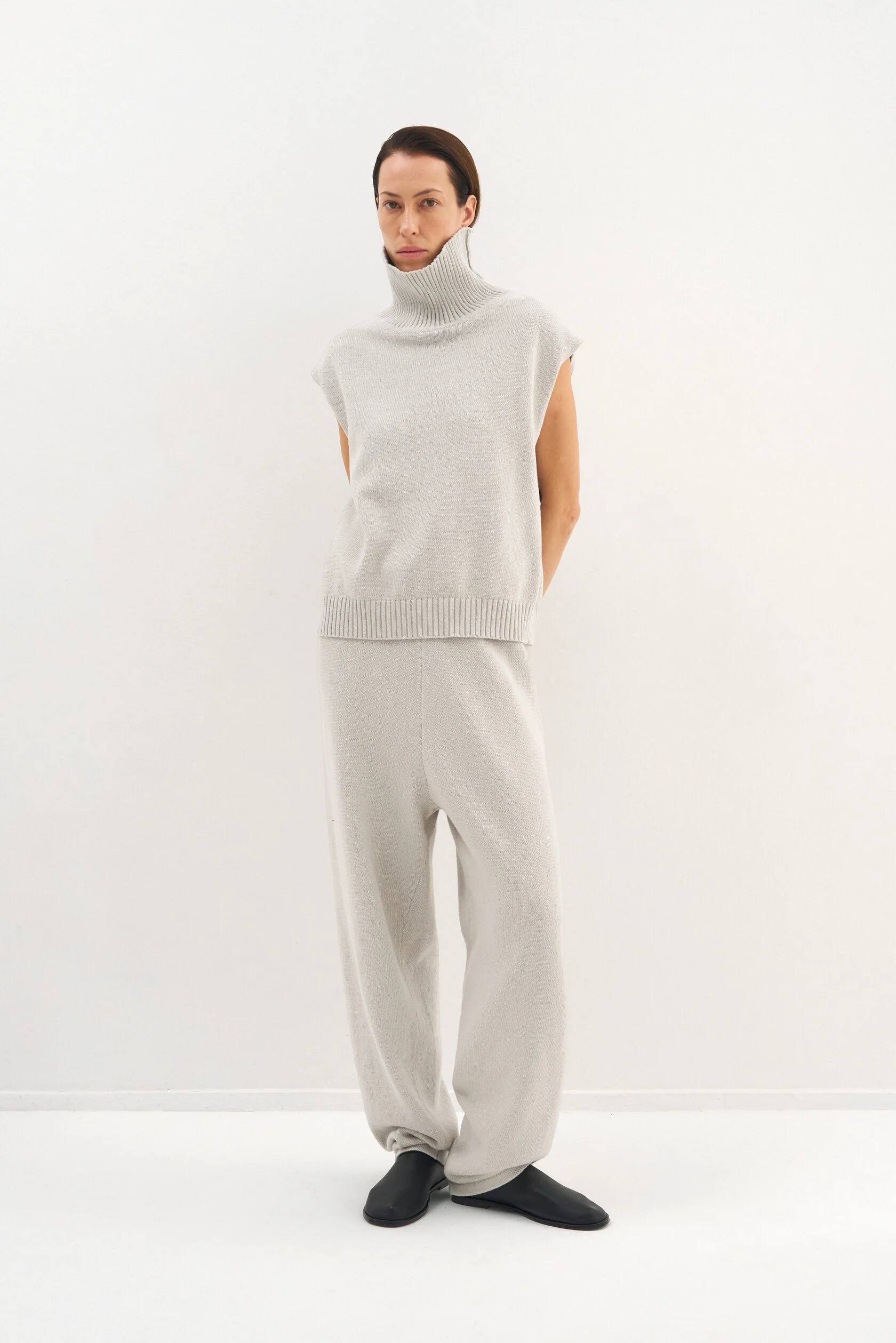 За основу модели взяли силуэт-бестселлер из коллекции Опора. Новый вариант из хлопка, но все еще плотный и комфортный. Модель представлена в двух размерах и рассчитана на среднюю посадку, которую можно регулировать при помощи шнурка внутри пояса.