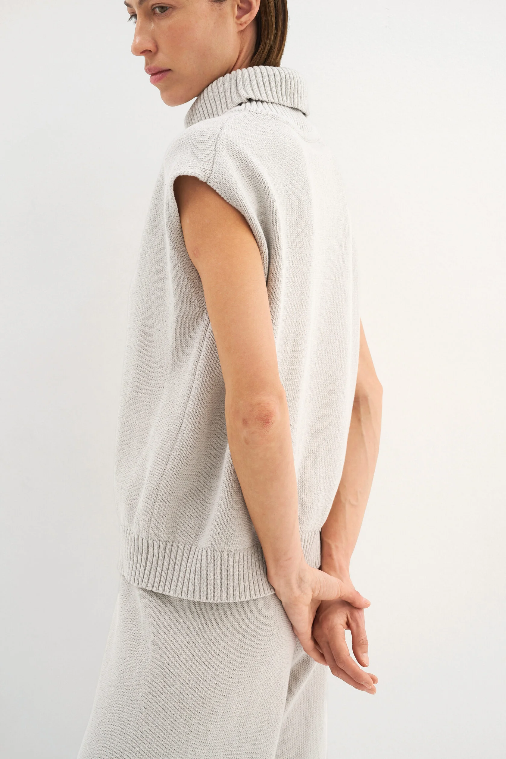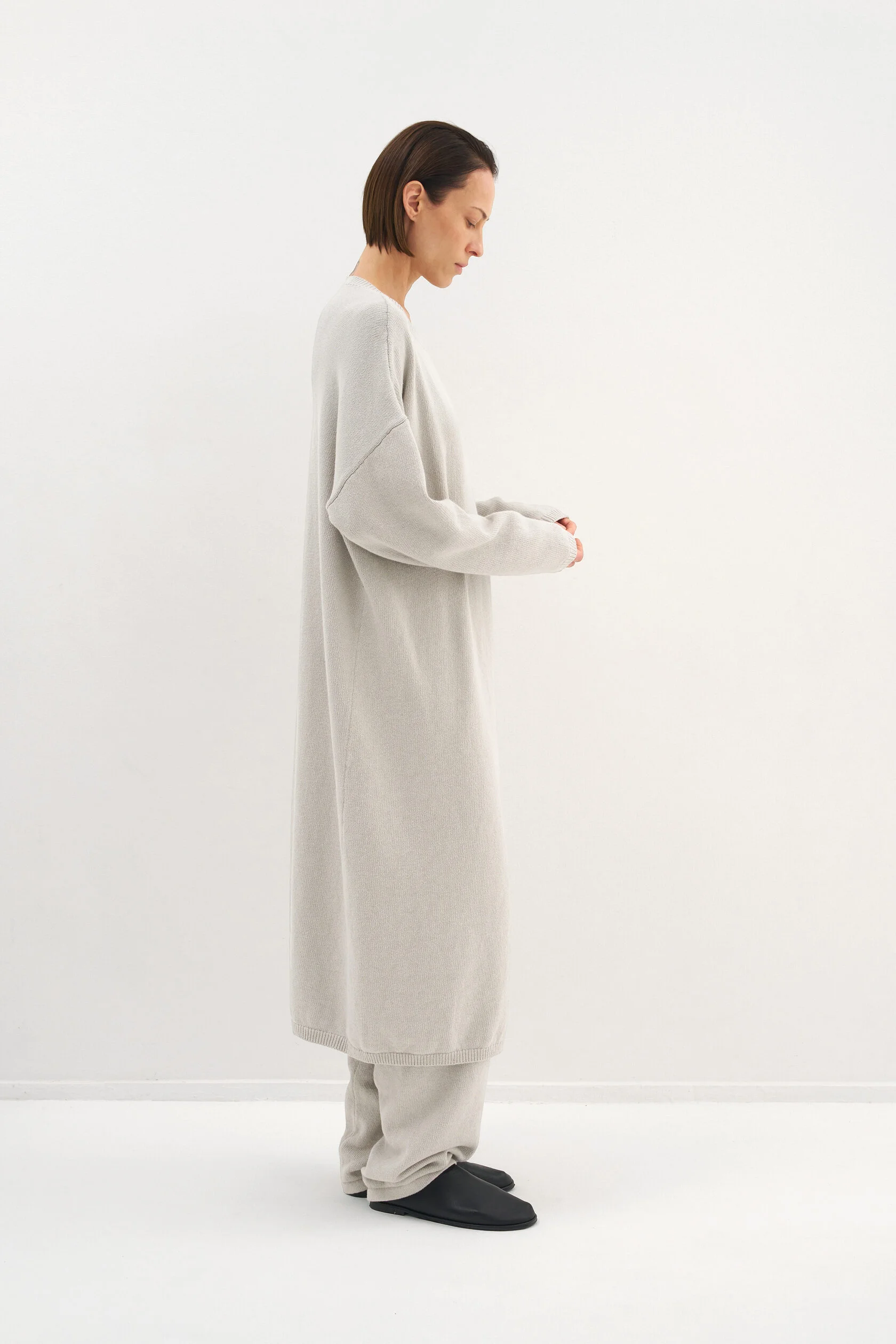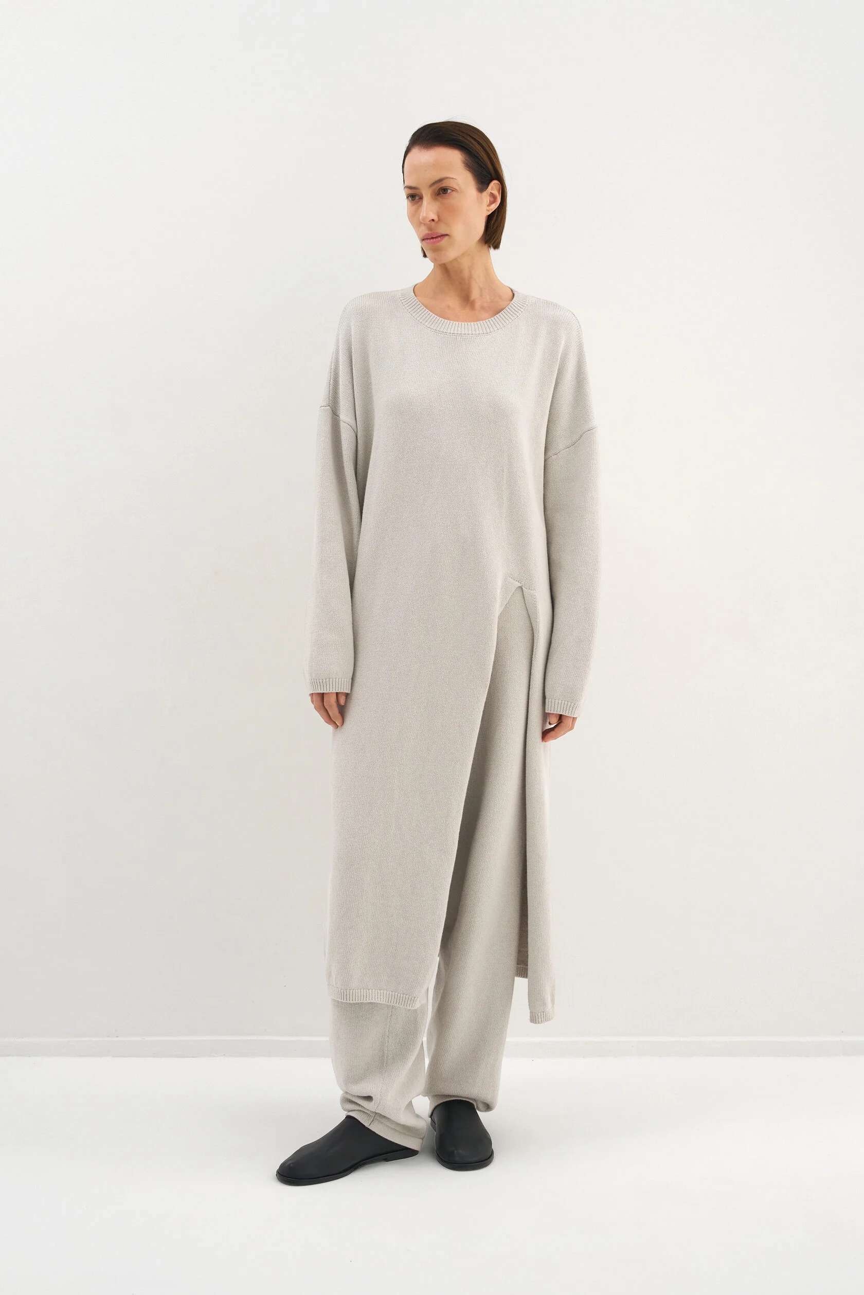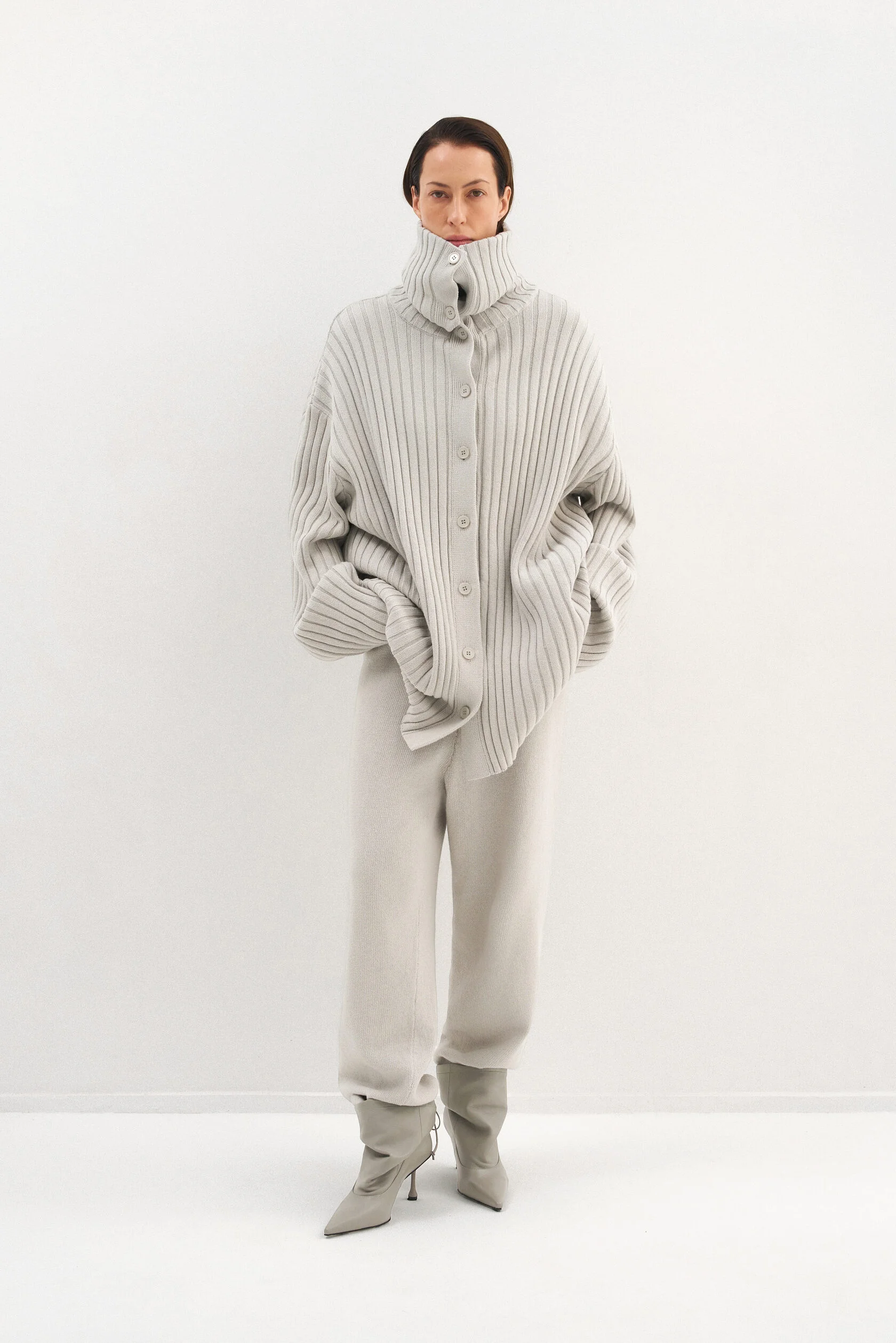 За основу модели взяли силуэт-бестселлер из коллекции Опора. Новый вариант из хлопка, но все еще плотный и комфортный. Модель представлена в двух размерах и рассчитана на среднюю посадку, которую можно регулировать при помощи шнурка внутри пояса.