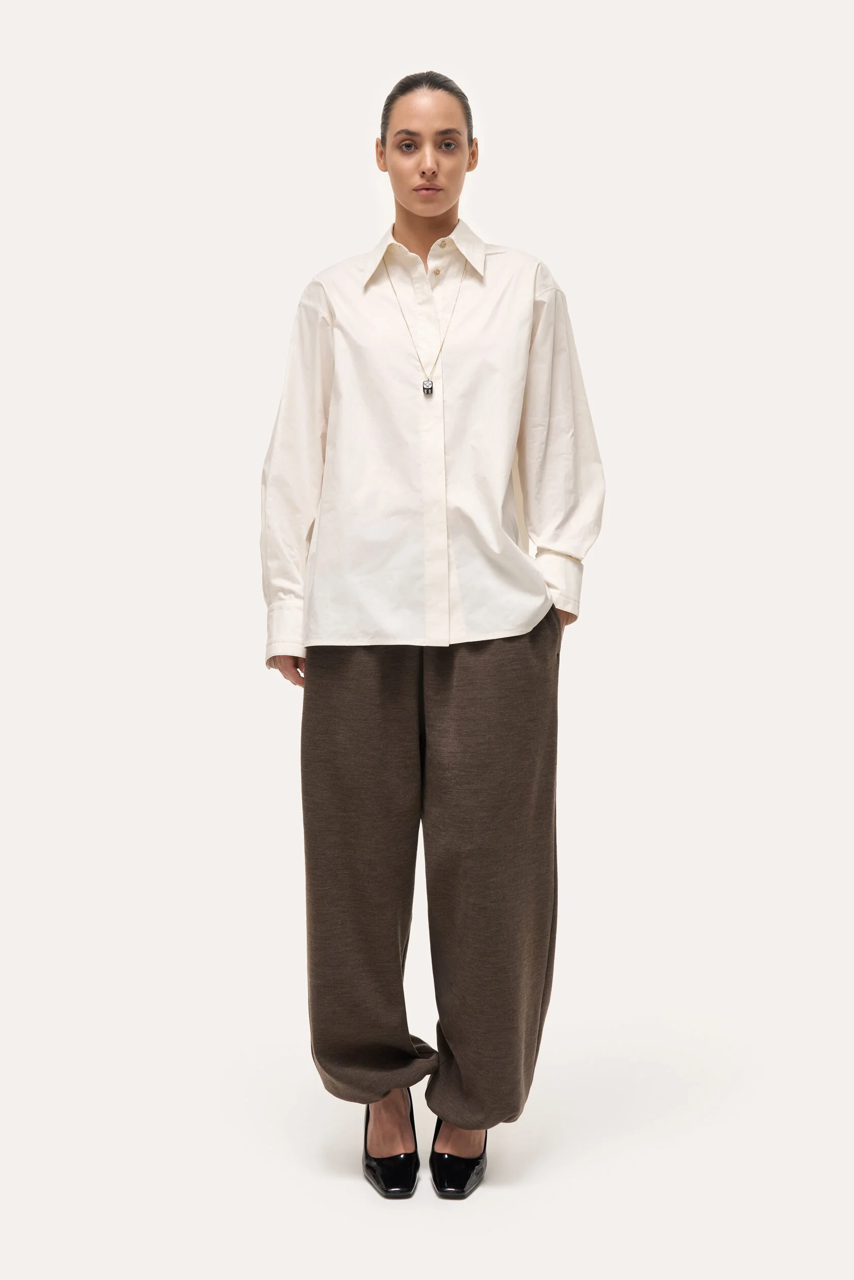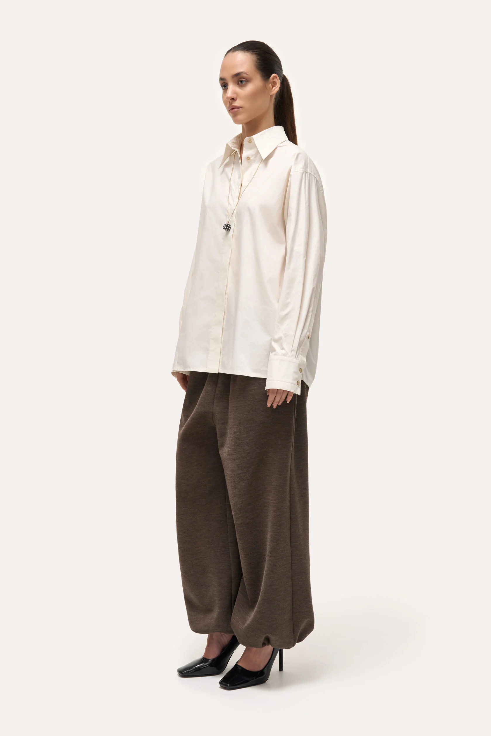 Мягкий трикотаж обеспечивает приятные ощущения на коже, а нейтральный коричневый цвет позволяет легко сочетать эти брюки с любыми вещами из вашего гардероба.