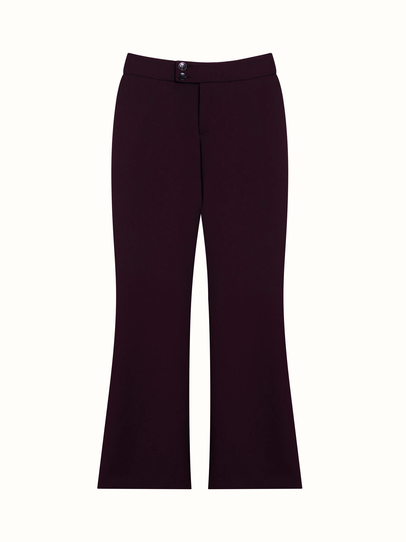 Новинка ERE SS’26 - брюки-дудочки, из костюмного материала с большим содержанием вискозы. Это стильный гибрид, сочетающий узкий силуэт в бедрах и расширение от колена. Они визуально удлиняют ноги, стройнят, создавая силуэт «песочные часы». Модель со средней посадкой, на притачном поясе, дополнена боковыми карманами и клапаном сзади. Брюки представлены в оттенке слива