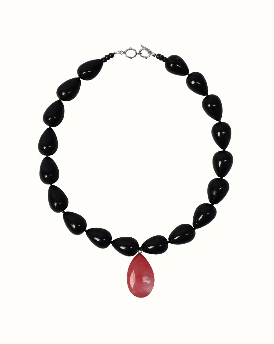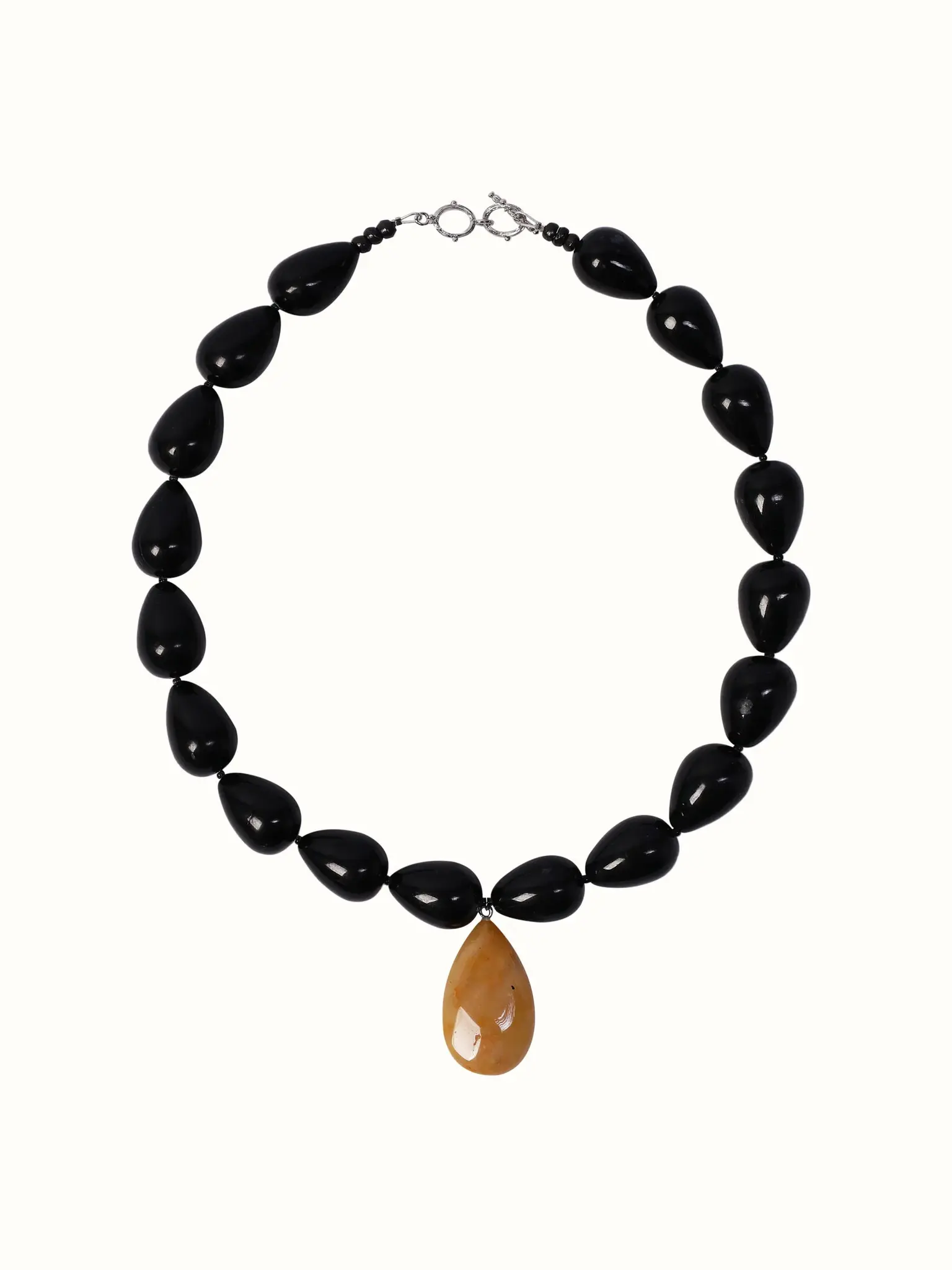 Мы нашли чёрный агат, удивительно похожий на оливковую ягоду. Так родилось это летнее колье – оно подарит вам ощущение безмятежности, будто вы шагаете по саду в тихий час.