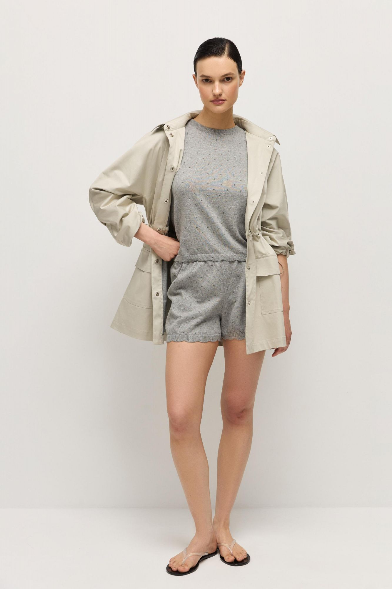 В пару к джемперу-футболке можно подобрать шорты из аналогичной пряжи.