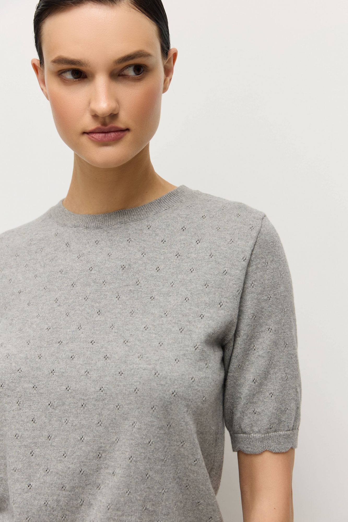 Джемпер-футболка прямого кроя связана из натурального хлопка с добавлением кашемира — нежной и комфортной к коже пряжи.