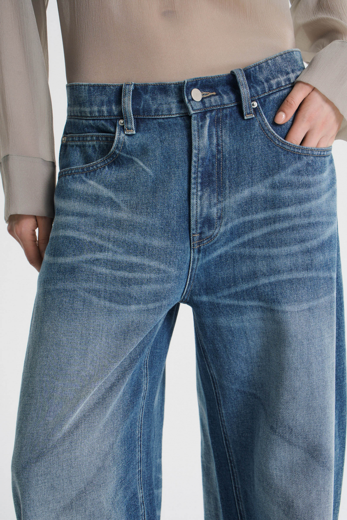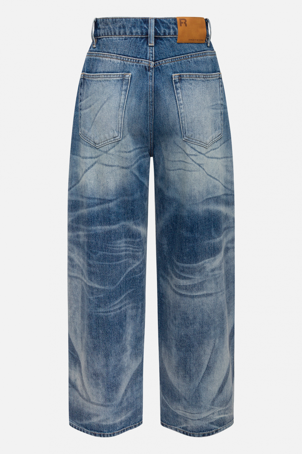 Джинсы barrel fit с мятым эффектом созданы по специальной технологии: в процессе окрашивания деним приобретает особую игру цвета и выразительный контраст. Модель актуального дугообразного силуэта сшита из премиального денима средней плотности (12 Oz). Важная особенность — универсальная посадка: выбирайте свой размер, чтобы носить джинсы высоко на талии, для оверсайз-эффекта и низкой посадки выбирайте модель на 2-3 размера больше. Первая модель с логотипом джинсовой коллекции FASHION REBELS — красной R на маленьком кармашке. Джинсы представлены в двух универсальных цветах — темно-синем и черном, которые открывают возможности разнообразных стилизаций.