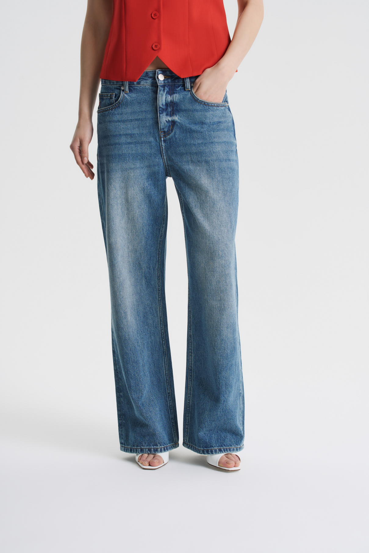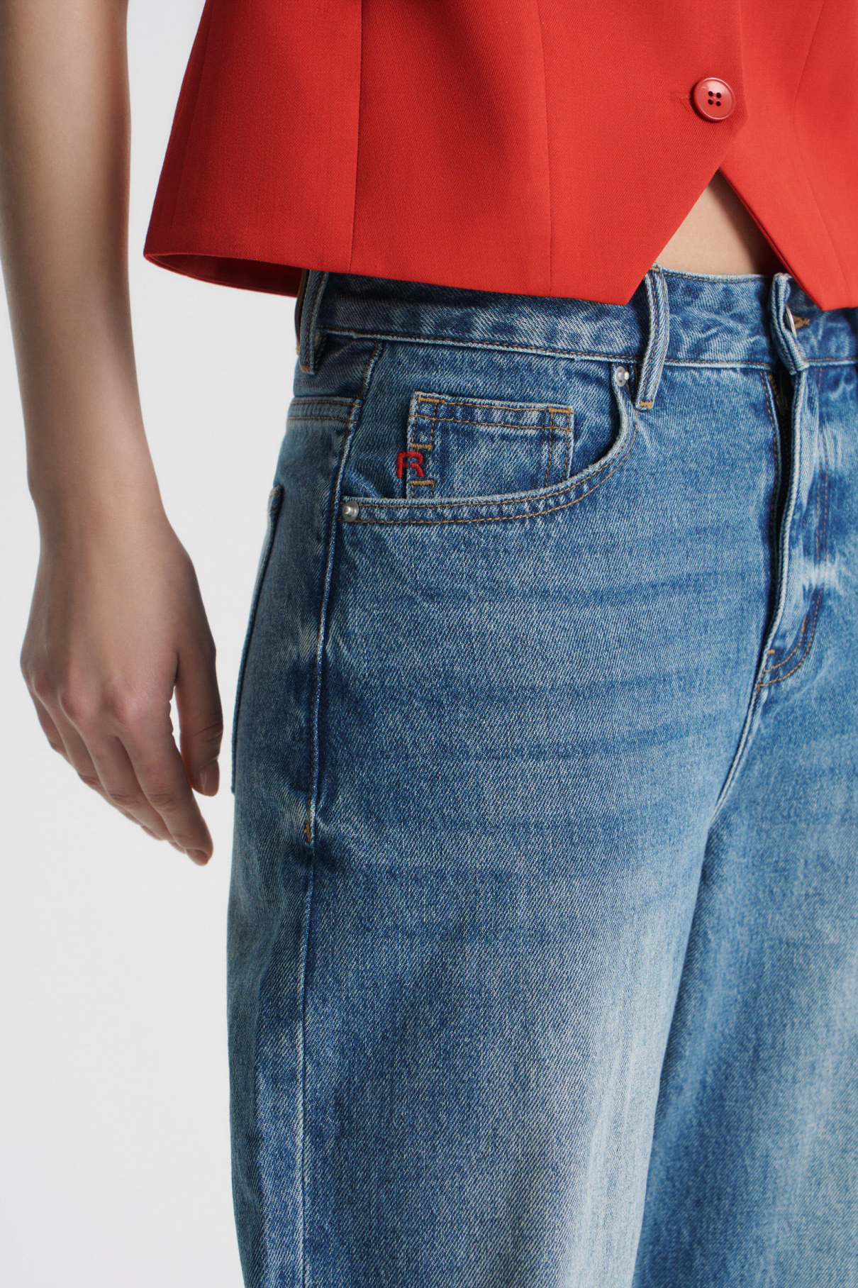 Джинсы-бестселлер из денима плотностью 12 Oz — прочного и долговечного материала, который комфортно носить почти в любую погоду. Прямая, широкая, слегка расклешенная к низу модель со средней посадкой. Лайфхак: если выбрать джинсы на размер больше, то посадка станет низкой, а штанины будут смотреться еще более свободными. Универсальный базовый силуэт, который выигрышно смотрится с любой обувью — от кед до каблуков. В процессе варки создаются выбеленные участки, которые придают модели винтажный характер. Качественный плотный деним со временем становится мягче, но при этом долго сохраняет свой первоначальный внешний вид. Модель с логотипом джинсовой коллекции FASHION REBELS — красной R на маленьком кармашке.