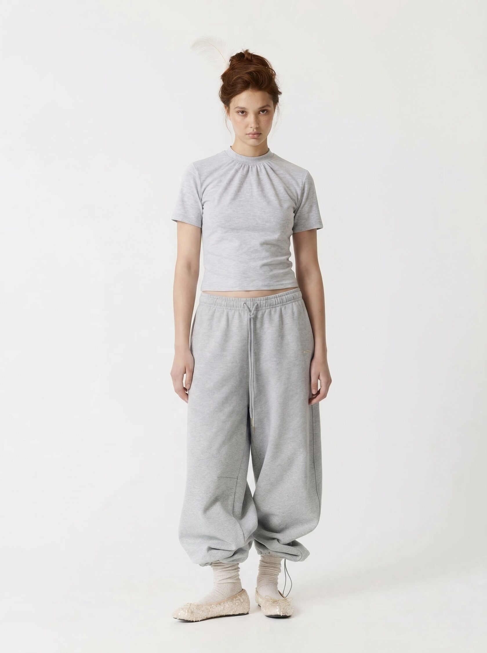 Деликатная сборка по линии горловины добавляет наивный, «девичий» акцент.