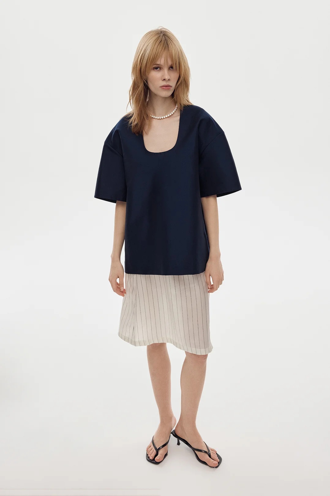 GRAPHITE — потому что напоминает грифель от графитного карандаша. Графит как начало творческого процесса, все скетчи создаются карандашом, его графитом — он как стержень. Эта футболка — как внутренний стержень женщины, помогающий идти вперёд, быть сильной, стильной и выглядеть безупречно.