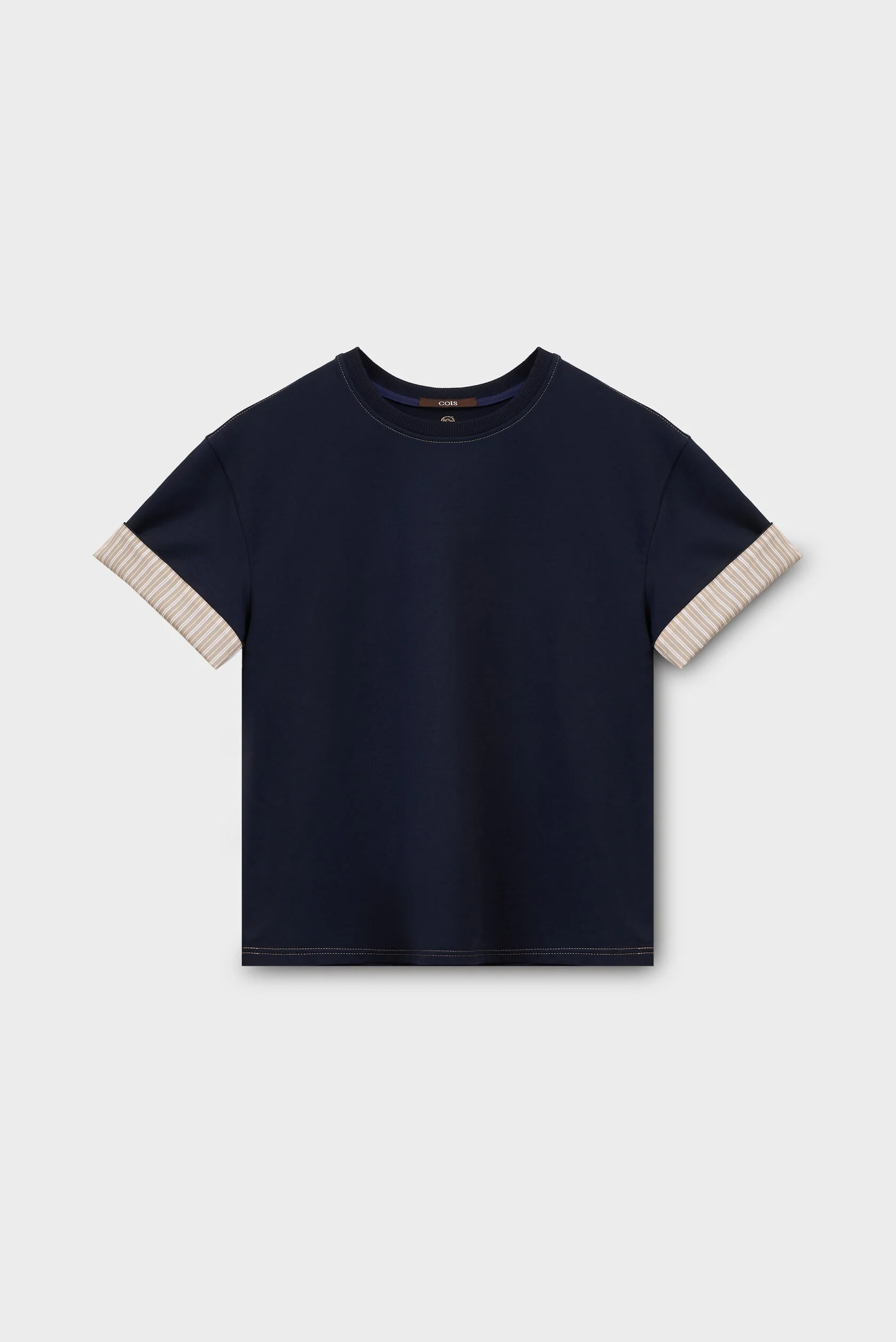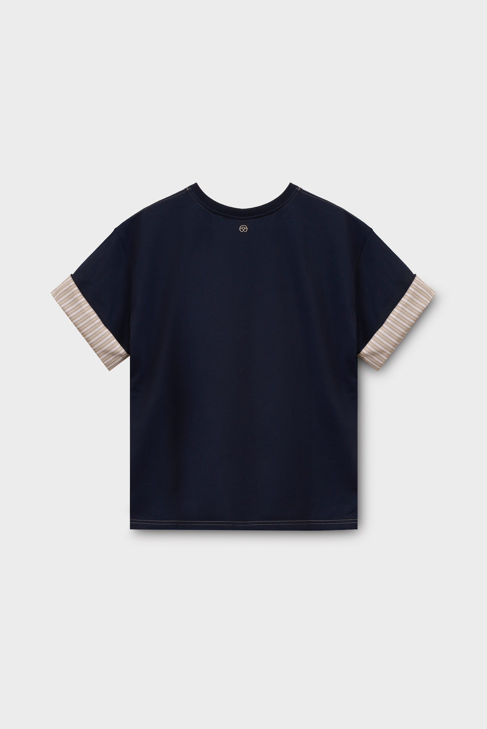 Базовая на первый взгляд, но продуманная в деталях. Глубокий тёмно-синий оттенок подчёркивает чистоту формы, а контрастная отстрочка по плечам и горловине аккуратно выстраивает силуэт.