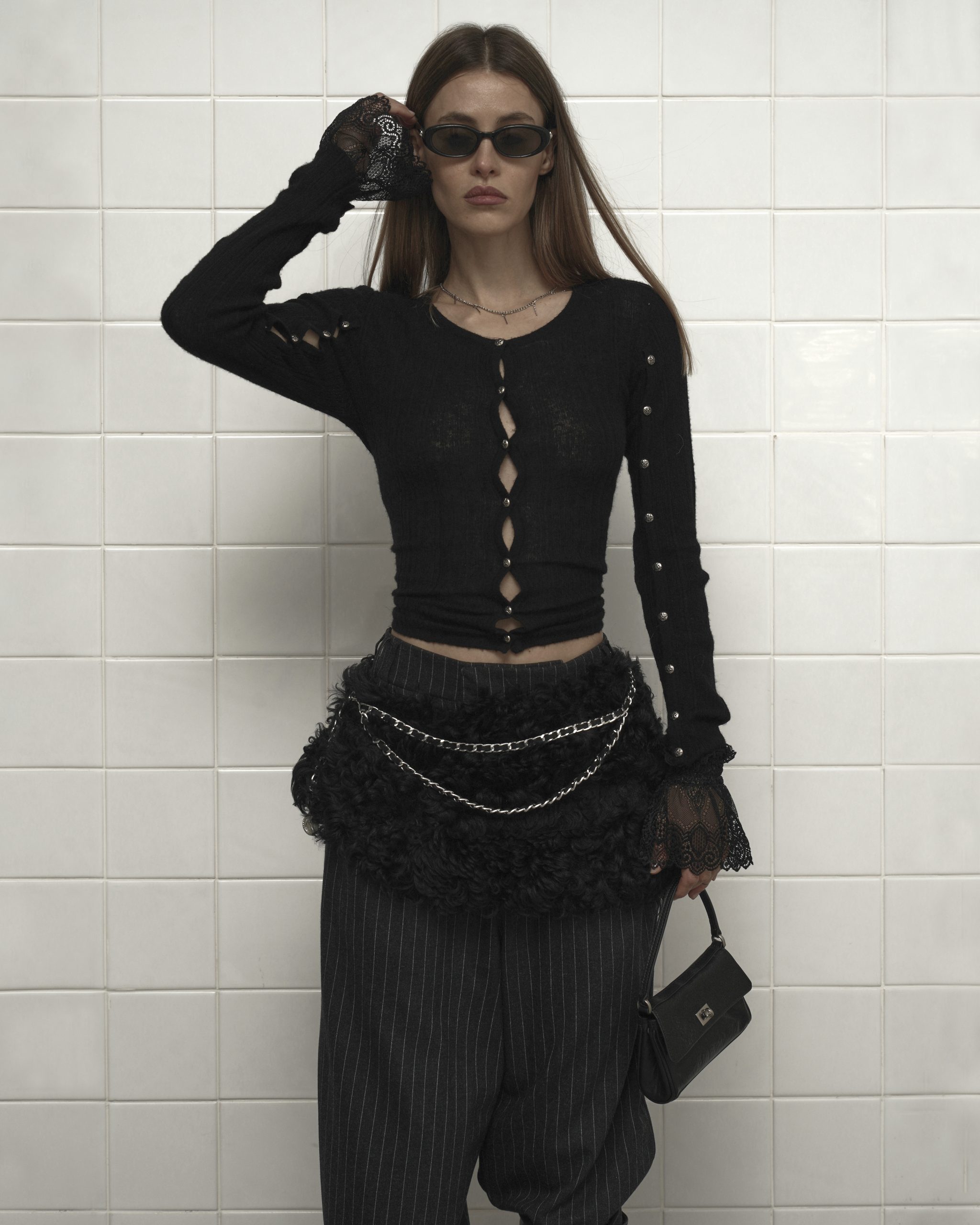 Черный кардиган на металлических пуговицах станет незаменимой базой любого образа из вашего гардероба. Облегающий крой подчеркивает силуэт, создавая современный и аккуратный образ. Глубокий насыщенный оттенок черного делает изделие универсальным, а мягкий приятный к телу материал, обеспечит максимальный комфорт в носке. Сочетайте с любимыми джинсами, классическими брюками, рубашкой или платьем