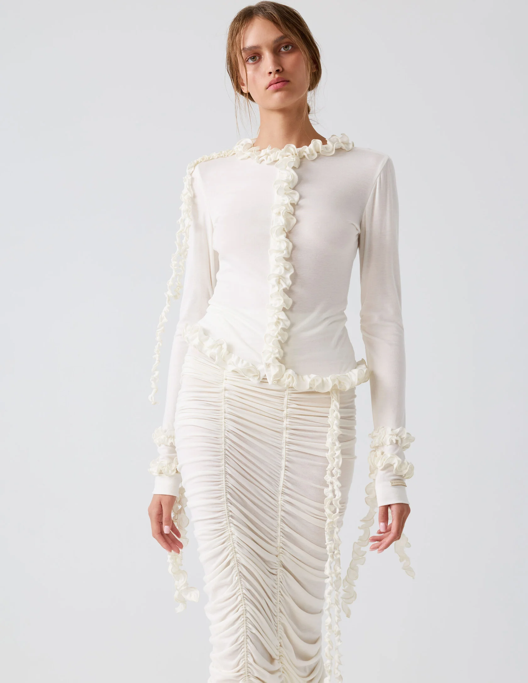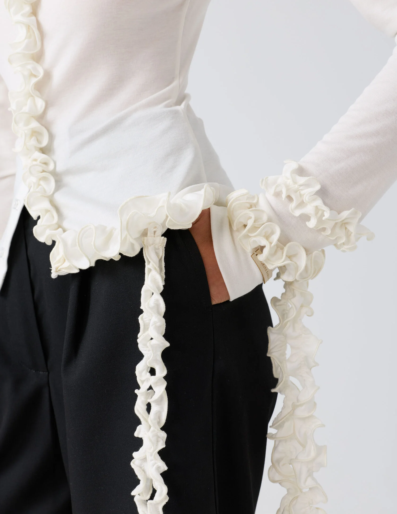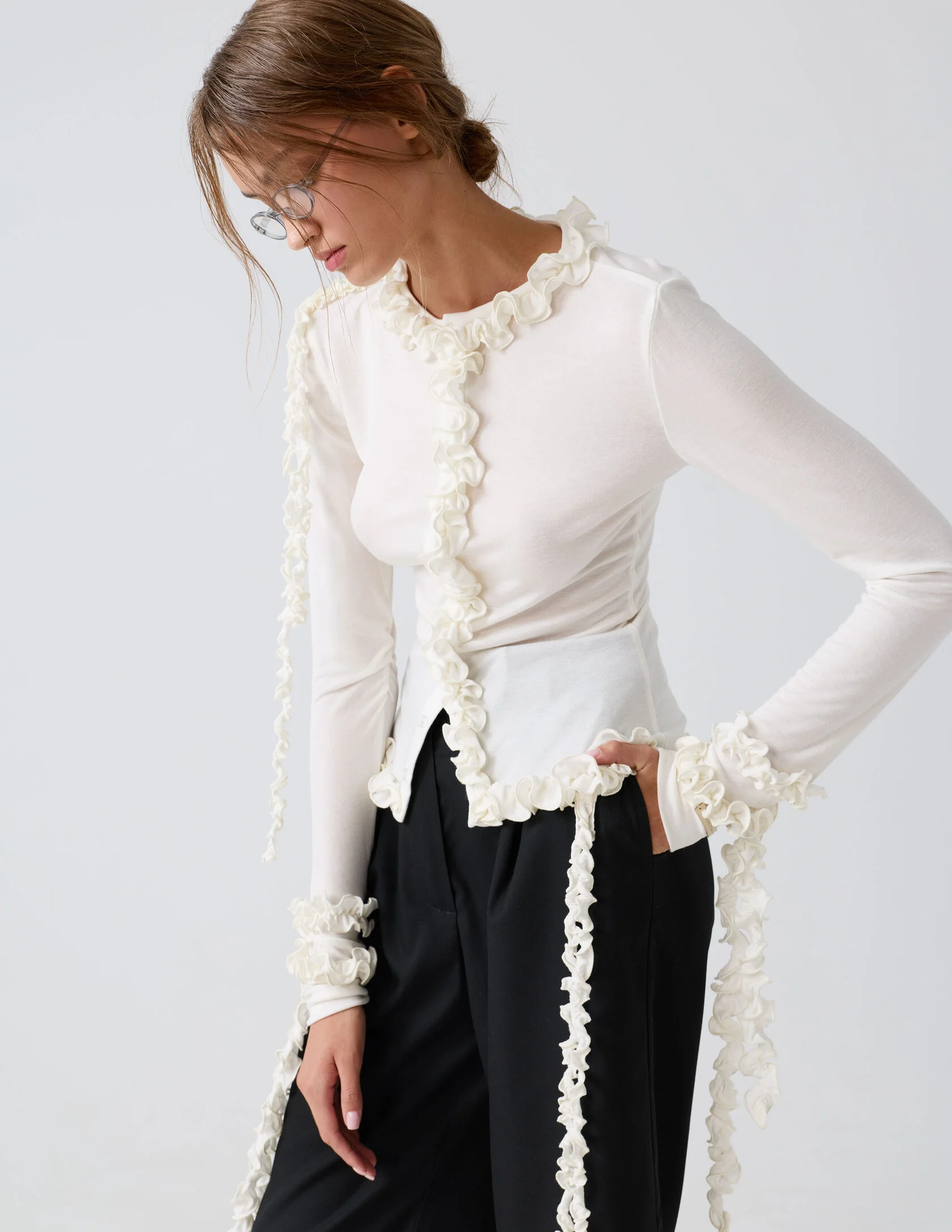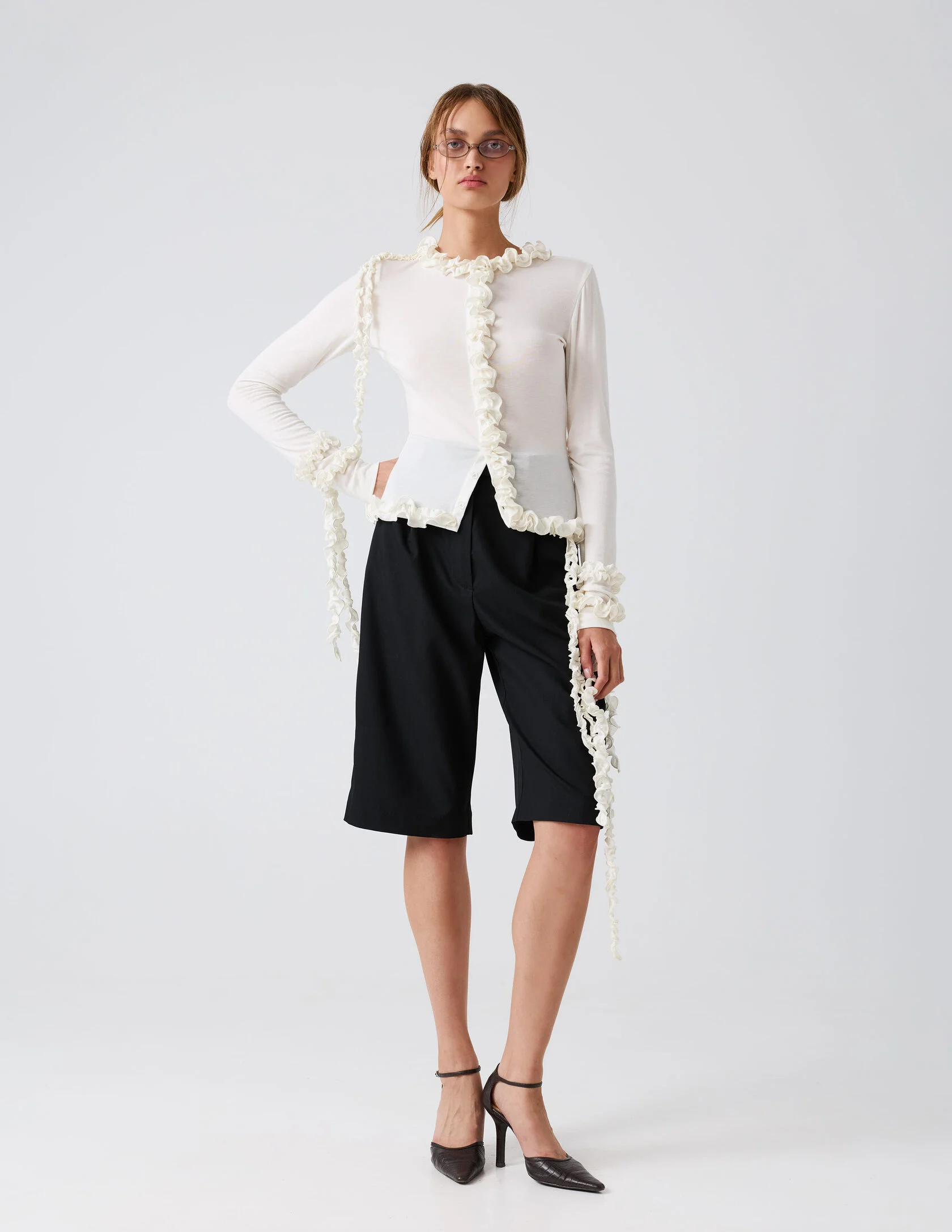 Стильная модель с акцентом на функциональные детали. Элементы на рукавах и по низу изделия крепятся на деликатные съёмные пуговички, что позволяет легко менять дизайн кардигана и подстраивать его под разный образ. Такая продуманная трансформация делает вещь универсальной и комфортной в носке.