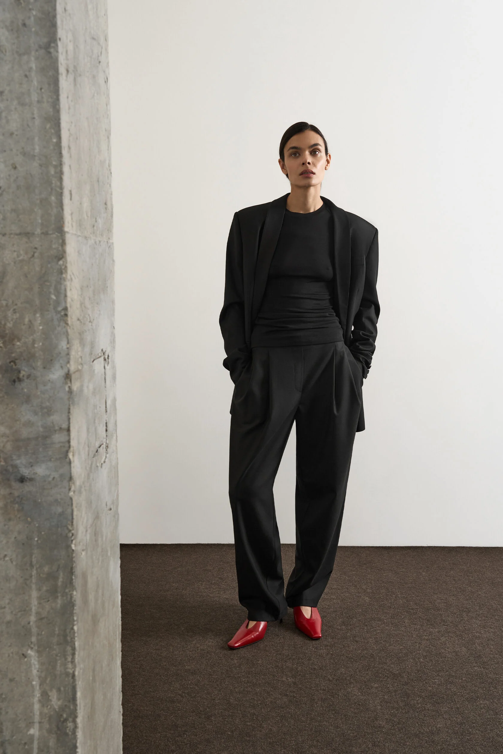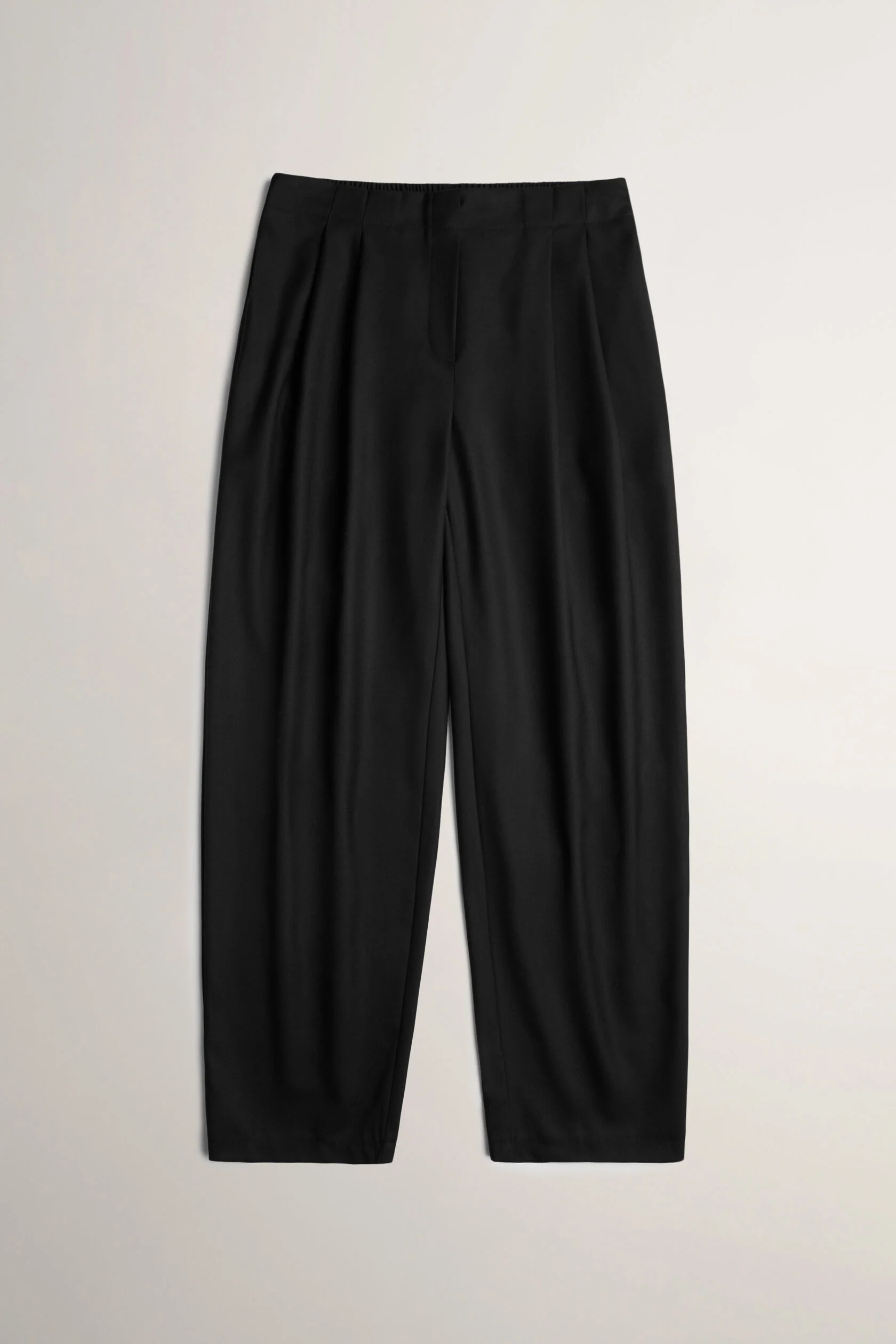 Нам хотелось создать костюмные брюки, которые не будут ни к чему обязывать — модель Balance получилась именно такой. С одной стороны, эти брюки отвечают требованиям классики: они выполнены из костюмной ткани, свободный крой чуть сужается к низу, два защипа визуально вытягивают силуэт. Но в сравнении с прототипом они более расслабленные.