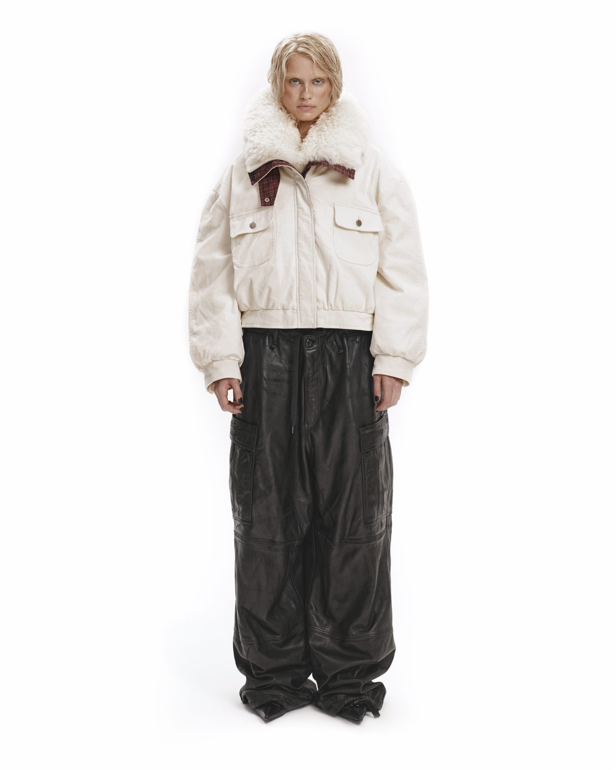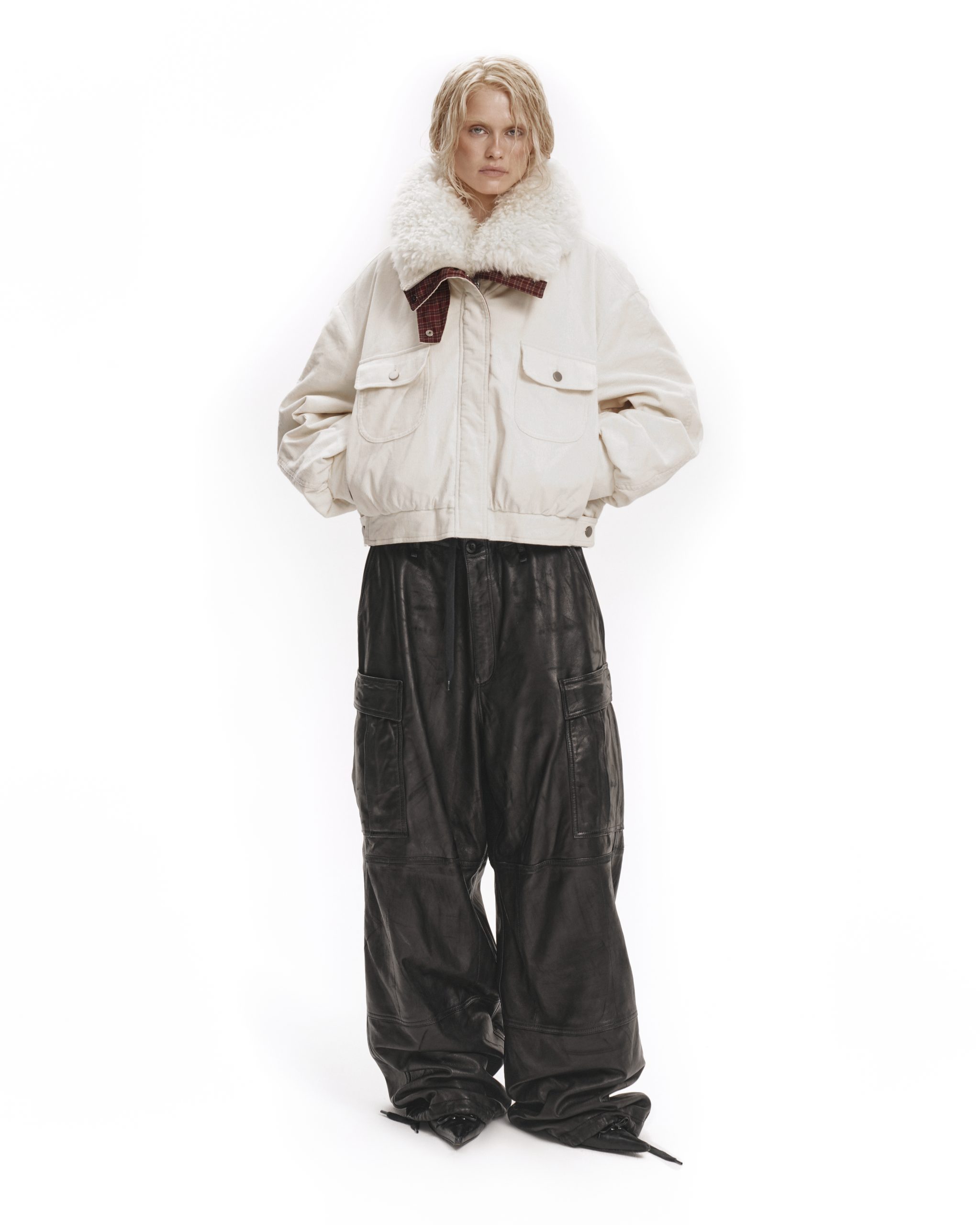 Тот самый оттенок IVORY, который уже успел стать классикой. Для внешнего материала выбрали нежный вельвет. Утеплили гусиным пухом, добавили объемный воротник из шерсти овчины, который в меру большой и съемный — все для вашей возможности на любой полёт фантазии в стайлинге. Периметр куртки украсили кантиком в клетку, позволили себе придать изделию немного игривости и настроения. Идеальная модель, которая добавит изюминку вашему зимнему образу. Рекомендуем носить до нуля градусов.