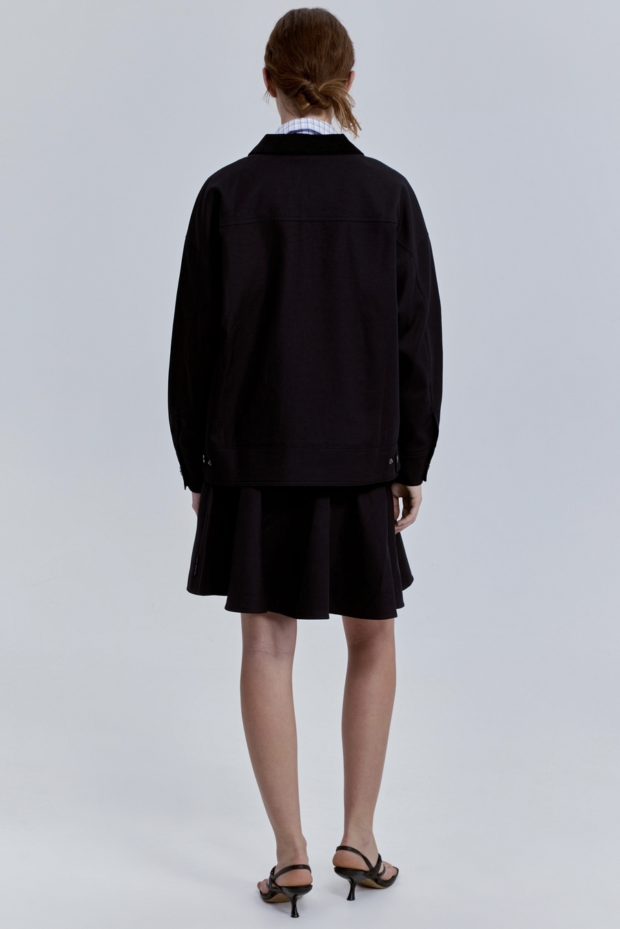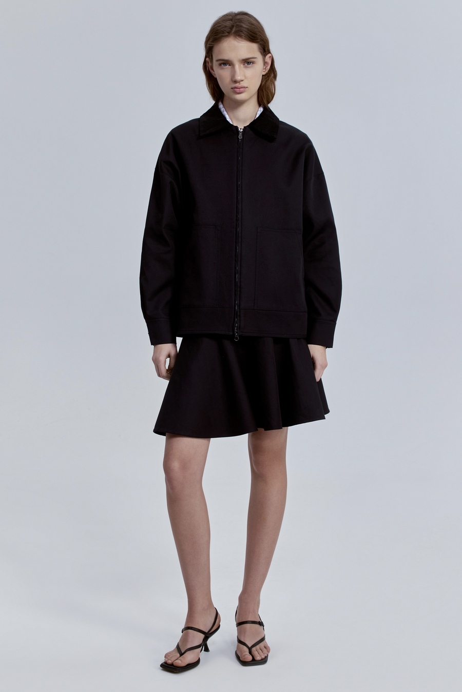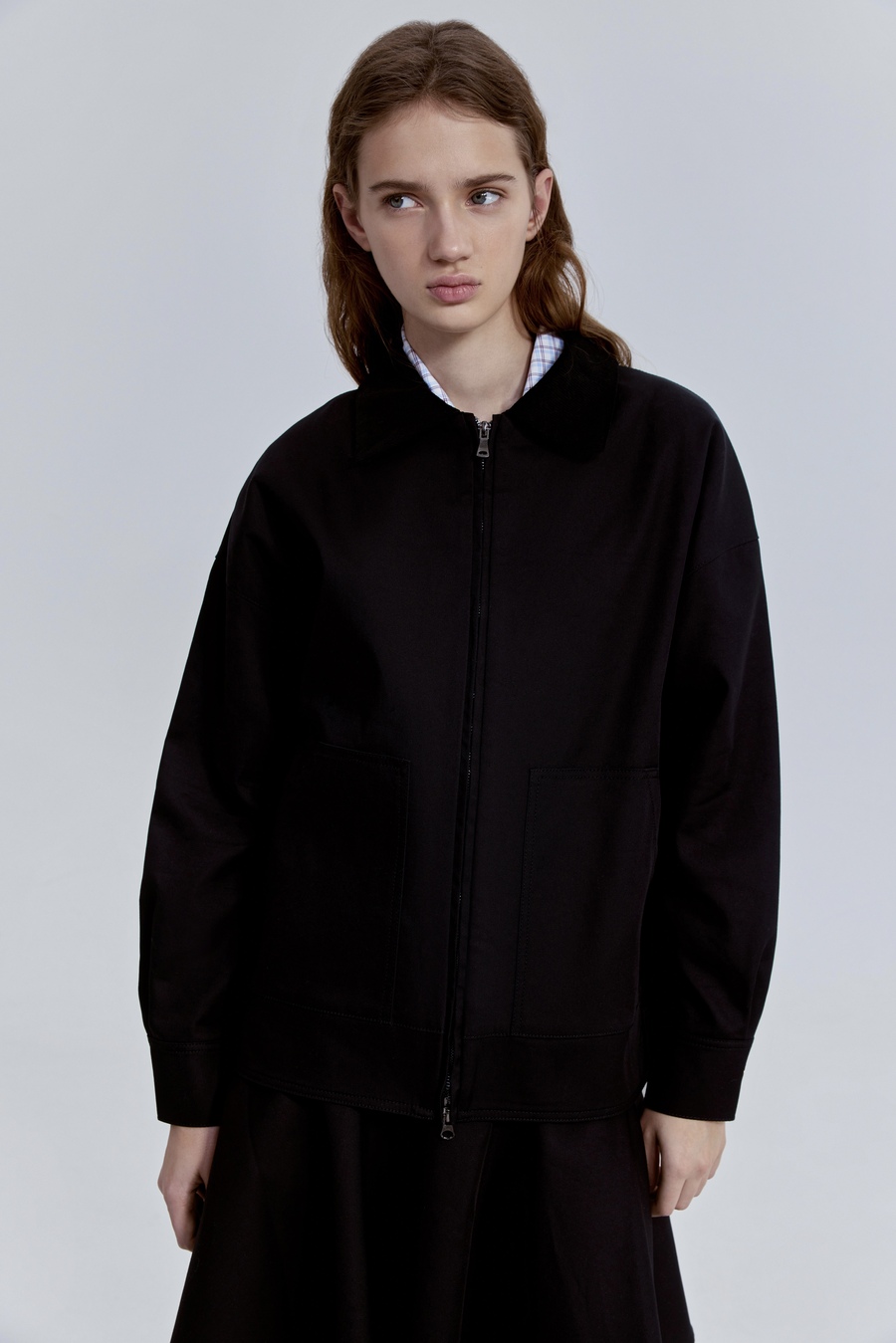 Плотный габардин задаёт чёткую форму и ощущение собранности, а вельветовый воротник добавляет фактуру и благородный контраст. Эта куртка — про баланс функциональности и стиля: практичная, но с характером. Она легко вписывается в городской гардероб и выглядит так, будто прослужит не один сезон, оставаясь актуальной и выразительной.