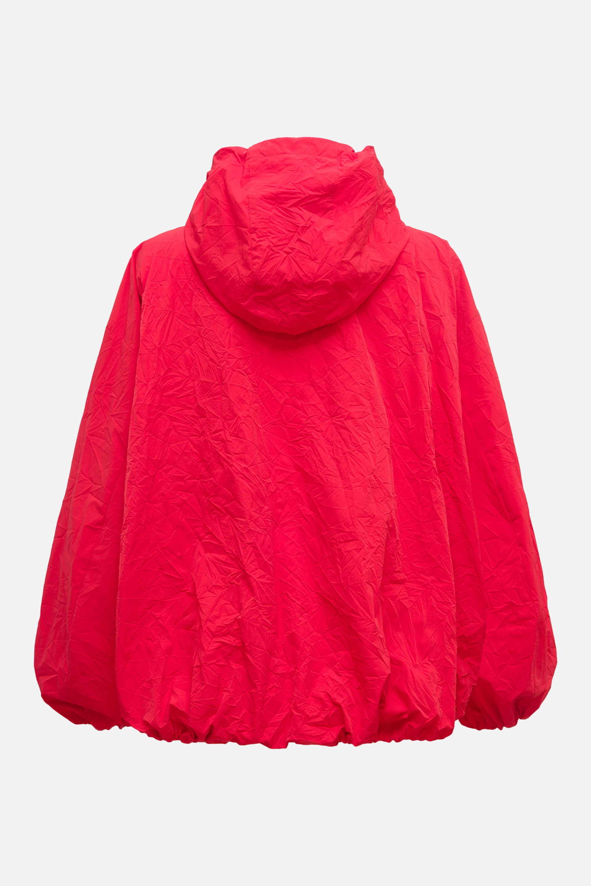 Легкий плащ-пыльник из жатой плащевки с водоотталкивающей пропиткой защитит от дождя и ветра в теплую погоду. Изделие представлено в одном универсальном размере, который благодаря очень свободному оверсайз крою подходит на любой размер. Обхват по низу дождевика легко отрегулировать эластичным шнурком кулиски — от актуального О-силуэта до очень свободного, летящего варианта. Резинка со стопперами также позволяет регулировать степень прилегания большого капюшона. Низ объемного рукава фиксируется резинкой без кулиски. Куртка застегивается на двухзамковую молнию и металлические кнопки, скрытые под планкой. Изделие без подкладки компактно складывается и станет отличным спутником в поездке, не занимая много места в чемодане или сумке. Куртка представлена в двух цветах — красном и шоколадном.
