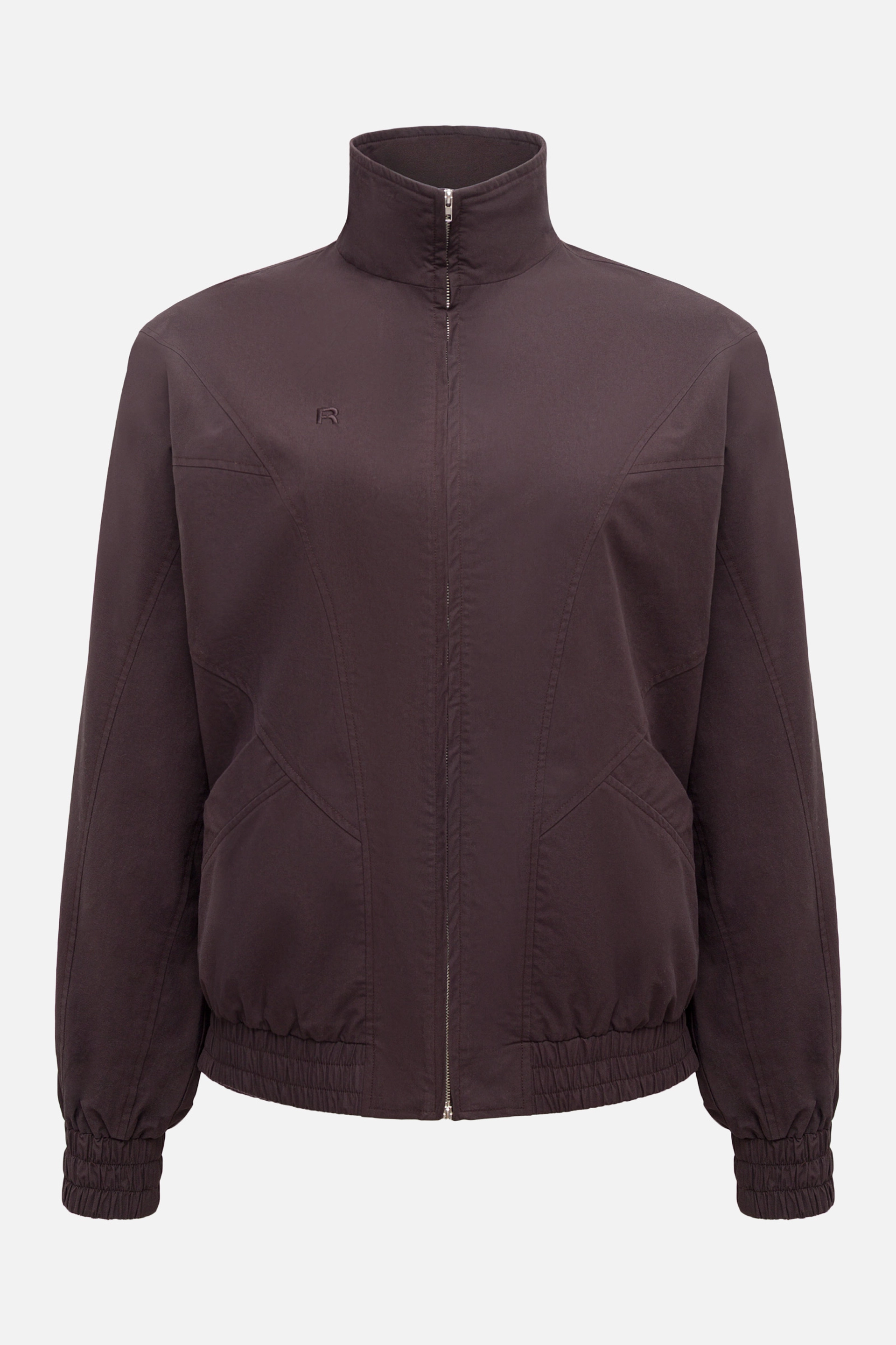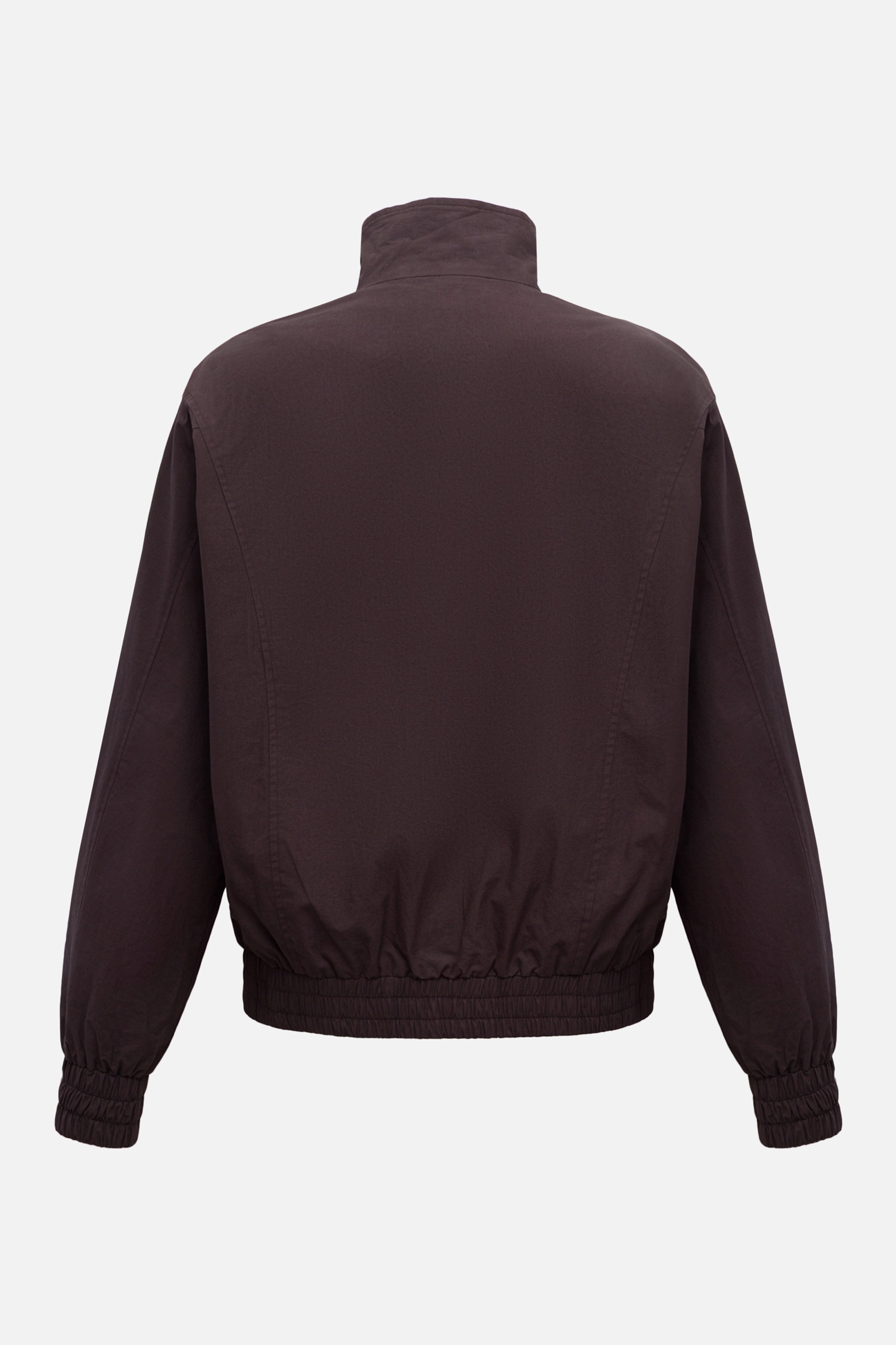 Легкий хлопковый бомбер выполнен из приятного на ощупь, слегка шуршащего материала. Объем модели О-силуэта с рукавом «летучая мышь» подчеркнут широкой резинкой по низу изделия и на манжетах. Конструкция двухзамковой центральной молнии позволяет расстегивать и застегивать бомбер и сверху, и снизу, а также высоко фиксировать воротник-стойку. Бомбер украшен лаконичной вышивкой-брендингом в цвет модели. Изделие на подкладке. Носите комплектом с брюками из такого же материала или сочетайте с джинсами, юбками и платьями.