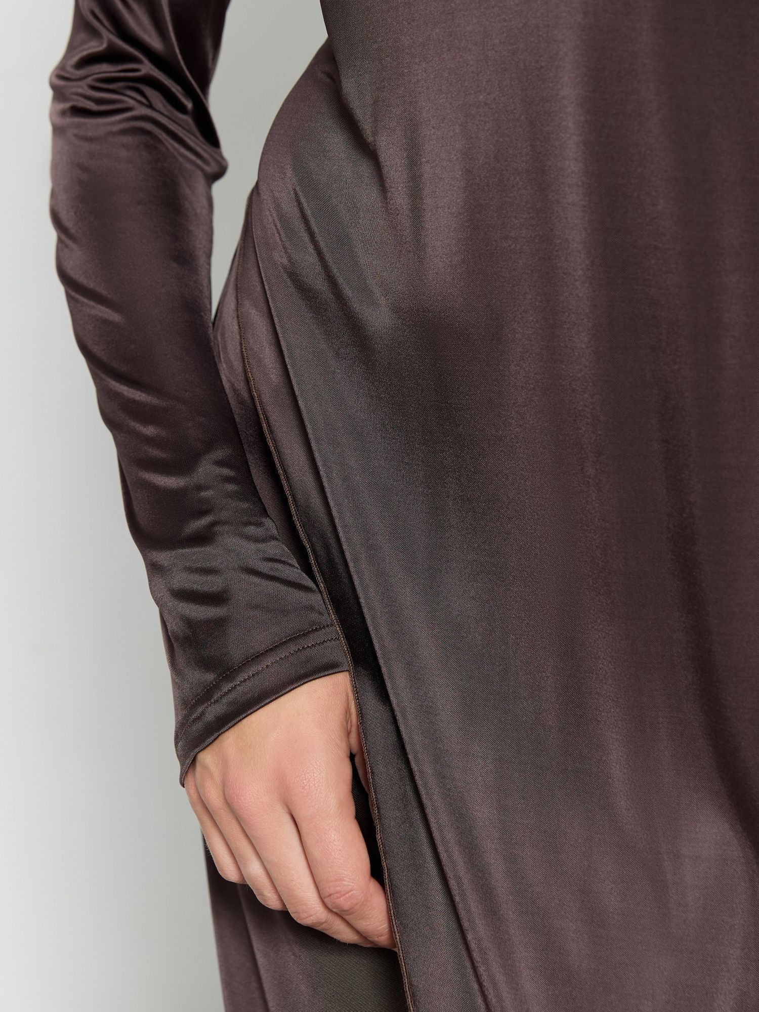Лонгслив сшит из итальянской трикотажной вискозы, которая имеет деликатный блеск.