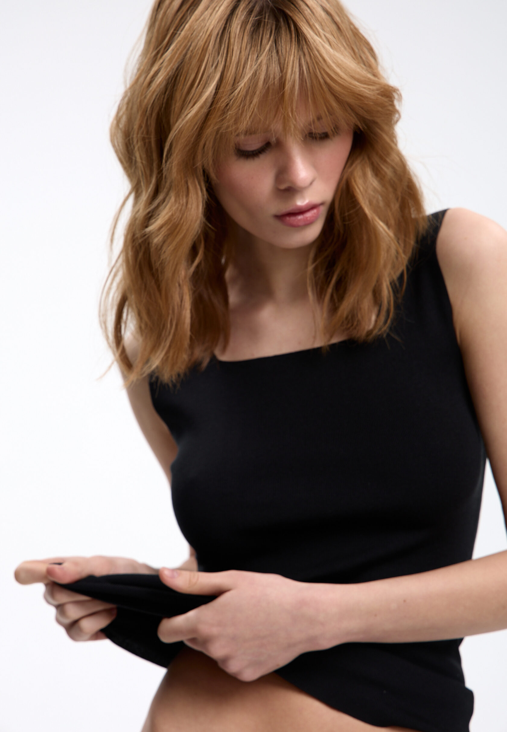 Нежнейшая трикотажная майка без рукавов из смеси шелка и органического хлопка, представлен в двух цветах: классический белый и черный.
