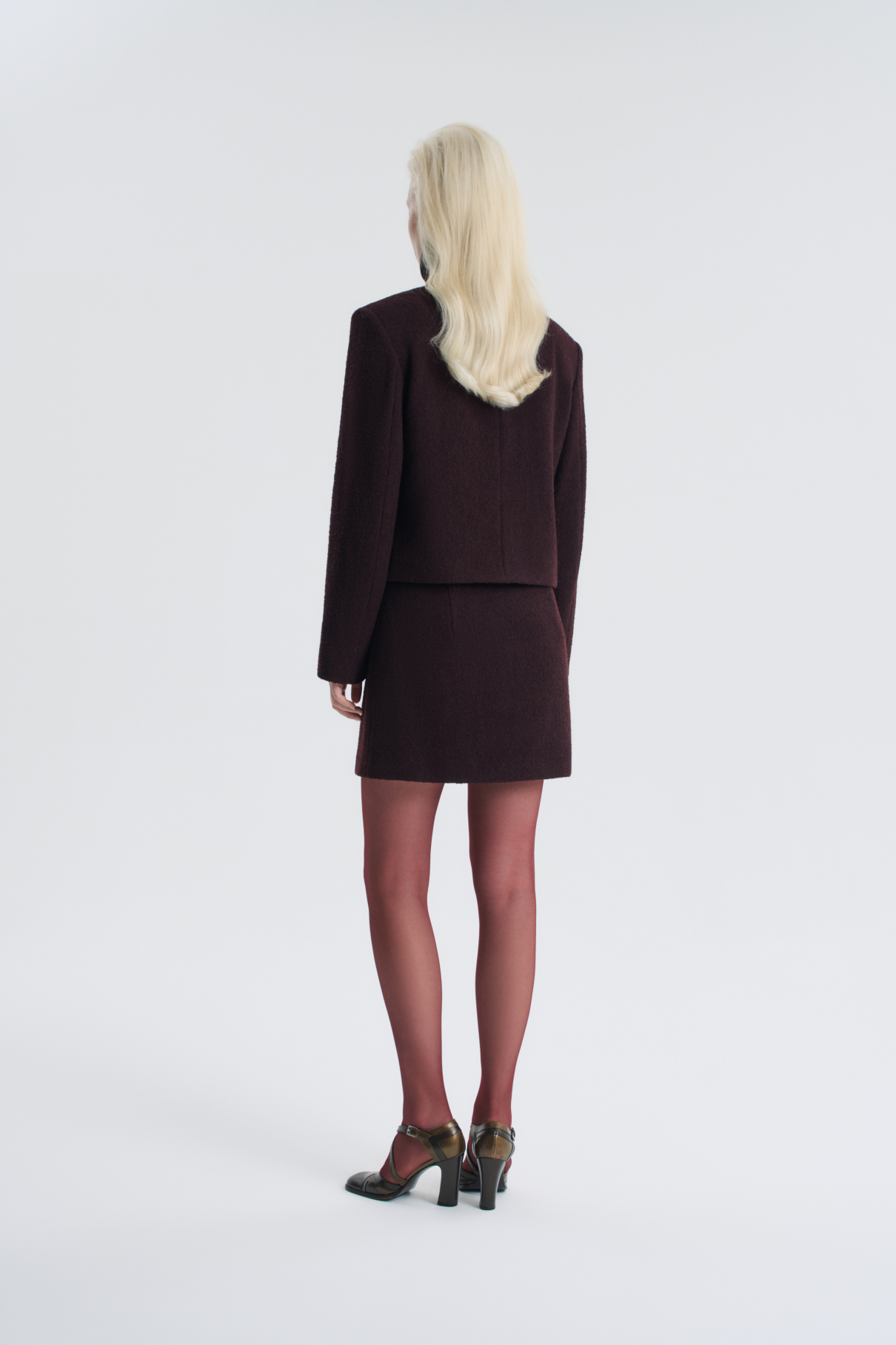 Юбка-трапеция из фактурного смесового букле с продуманным кроем: вытачки и потайная молния в боковом шве гарантируют идеальную посадку.