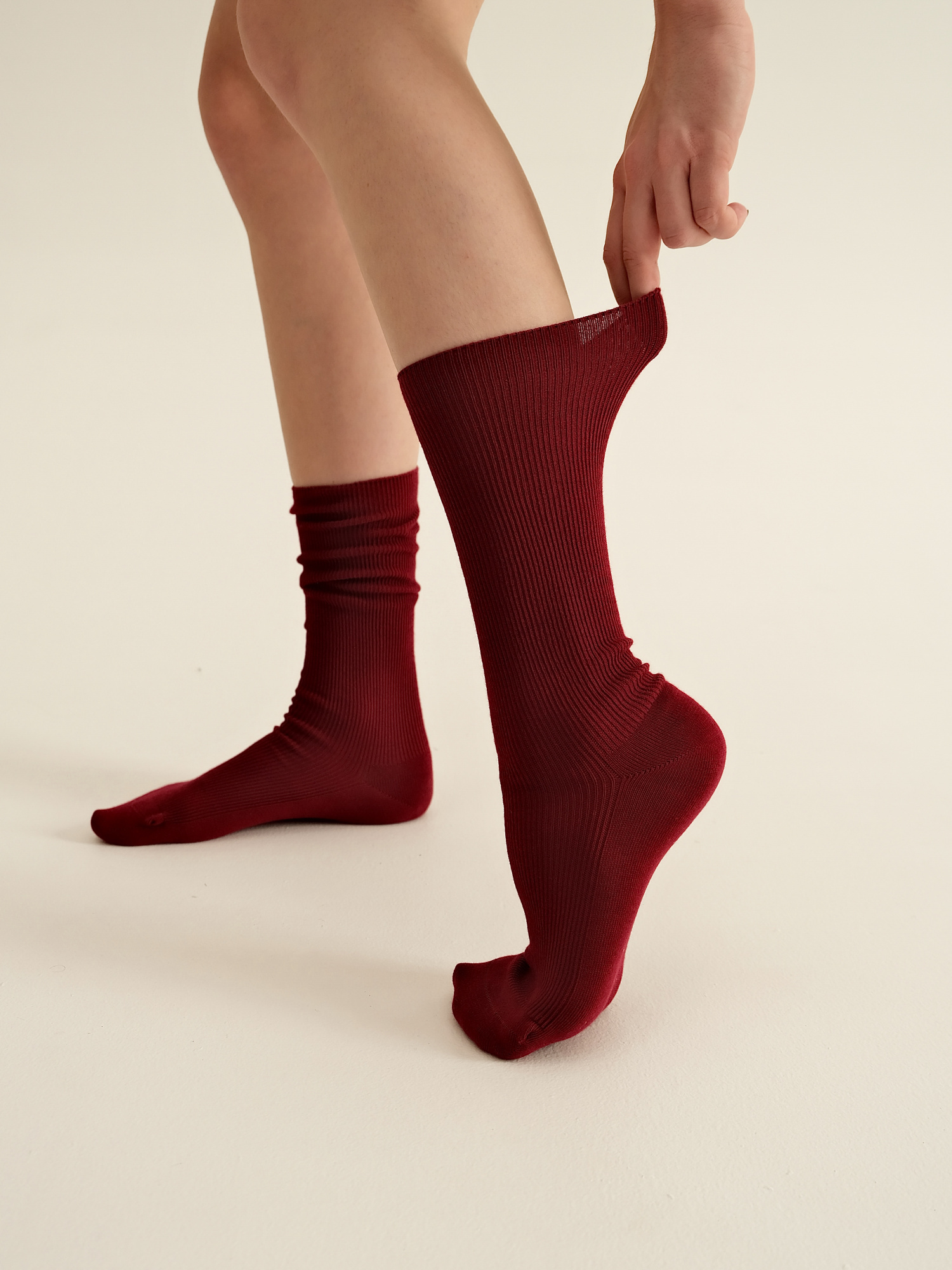 Высокие носки в рубчик можно назвать основой повседневного образа.