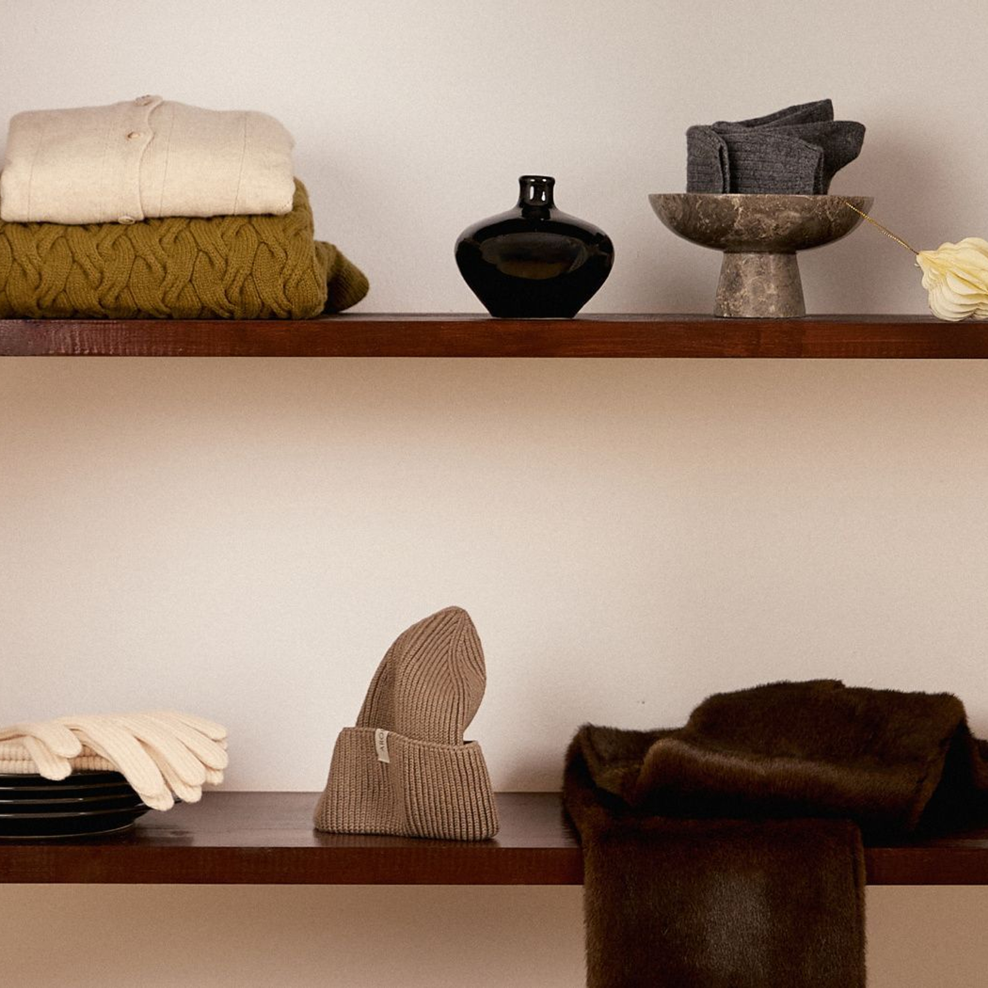 В наших изделиях шерсть енота смешана с другими натуральными волокнами — это усиливает износостойкость и делает вещи удобными для ежедневной носки.