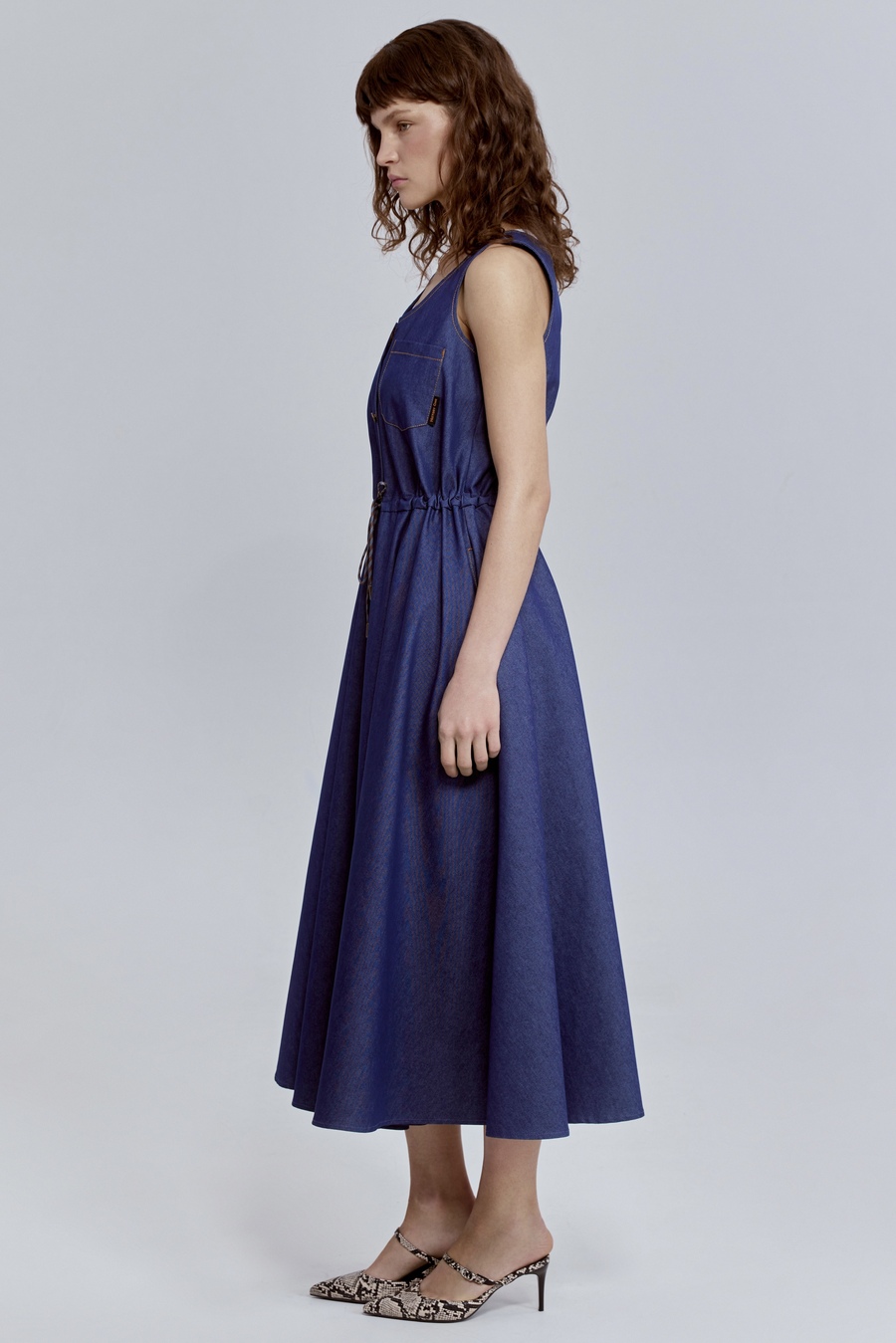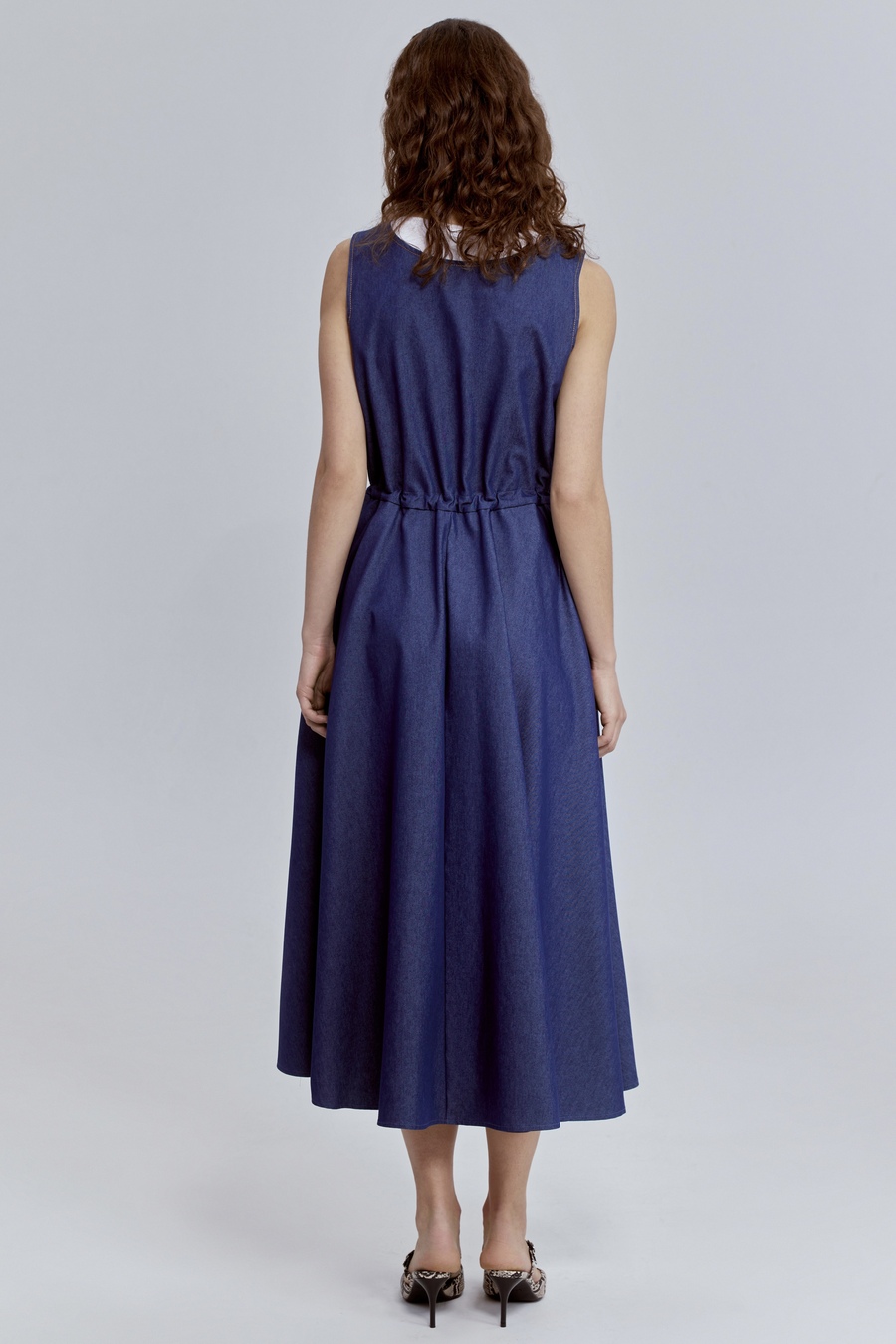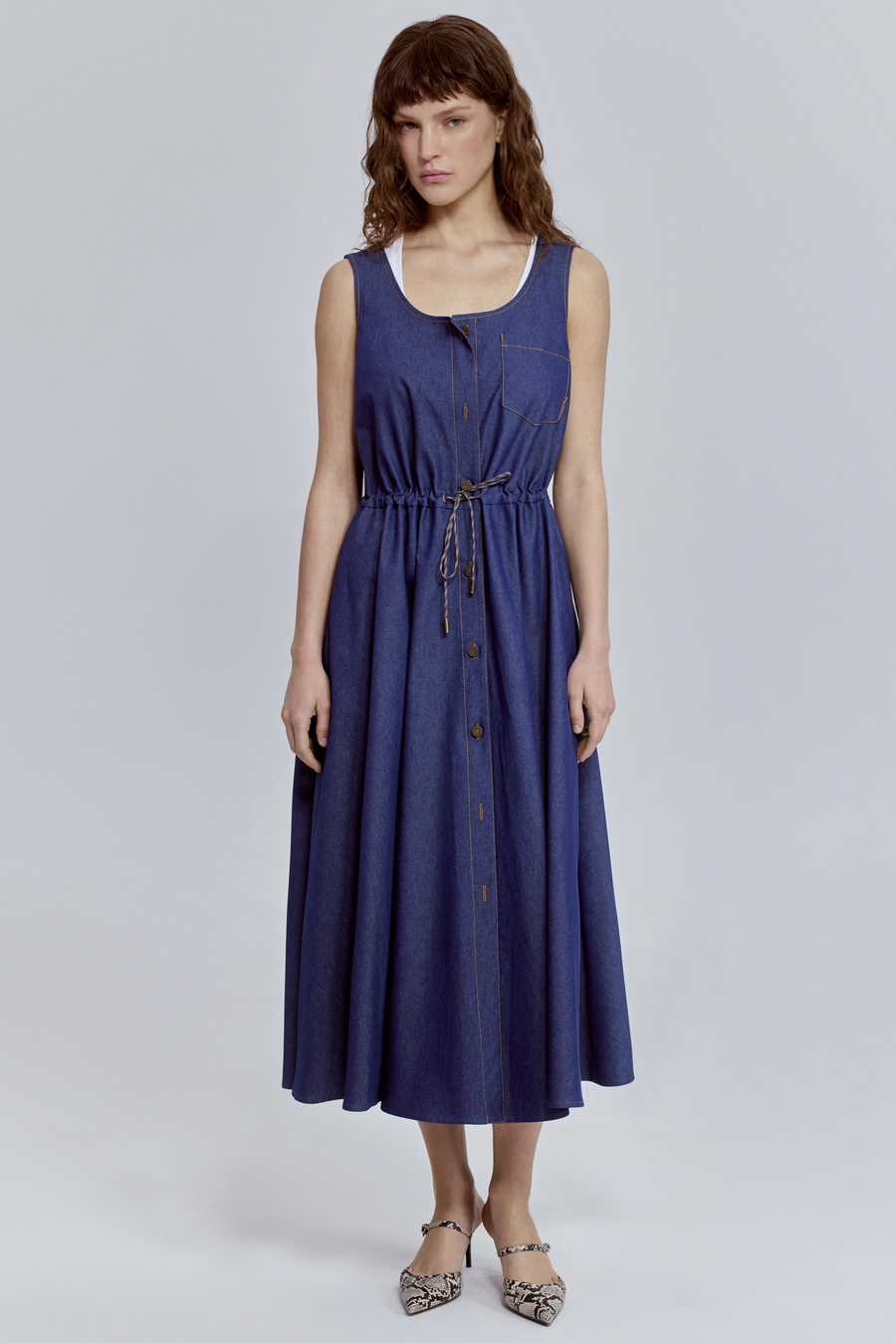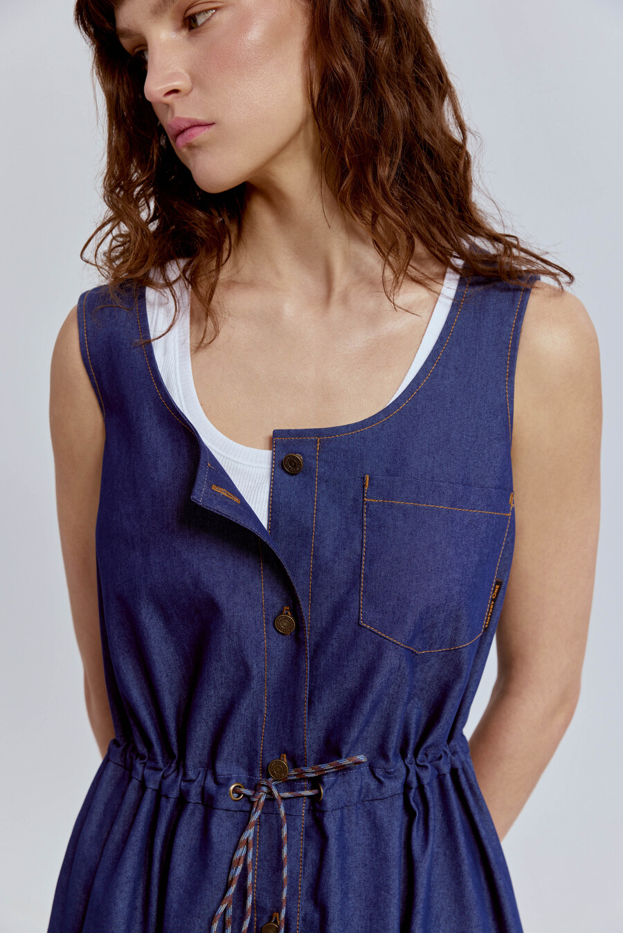 Деним в его самой чистой и актуальной форме. Лаконичное платье без рукавов подчёркивает силуэт и оставляет простор для стилизации — от минимализма до смелых акцентов. Плотность ткани держит форму, а прямые линии создают уверенный, собранный образ. Вещь вне сезонов и трендов, которая легко становится основой гардероба и отражает современный ритм жизни.