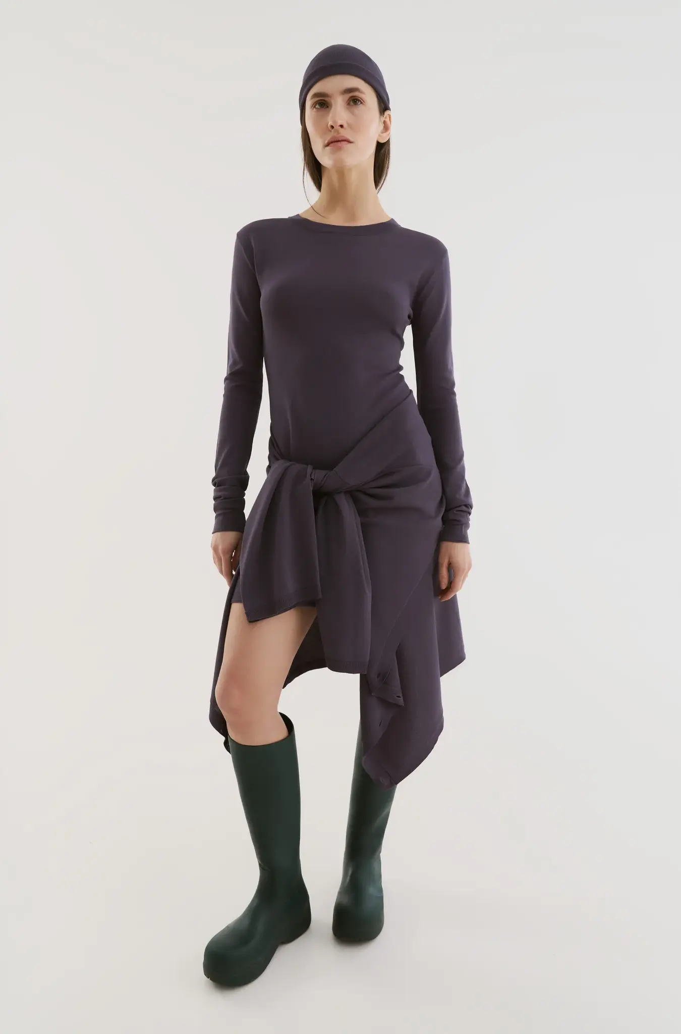 Классическое платье-лонгслив длины мини с круглым вырезом из легкой вискозы. Силуэт модели аккуратно прилегает к телу. Носите изделие как самостоятельную единицу, либо в качестве лонгслива.