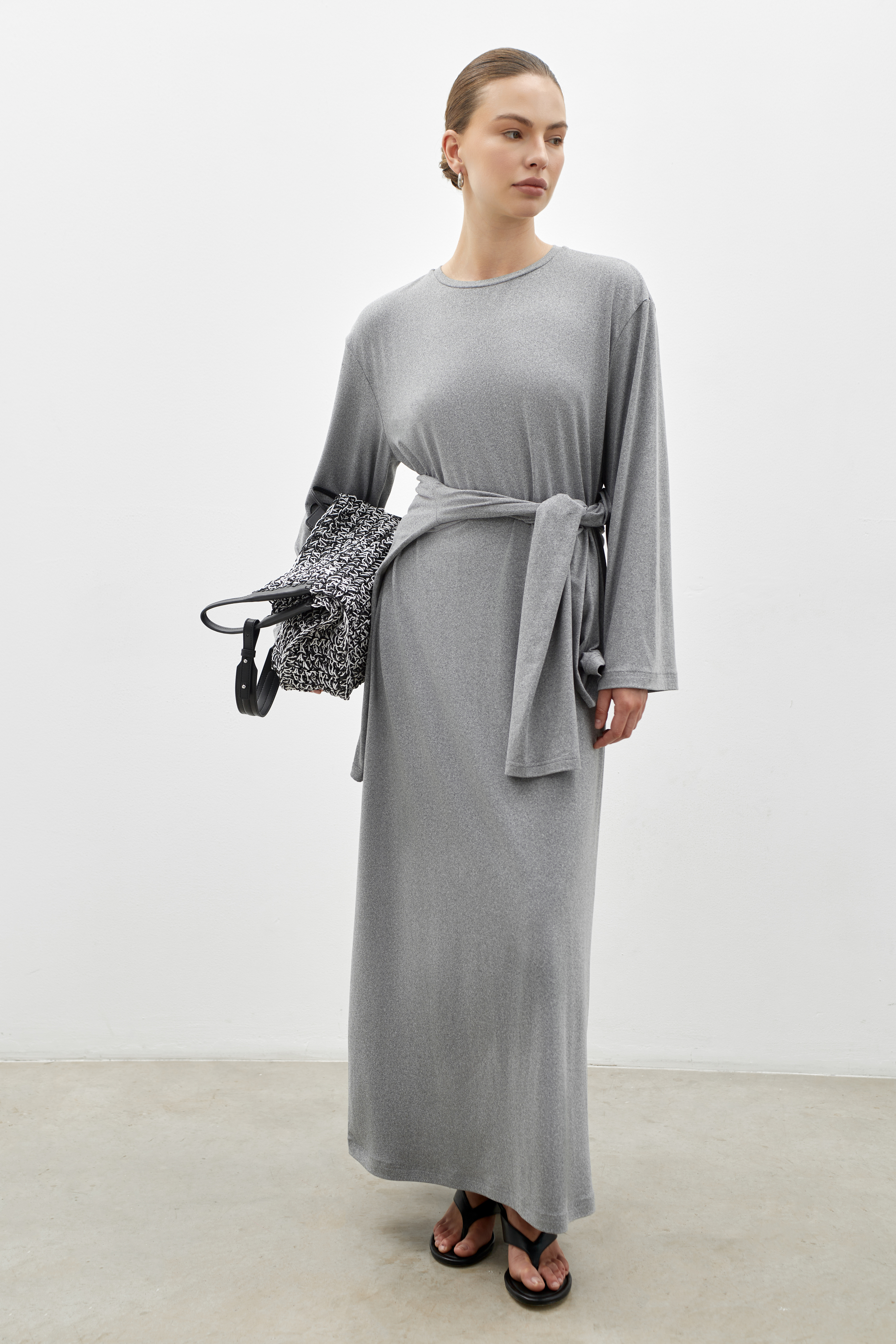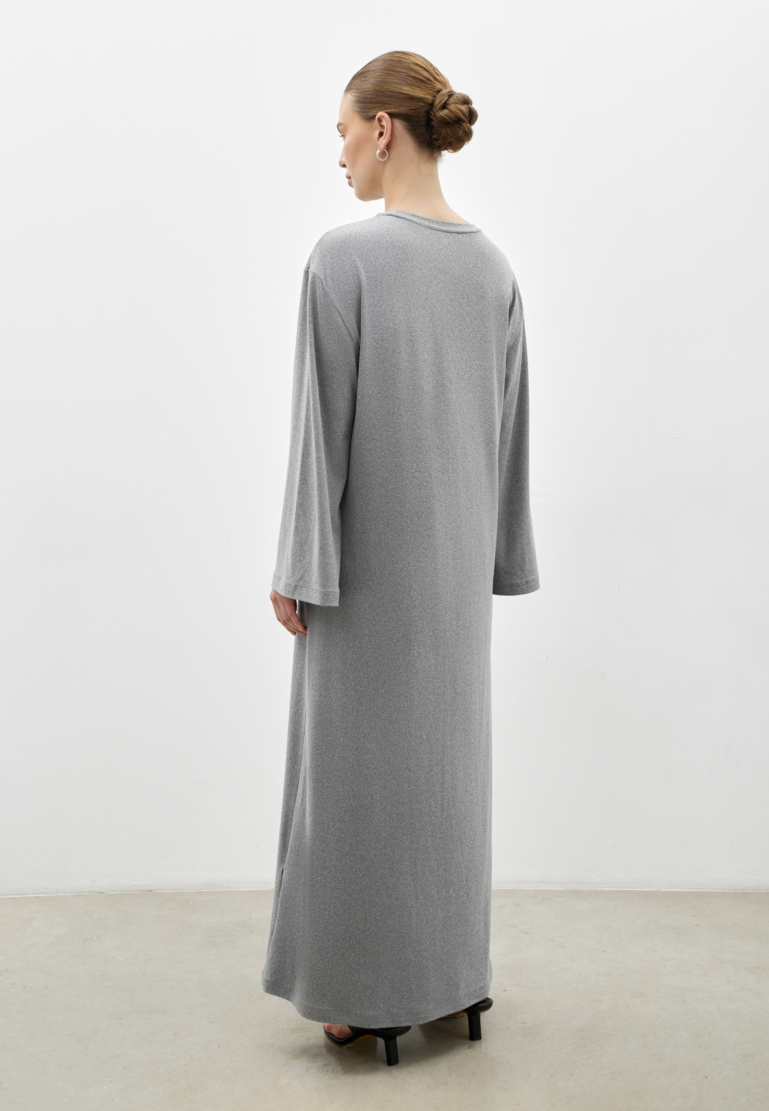 Платье свободного силуэта длины макси в черном цвете выполнено из премиального вискозного трикотажа с добавлением шелка. Платье с широким длинным рукавом и спущенной линией плеча для создания расслабленного образа. Трикотаж имеет приятную тяжесть, которая позволяет изделию свободно струиться по фигуре. Благодаря свойствам материала, модель не потеряет свой внешний вид даже после многочисленных стирок в стиральной машине.