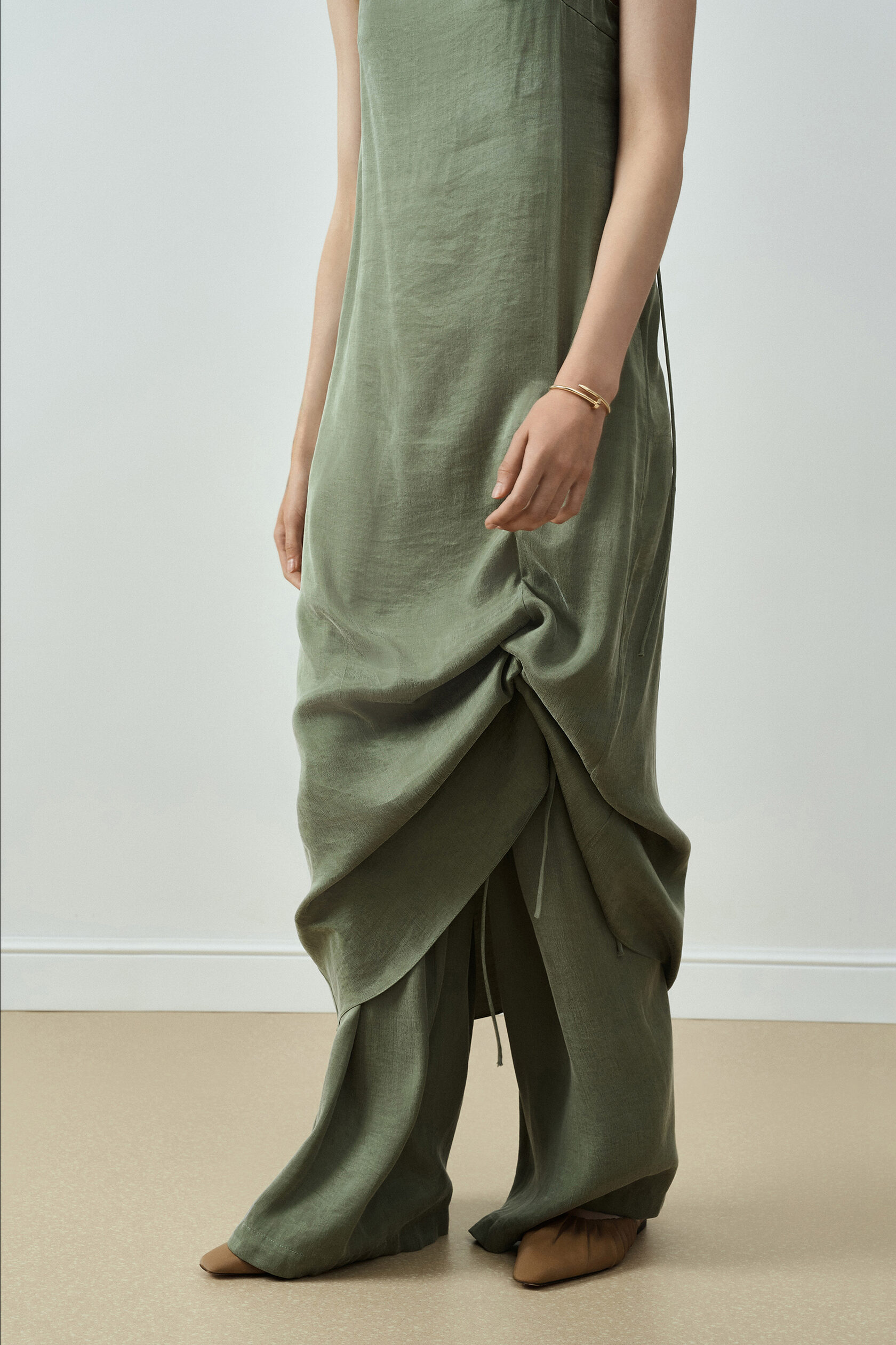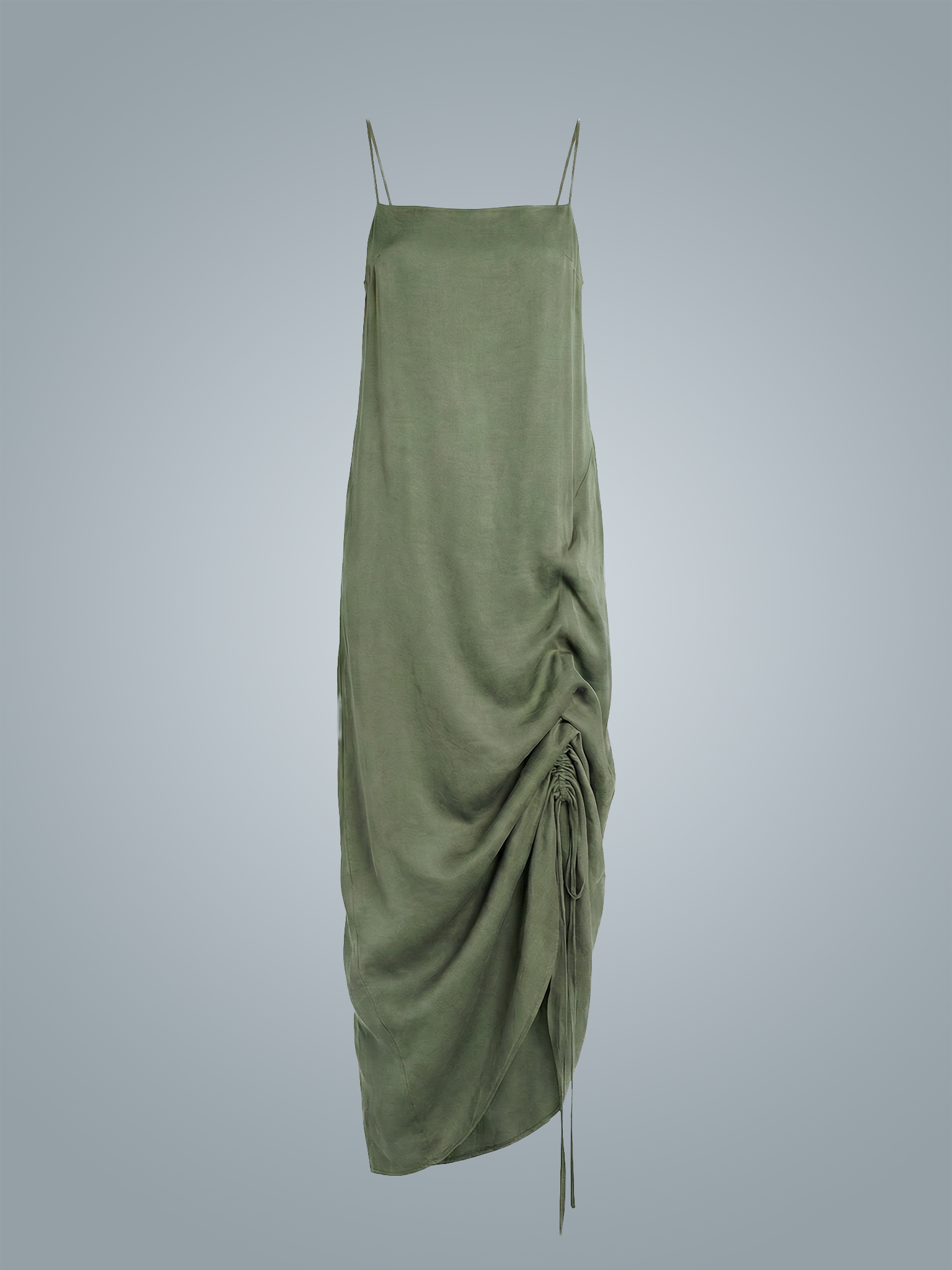Платье из бархатистой вискозы с возможностью изменения длины за счет шнурка и внутренних петель в боковом шве