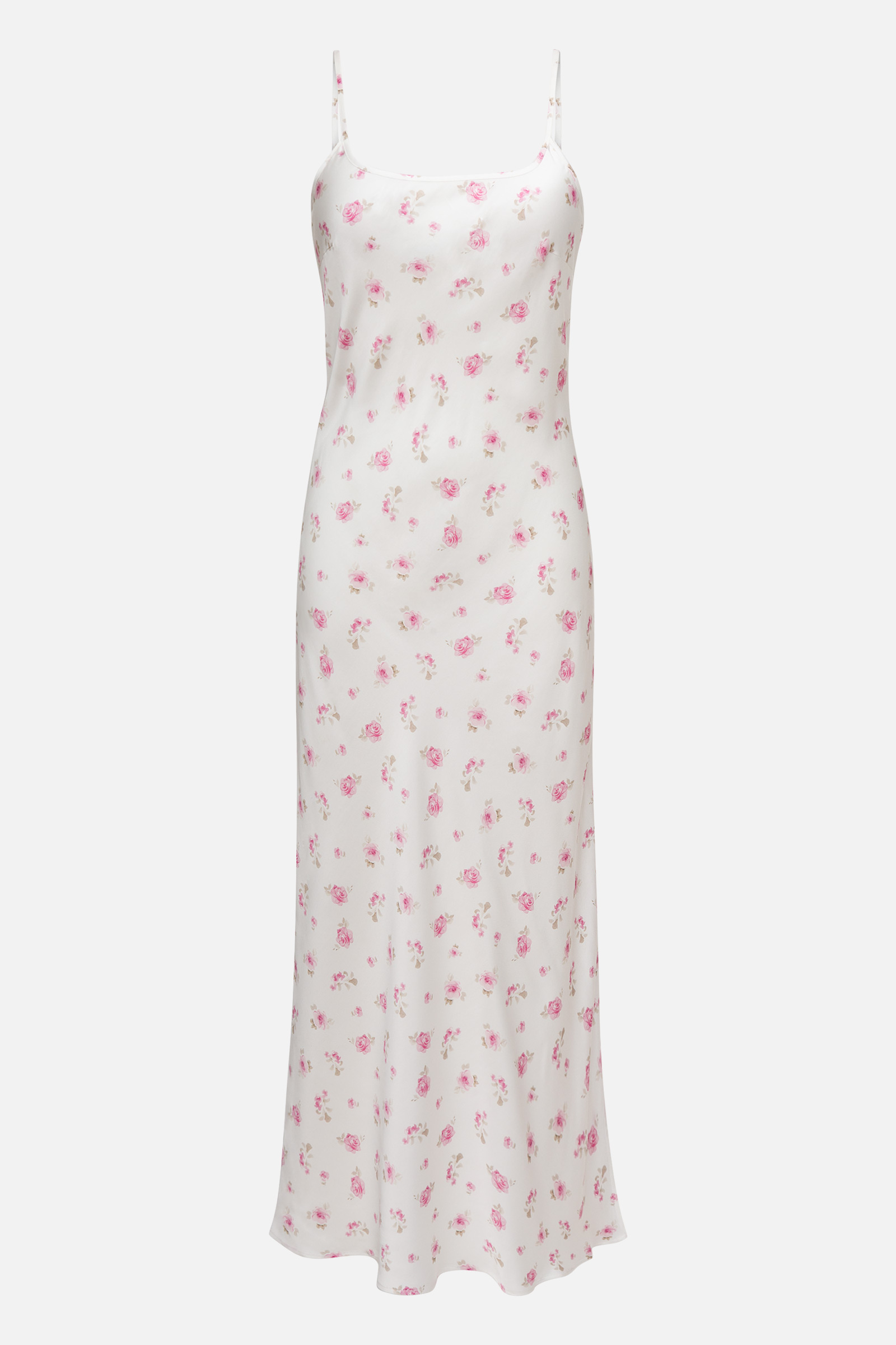 Красиво подчеркивает фигуру благодаря особому крою по косой и имеет удобные регулируемые бретели.