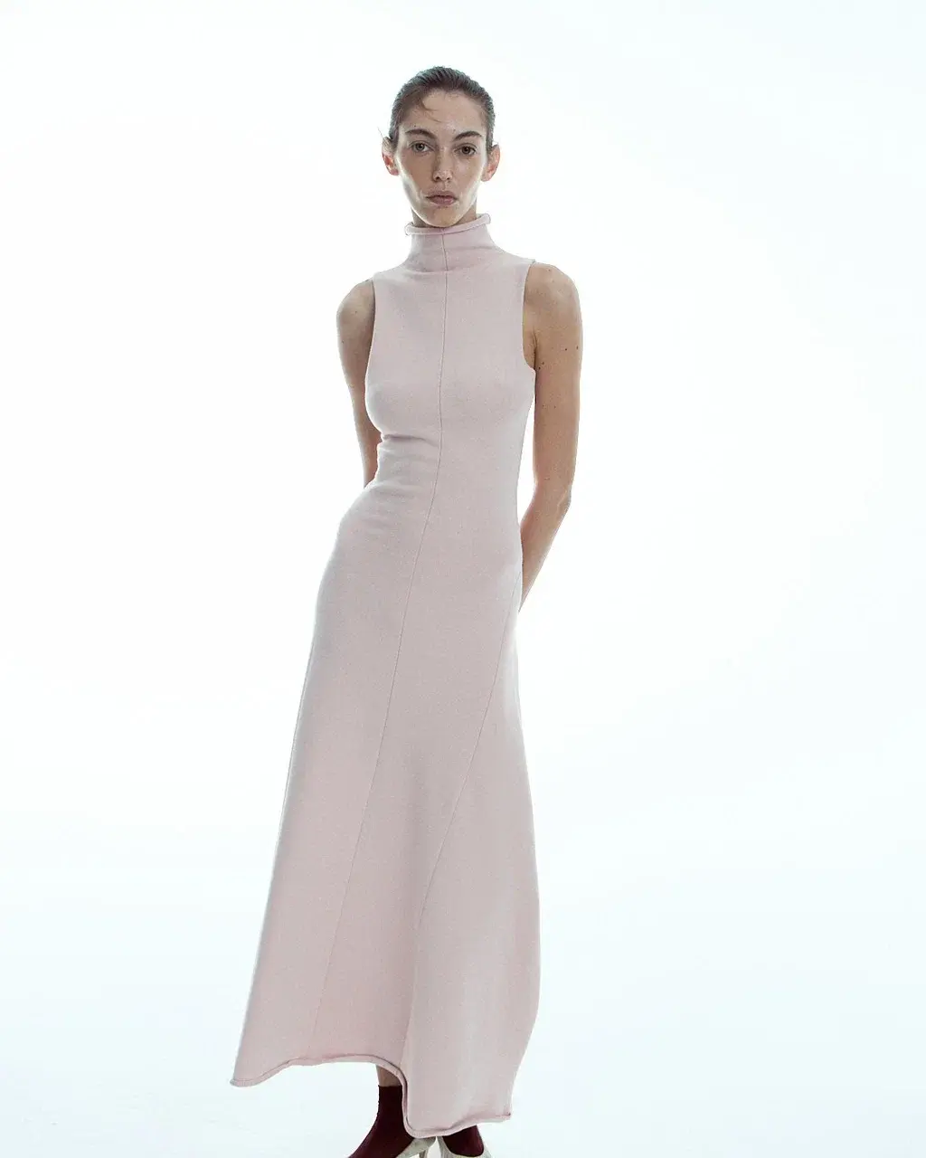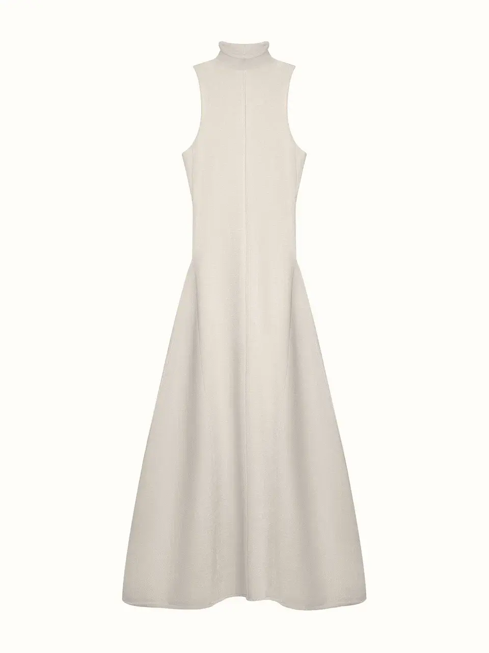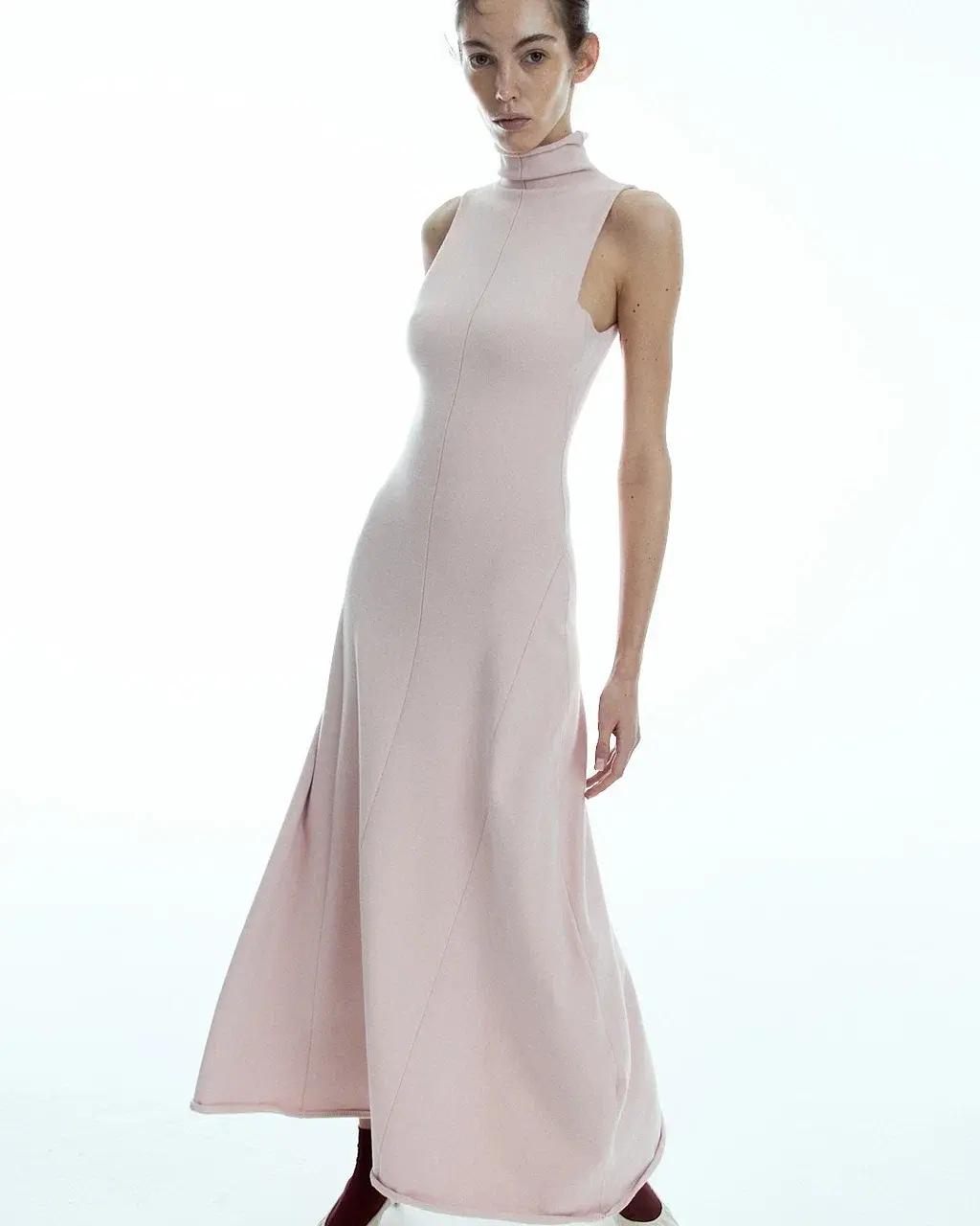 Изысканное платье макси с воротником-стойкой, выполненное из премиальной вискозы с добавлением эластана. Утонченный силуэт верхней части гармонично переходит в расклешенный подол от талии, создавая женственный и элегантный образ. Это универсальное платье станет как базовым элементом вашего гардероба, так и романтичным акцентом в любом образе.