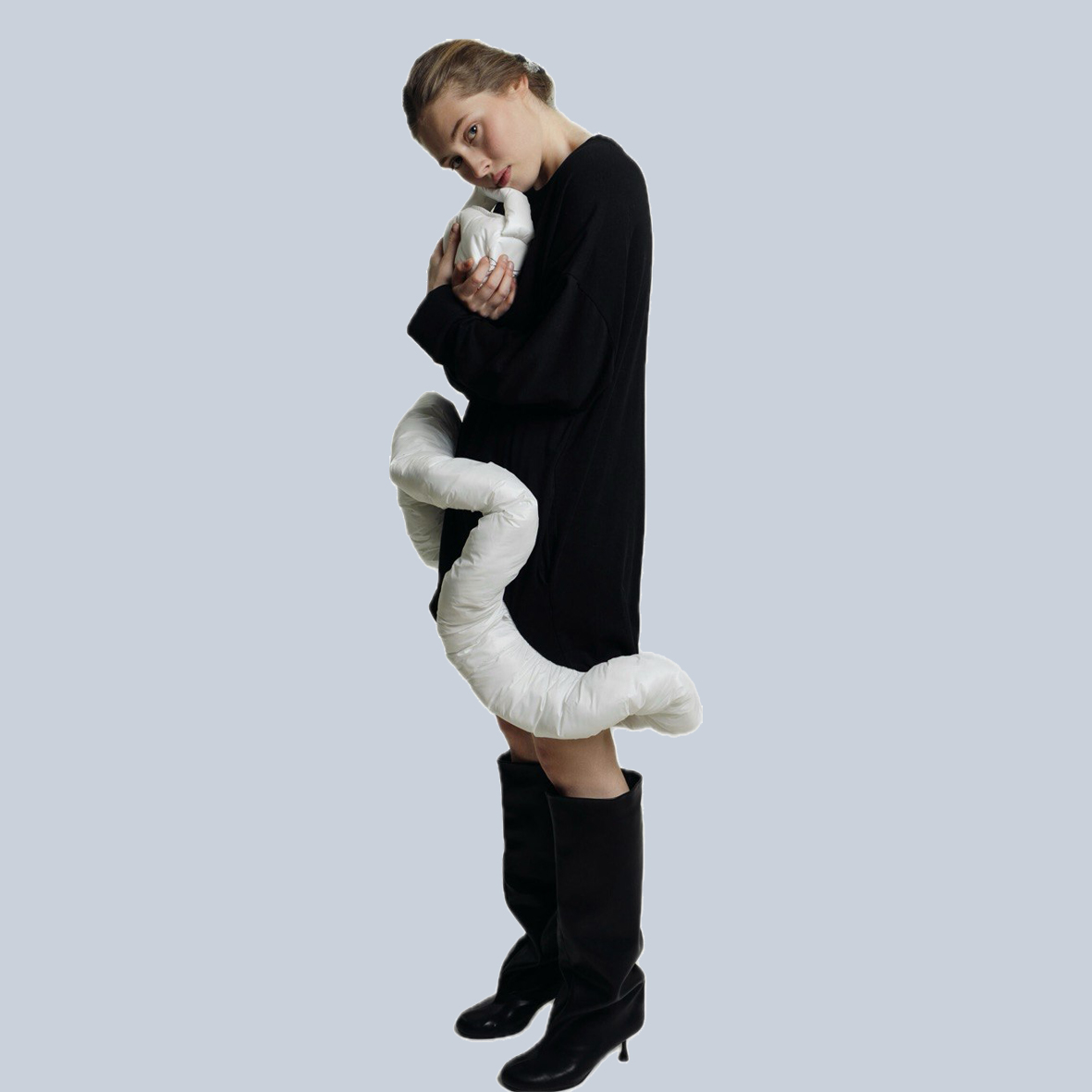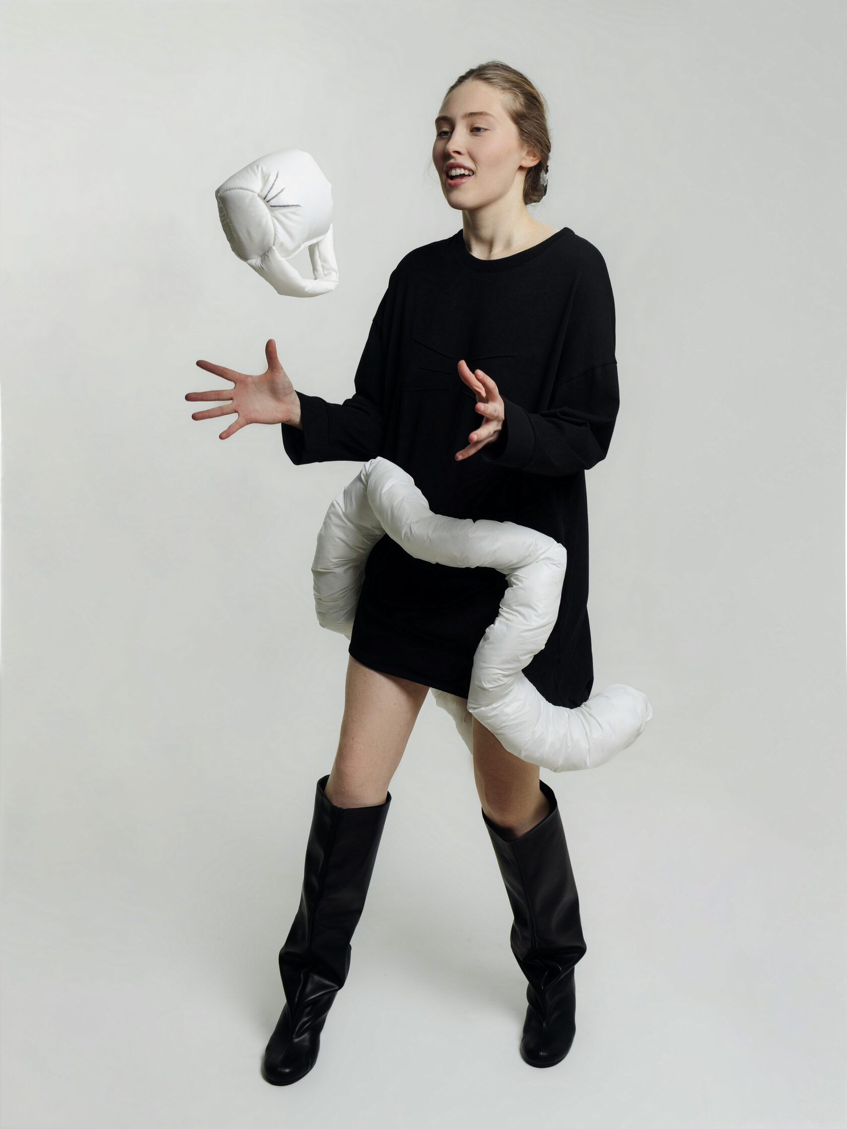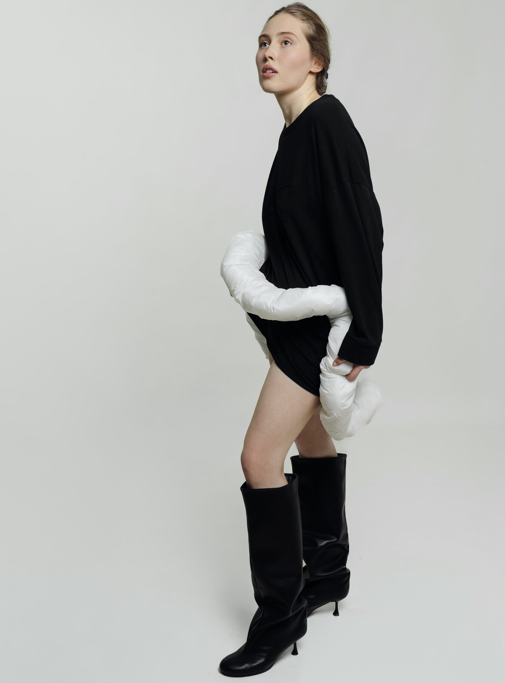 Суть фасона: Состояние лёгкой импульсивности. Игривый, подвижный силуэт готов сорваться в танец или бег, а волан — это акцентный жест, финальный штрих перед прыжком.