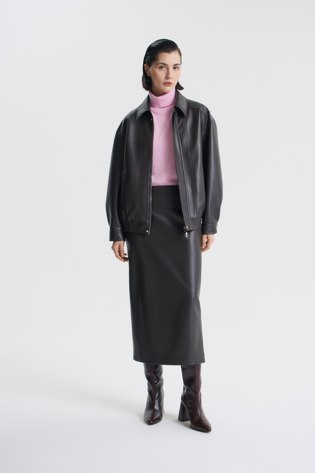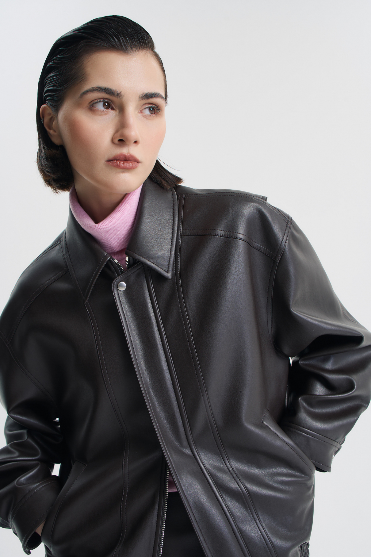 Бомбер оверсайз шоколадного цвета выполнен из мягчайшей гладкой экокожи премиум-качества, которая при этом хорошо держит форму. Модель О-силуэта дополнена продуманными деталями: дополнительные складки в области плеча обеспечивают комфорт движения, а резинка по низу фиксирует объем. Рукава застегиваются на кнопки, а сам бомбер — на двухзамковую металлическую молнию, которая скрыта под планкой. Конструкция молнии позволяет расстегивать и застегивать ее с обеих сторон. Бомбер на подкладке с фирменной декоративной отделкой.