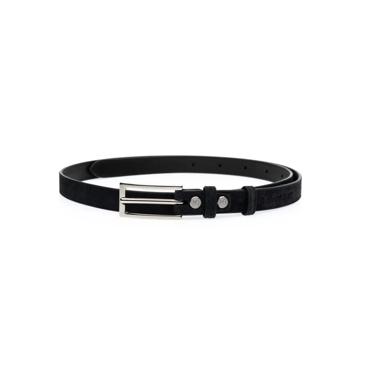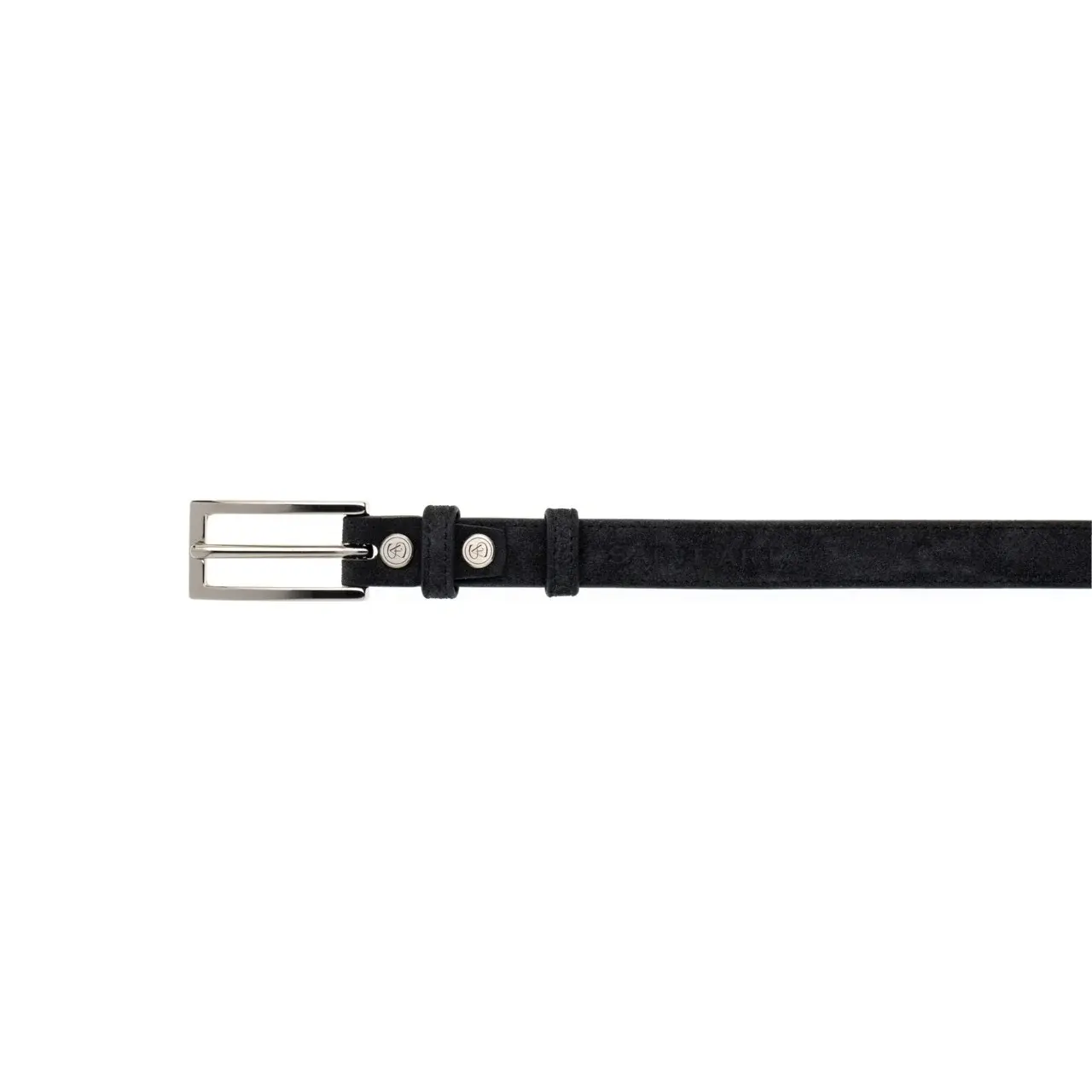 Ремень Salve чёрного цвета выполнен в сочетании отобранной замши и гладкой кожи Mastrotto, с изящной итальянской пряжкой из нержавеющей стали. С течением времени качество такой кожи не меняется, оттенок обретает благородную глубину, делая ваш аксессуар неповторимым.