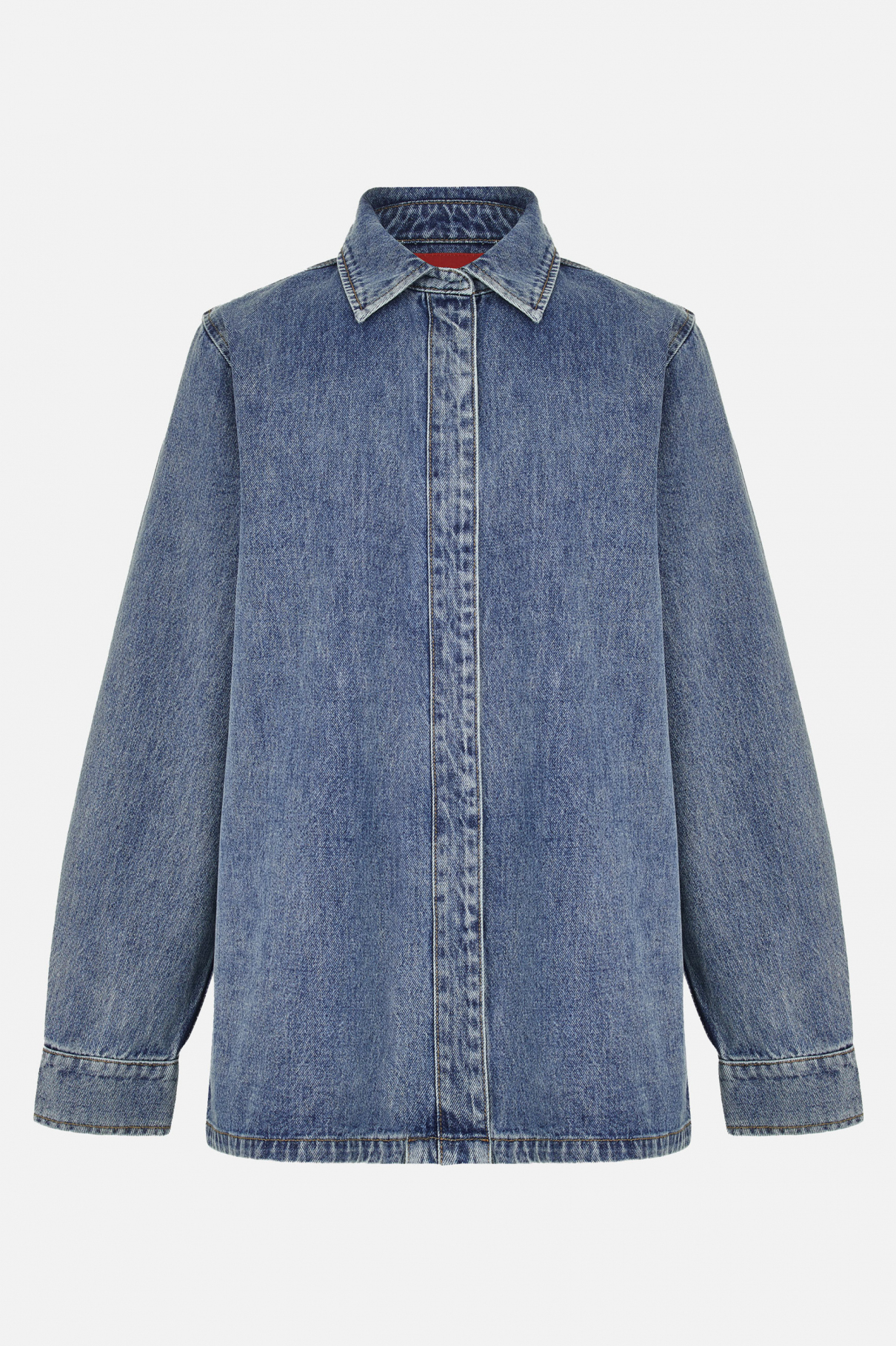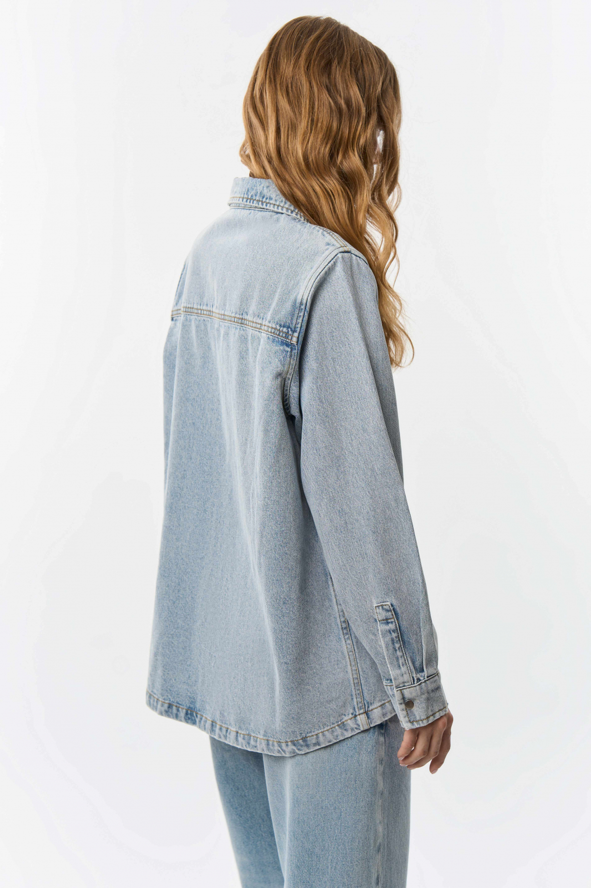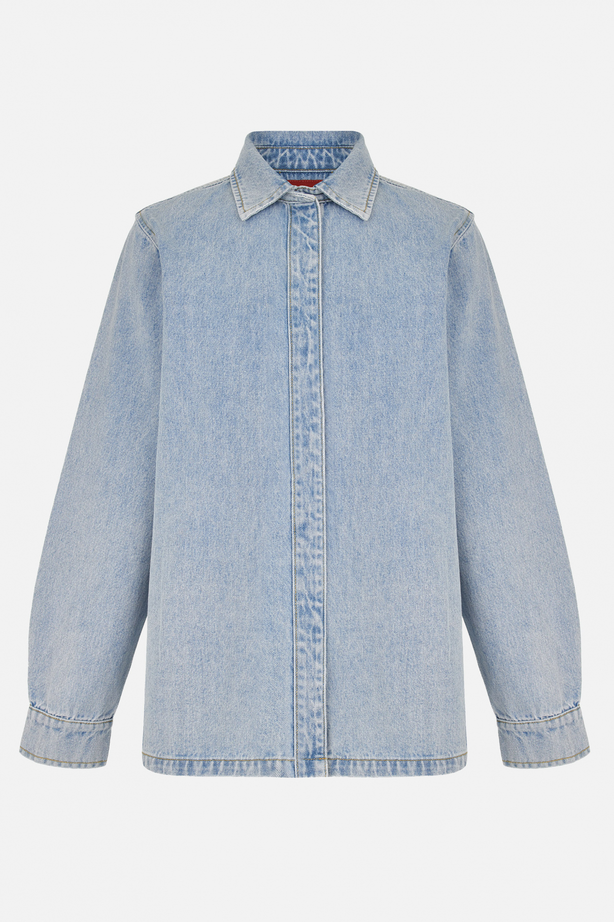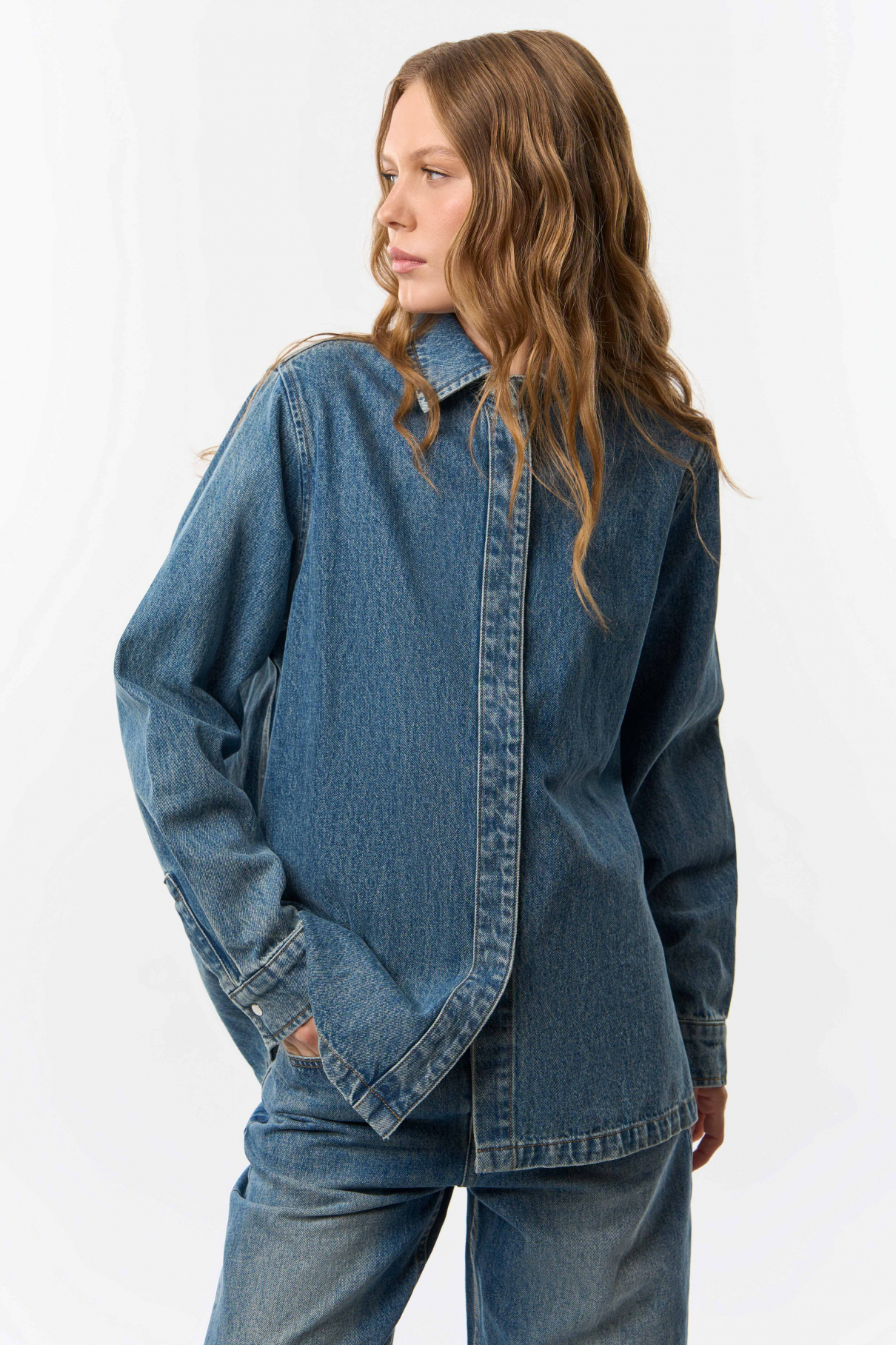 Джинсовая рубашка длиной до середины бедер. Выполнена из 100% хлопка, материал плотный и практичный в носке. Модель и ее рукава застегиваются на металлические кнопки. Более универсальную вещь, чем рубашка из денима, найти сложно: носить ее можно самостоятельно, надевать поверх майки или топа, а также в качестве нижнего слоя — под объемный свитер или вязаный жилет. FASHION REBELS предлагает такую модель в двух вариантах — в светло-голубом и синем оттенках.