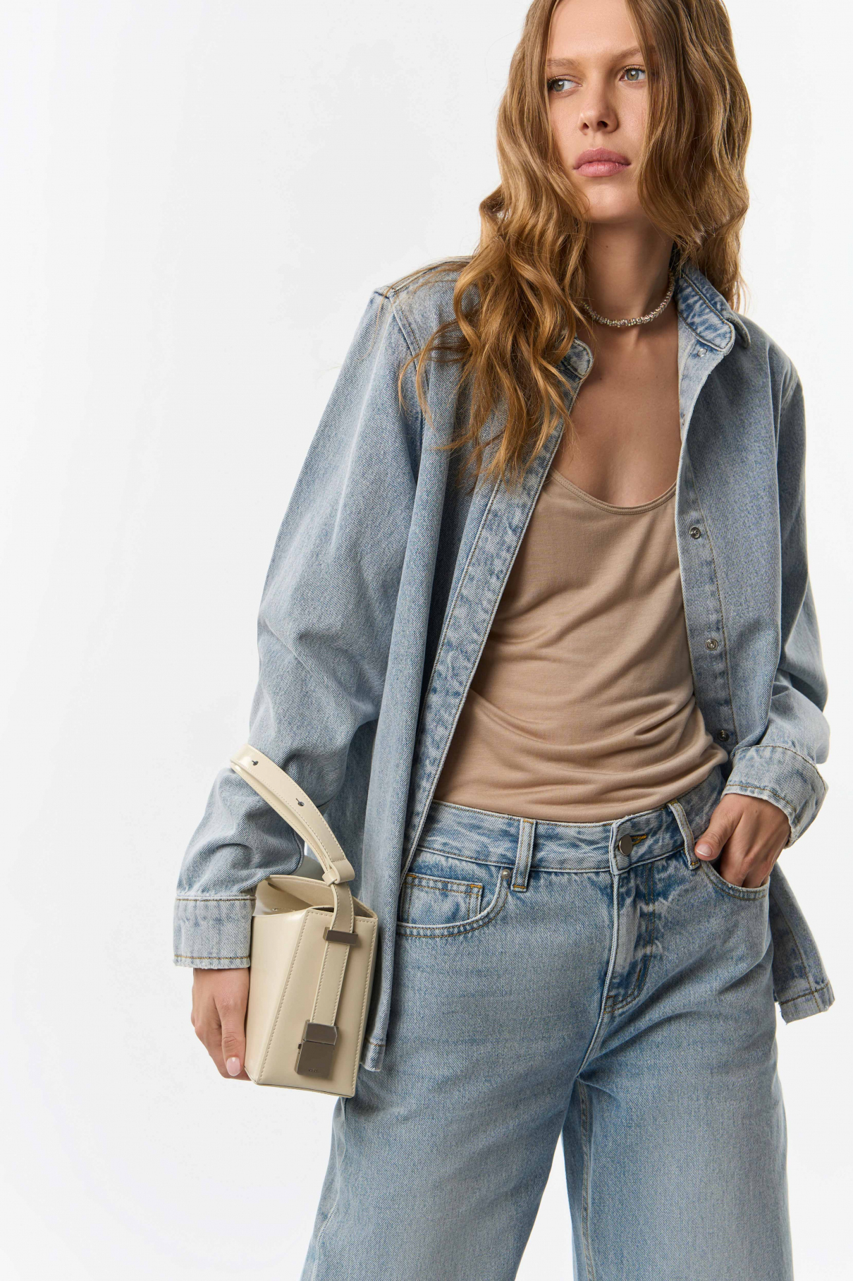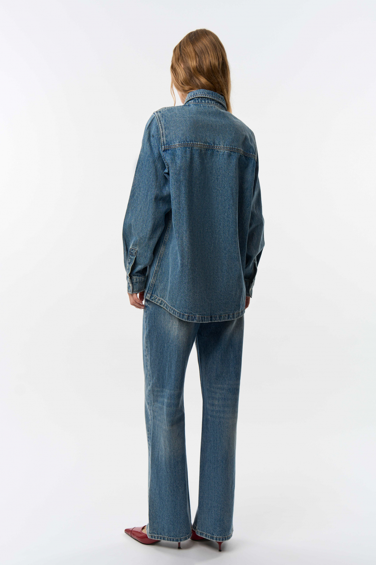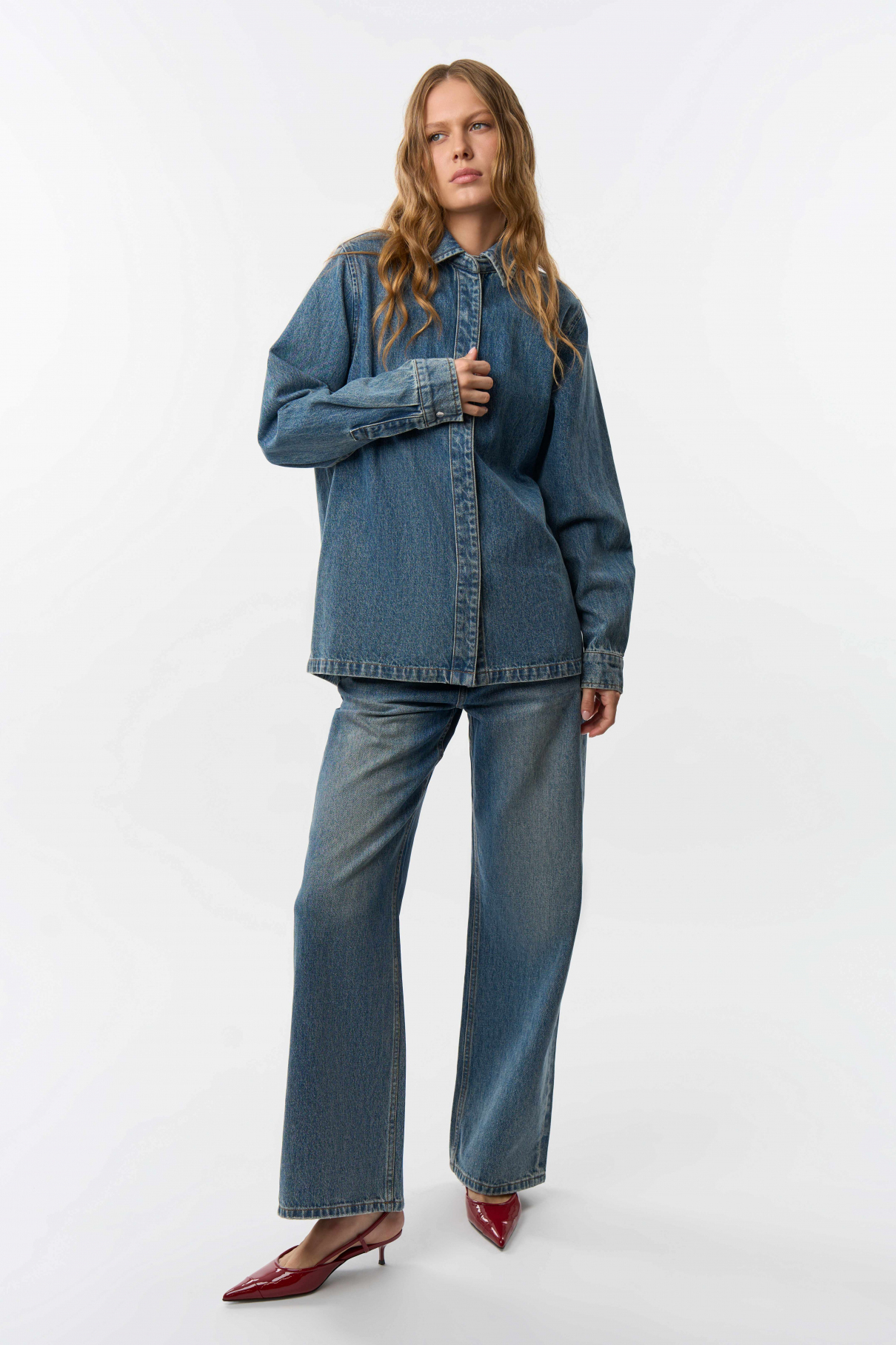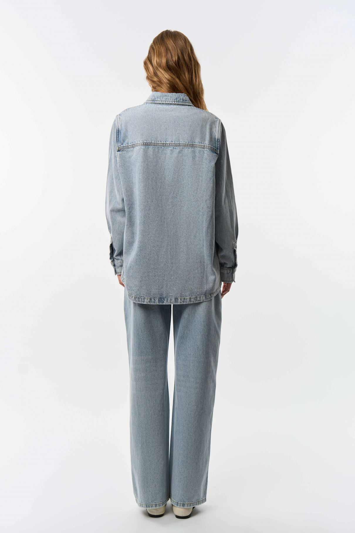 Джинсовая рубашка длиной до середины бедер. Выполнена из 100% хлопка, материал плотный и практичный в носке. Модель и ее рукава застегиваются на металлические кнопки. Более универсальную вещь, чем рубашка из денима, найти сложно: носить ее можно самостоятельно, надевать поверх майки или топа, а также в качестве нижнего слоя — под объемный свитер или вязаный жилет. FASHION REBELS предлагает такую модель в двух вариантах — в светло-голубом и синем оттенках.