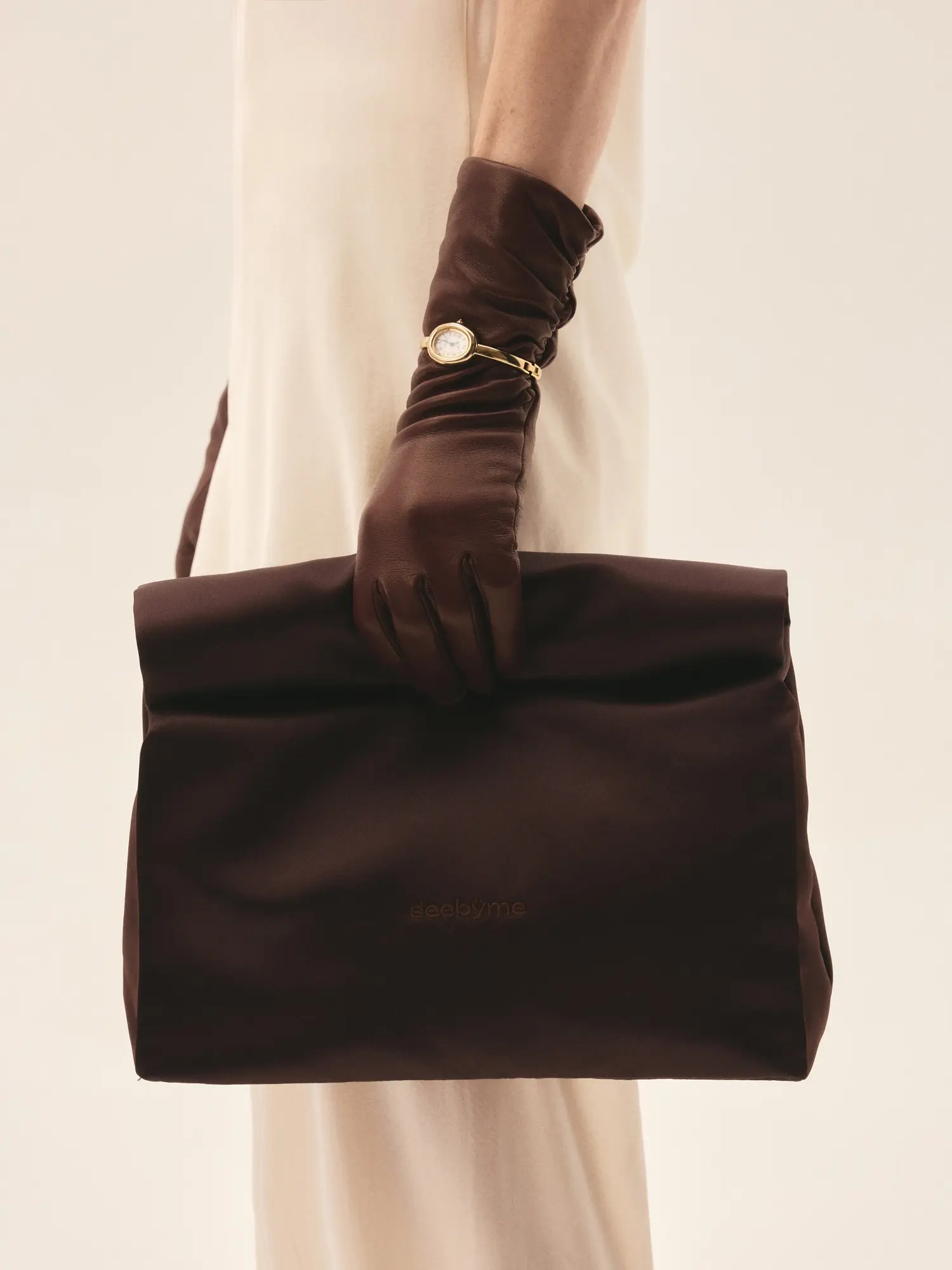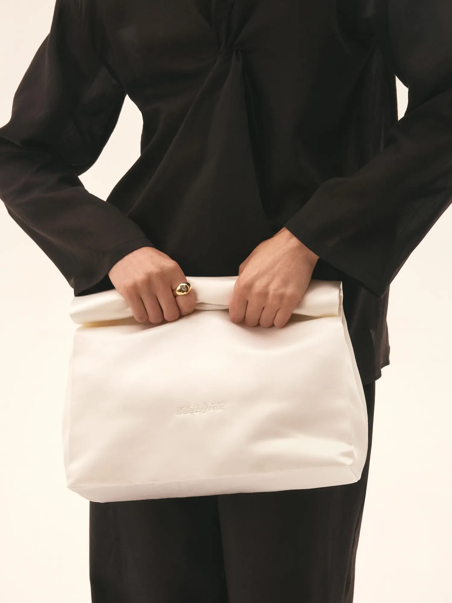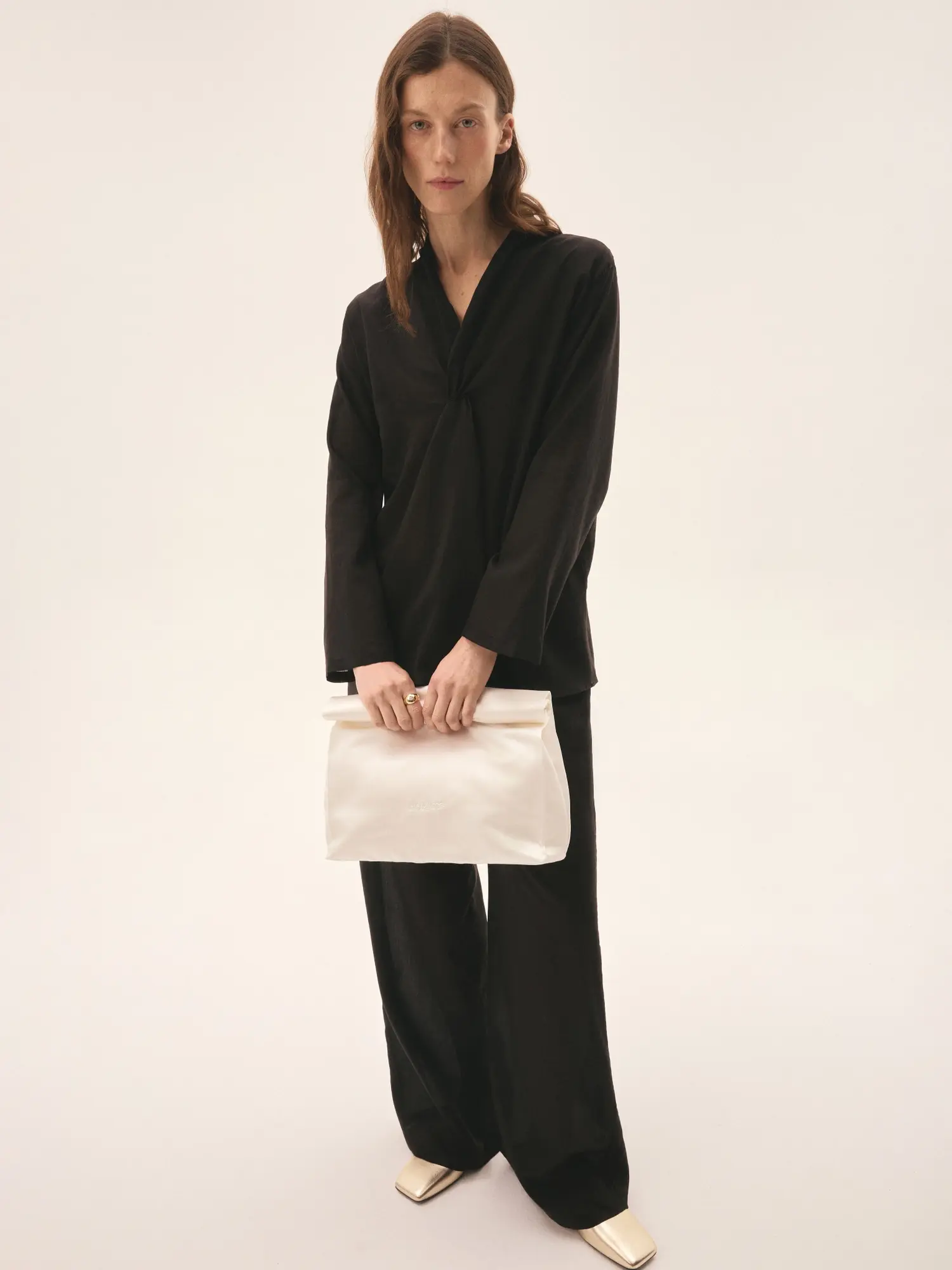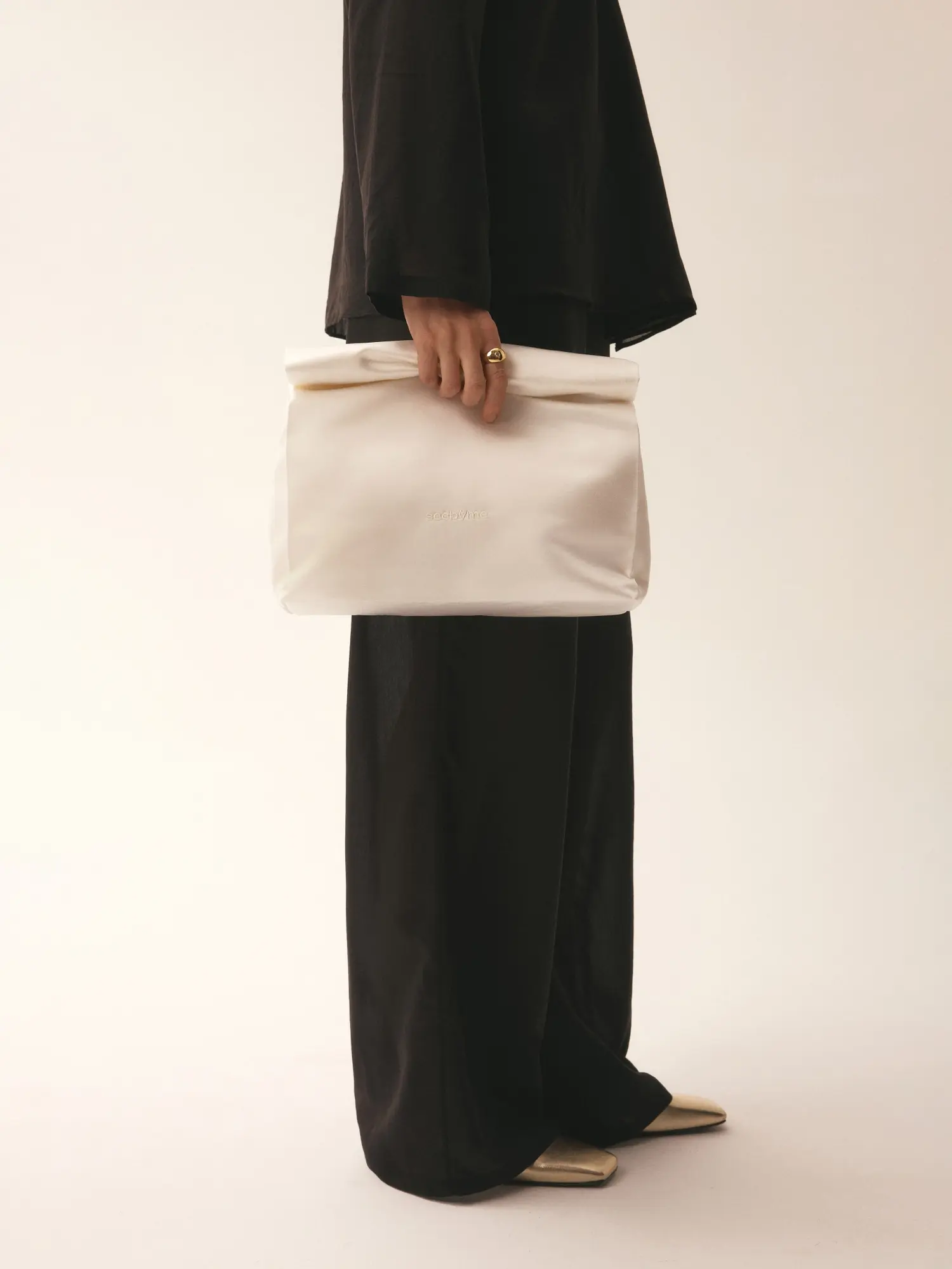Сатиновый клатч-конверт с вышивкой логотипом в тон, уплотненным дном и цельным отделом внутри. Застежка на магнит фиксирует форму, сохраняя плавность линий. Идеальное дополнение к вечернему образу— для тех, кто ценит лаконичные детали.