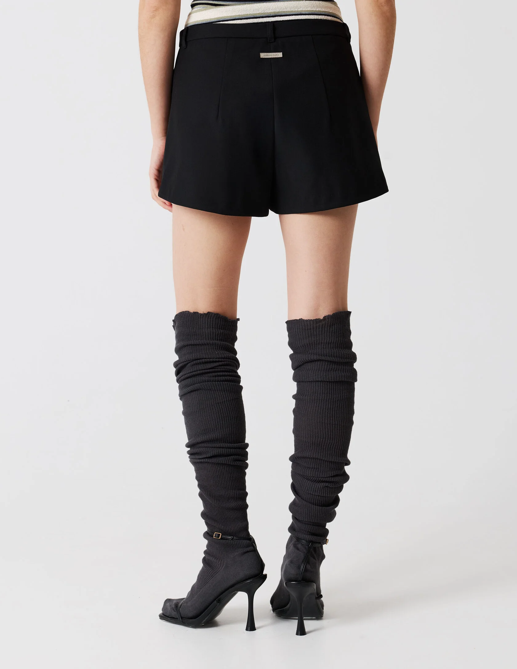 Мини-шорты со средней посадкой и лаконичным кроем, выполнены из костюмной ткани. Классическая форма шорт подчеркивает линию талии и делает их универсальной базой — как для костюмных образов с пиджаком, так и для более смелых сочетаний.