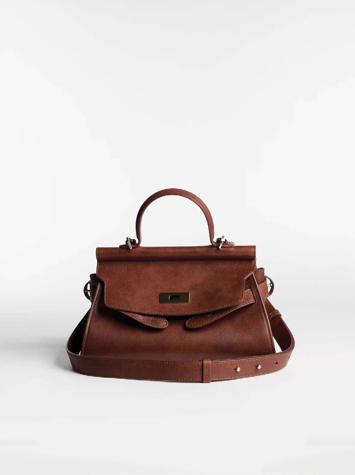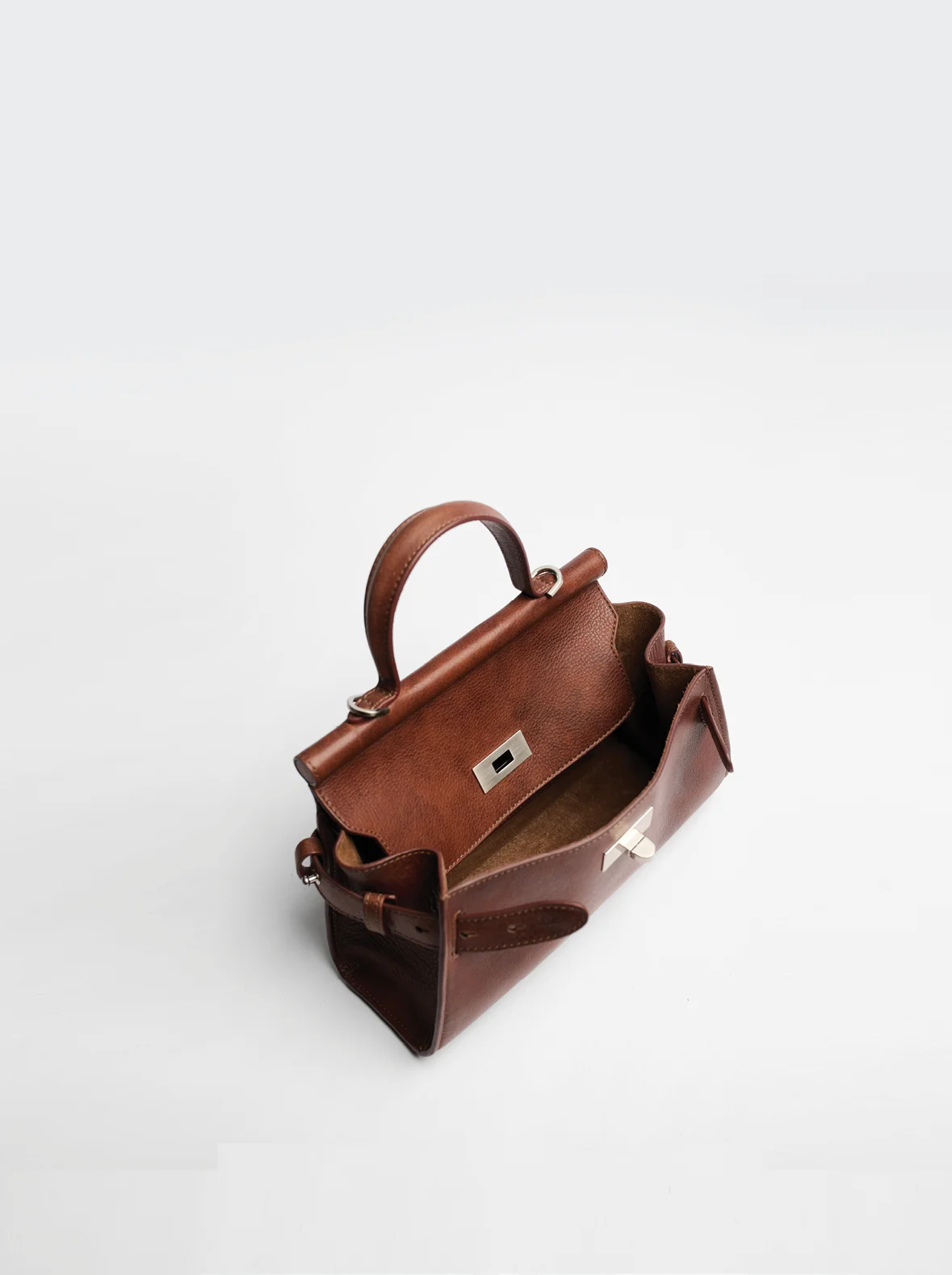 Лаконичный поворотный замок с логотипом бренда, выполнен из высококачественного сплава на основе латуни и никеля с серебряным покрытием.