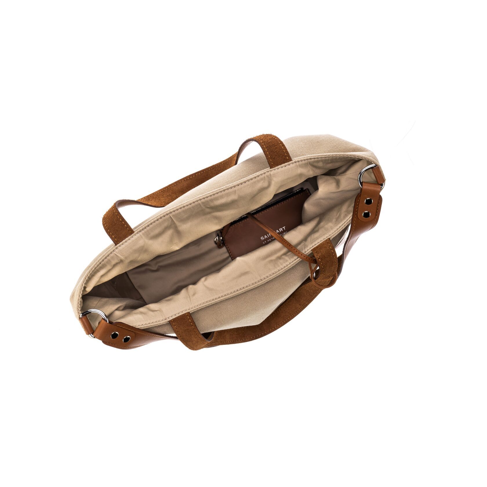 При создании сумки используются высококачественные материалы: кожа без искусственных покрытий Full grain, долговечная литая латунная фурнитура, мягкая хлопковая итальянская ткань молочного цвета. Наличие ручек и плечевого ремня позволяет универсально носить эту модель как в руках, так и на плече.