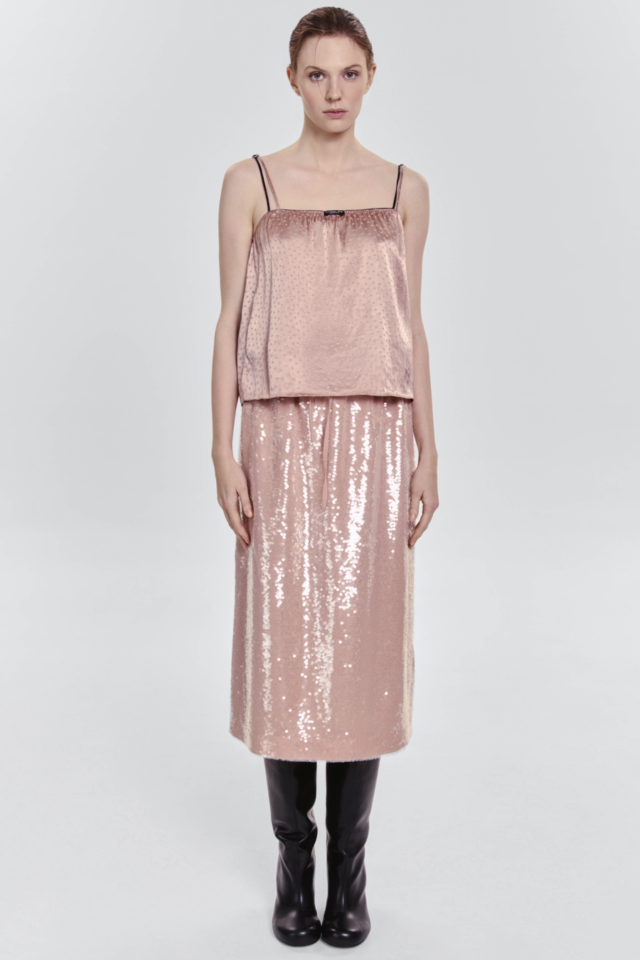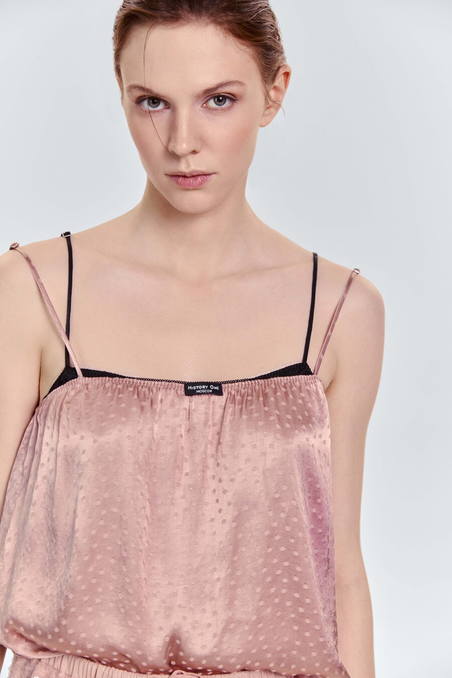 Минималистичный крой делает топ универсальным: он одинаково уместен и под строгий жакет, и в дуэте с джинсами, и в вечернем образе. Такая вещь не требует громких акцентов — она сама по себе выстраивает настроение.