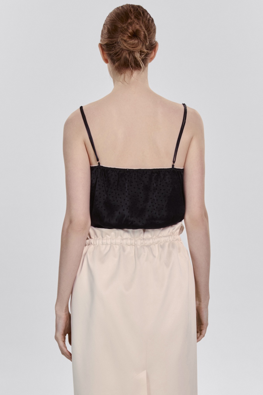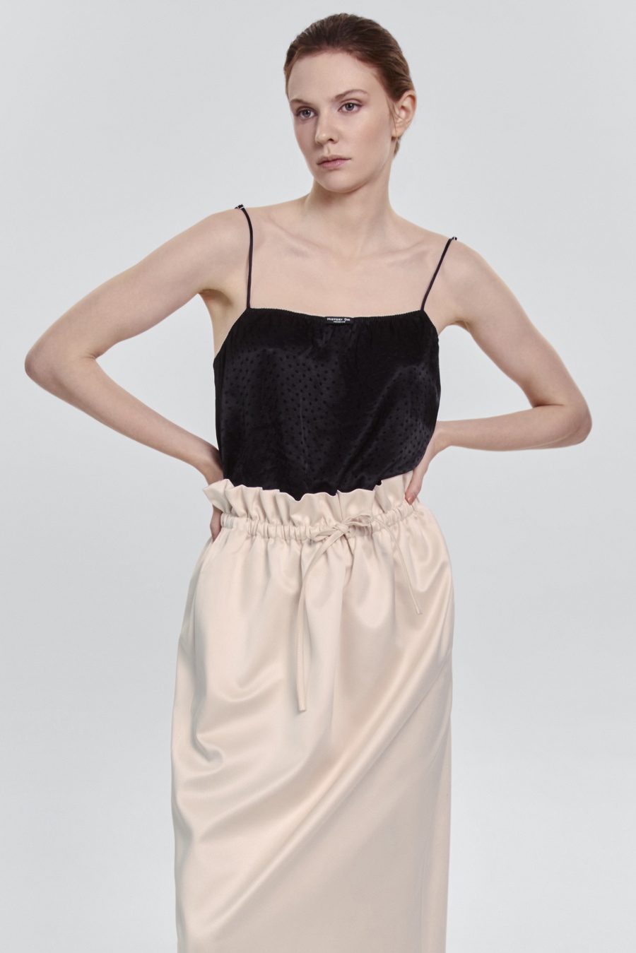 Бельевой топ из атласа — это тонкая грань между расслабленной роскошью и чувственной элегантностью. Его гладкая ткань мягко скользит по коже, отражая свет деликатным сатиновым блеском, будто подчеркивая уверенность своей обладательницы.