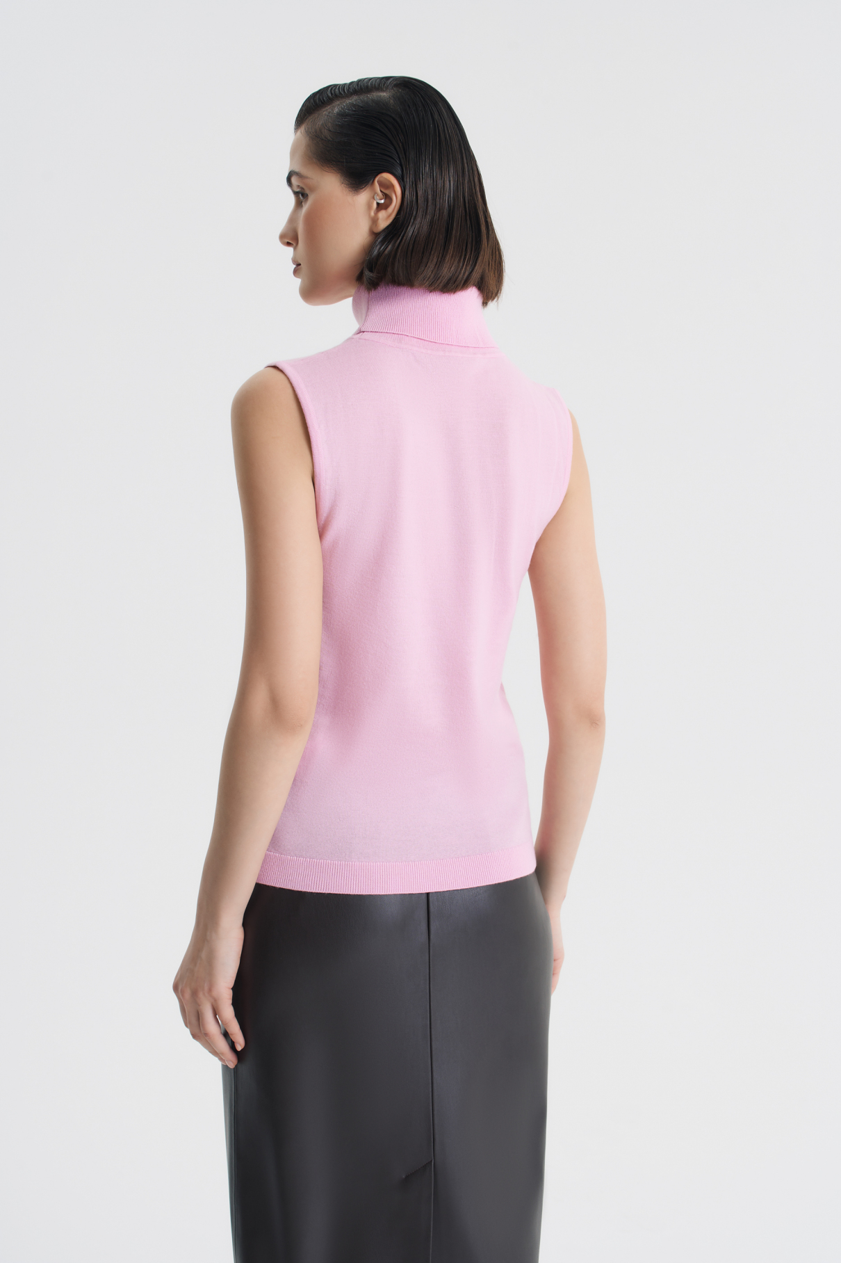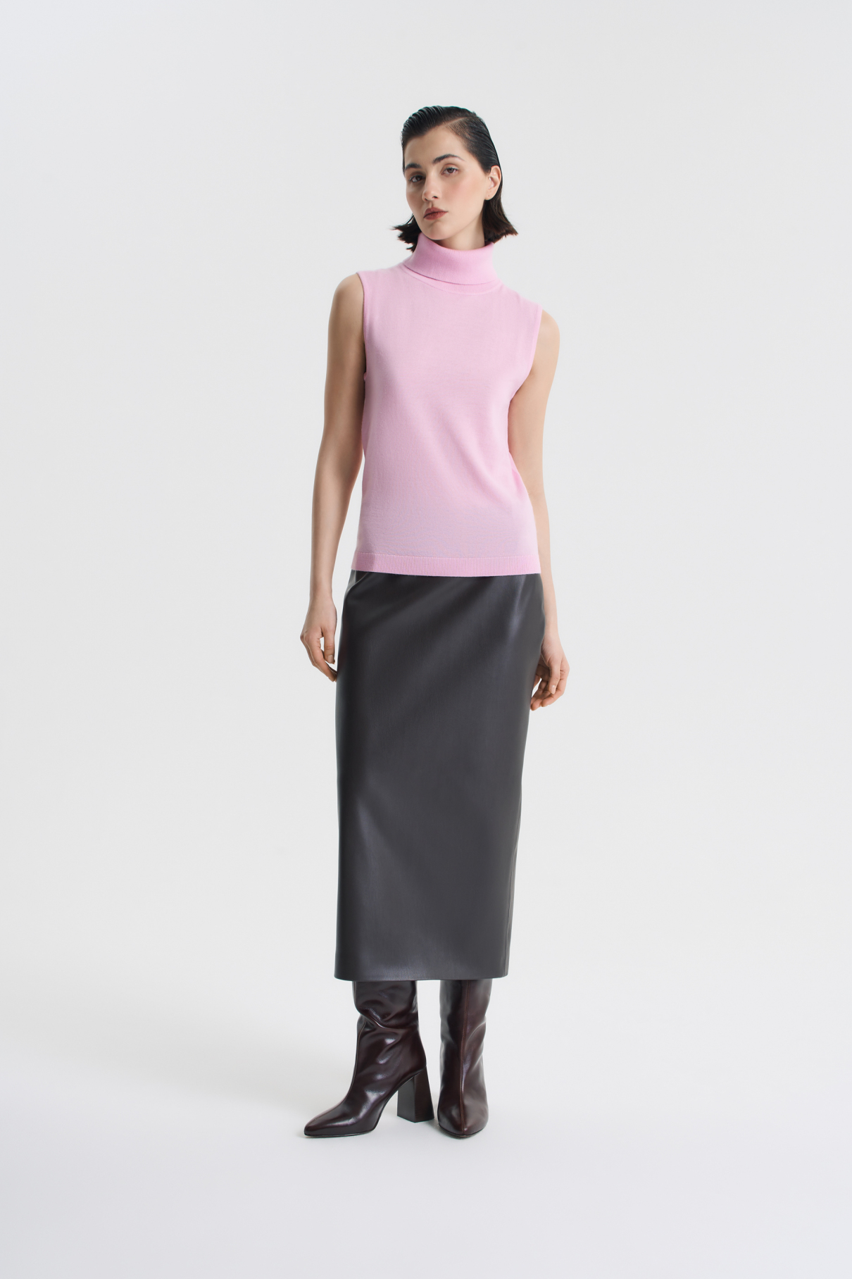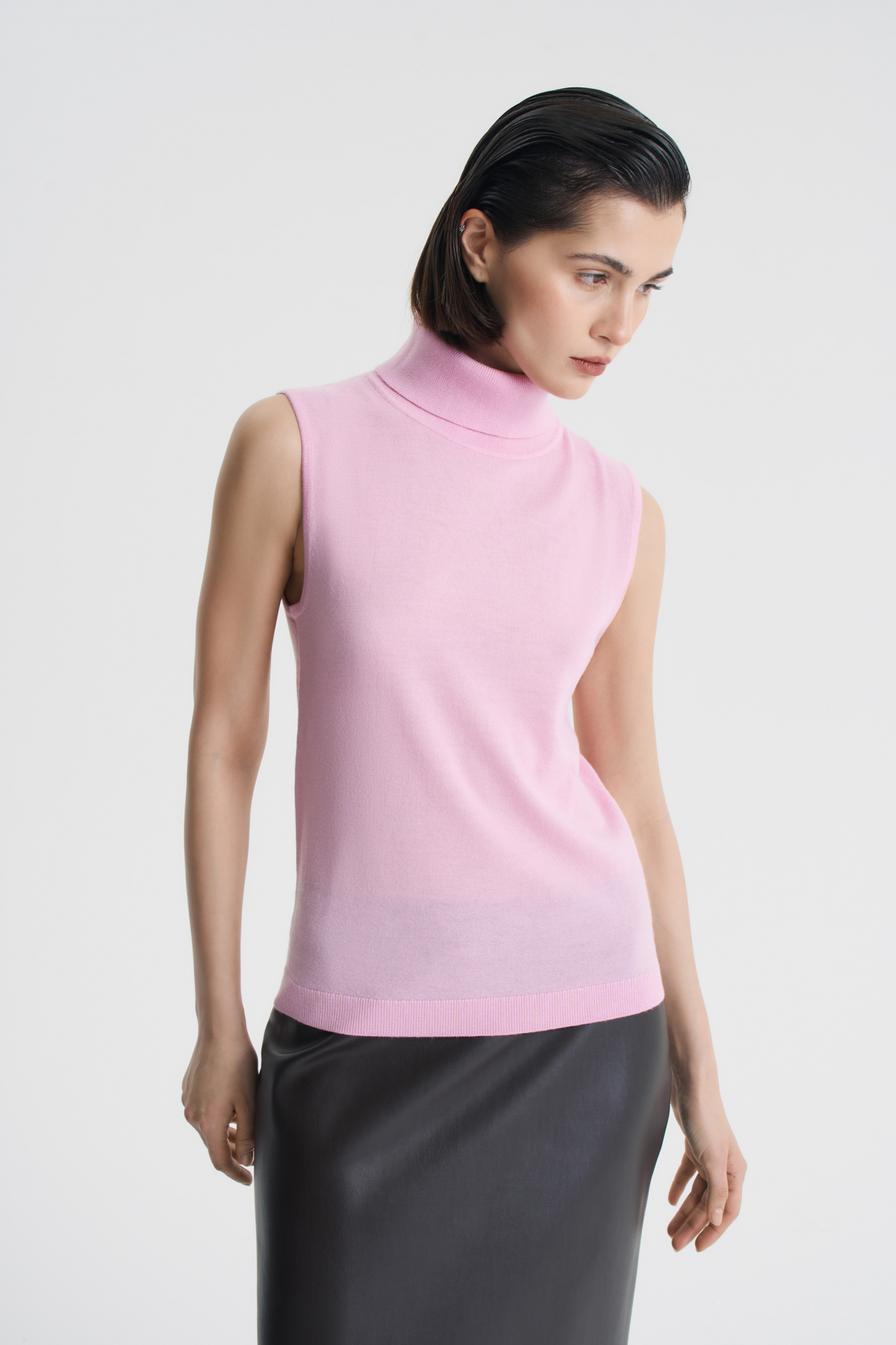 Топ полуприлегающего силуэта из 100%-ной шерсти — элегантный вариант первого слоя одежды в прохладный сезон. Благодаря специальной обработке soft touch мериносовая шерсть приобретает нежную, почти кашемировую текстуру. Топ можно носить трикотажной двойкой вместе с кардиганом Honey или использовать как базовый слой под пиджак. Высокую горловину топа аккуратно сложите вдвое или оставьте мягкими небрежными складками. Топ представлен в двух оттенках: шоколадном и «клубничное мороженое».