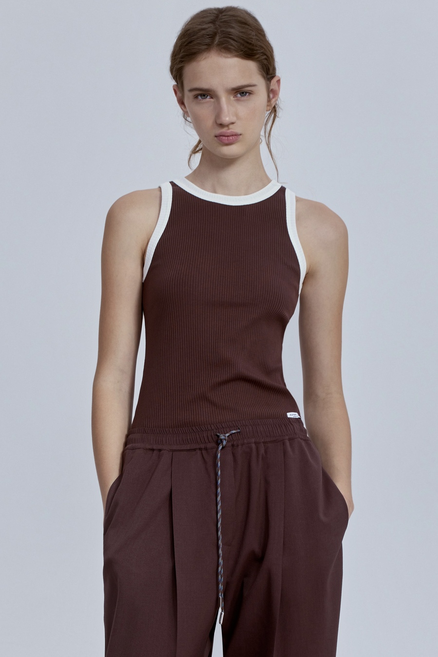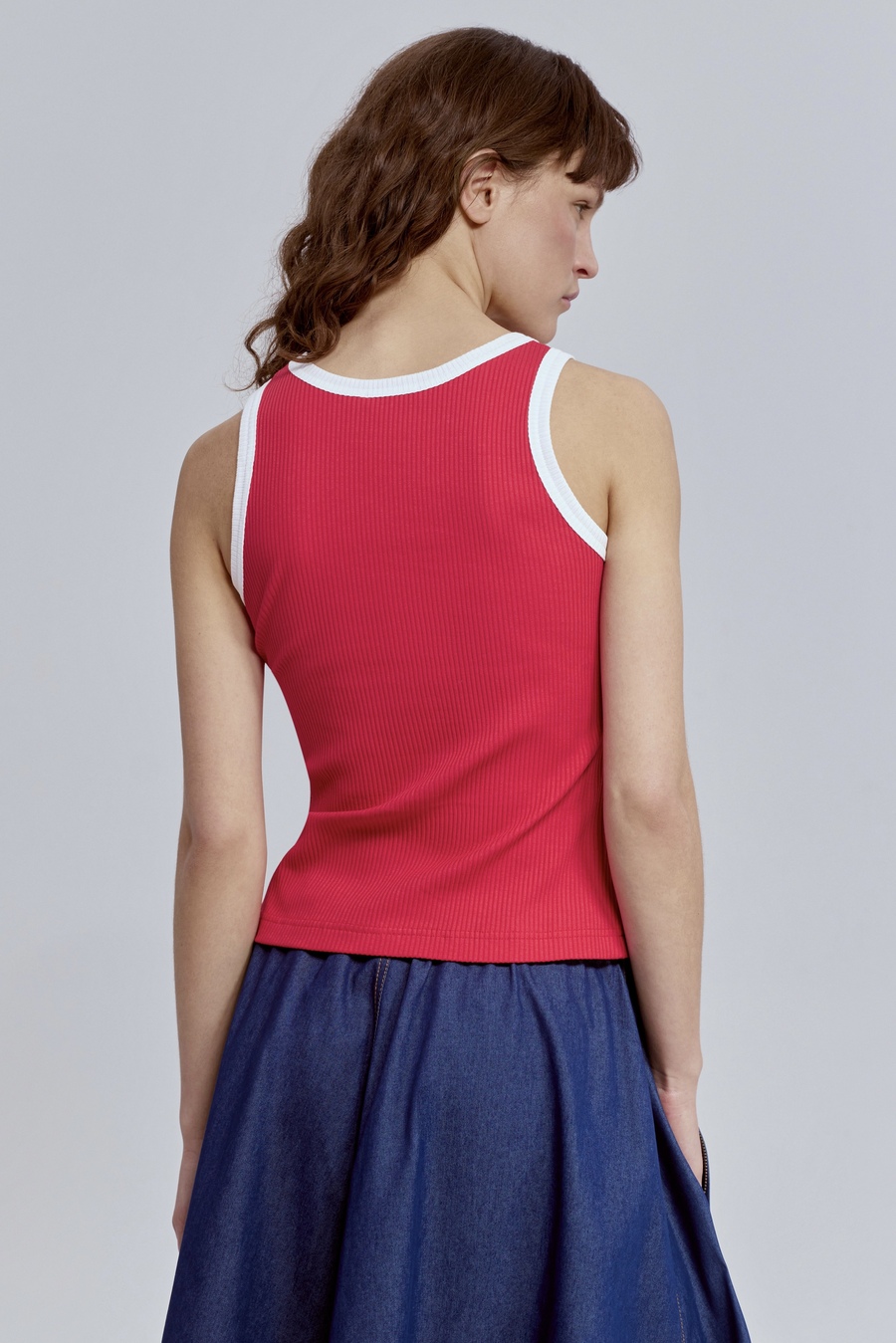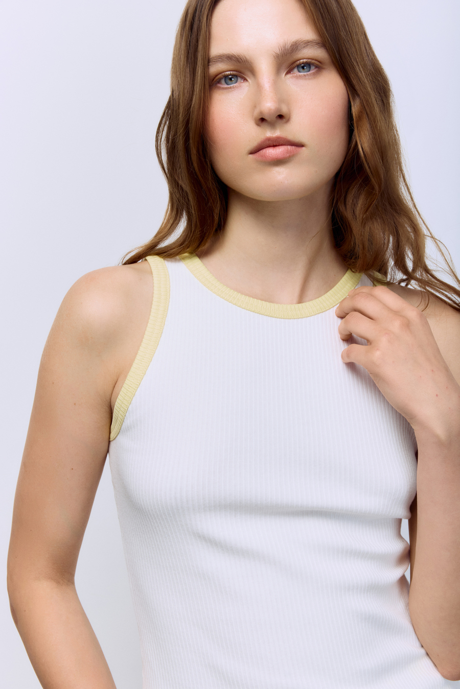 Лаконичный, но с характером. Мягкая хлопковая рибана идеально садится по фигуре, подчёркивая силуэт, а контрастная отделка расставляет точные модные акценты. Этот топ работает как стильная база: самодостаточный в минималистичных образах и эффектный в многослойных сочетаниях.