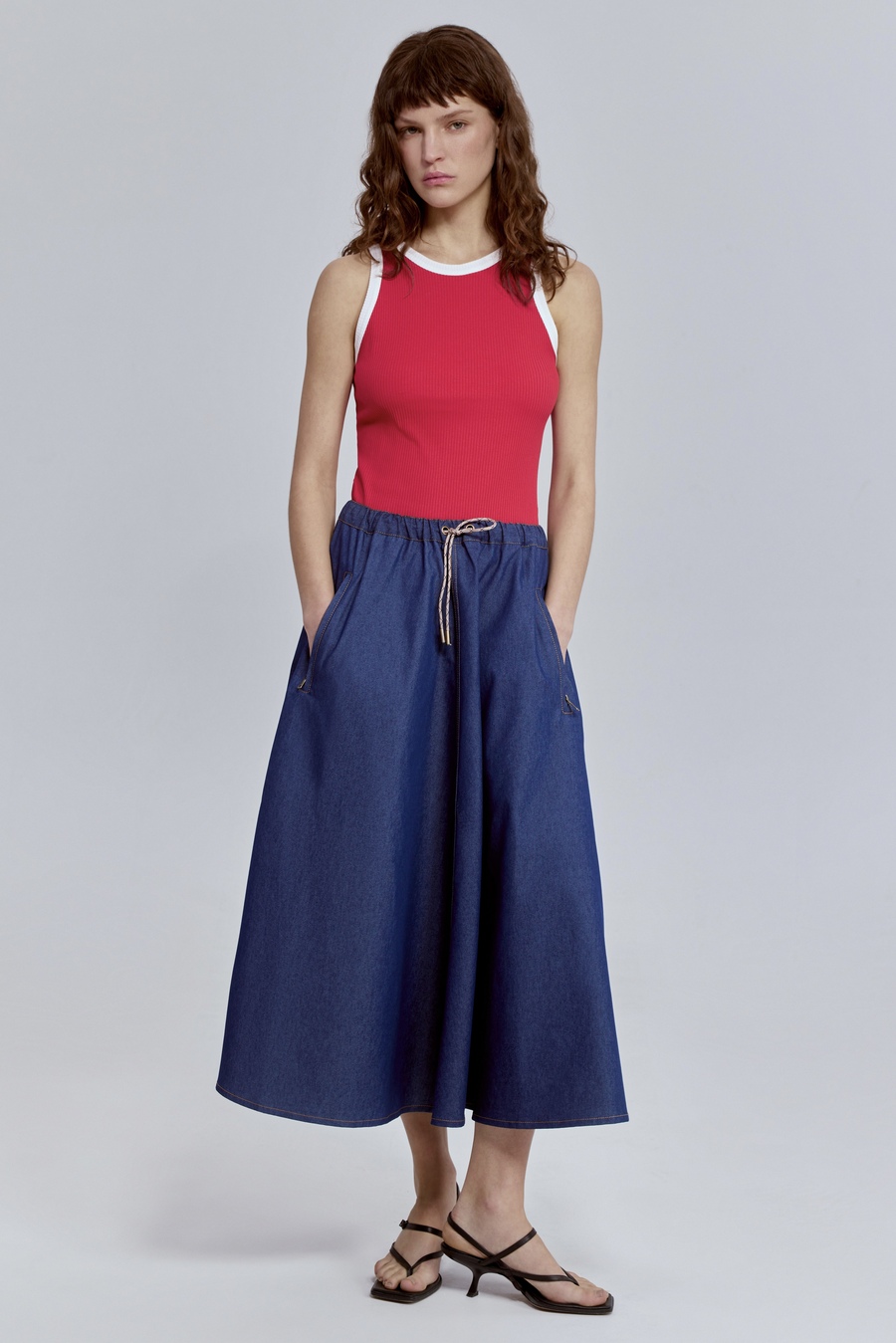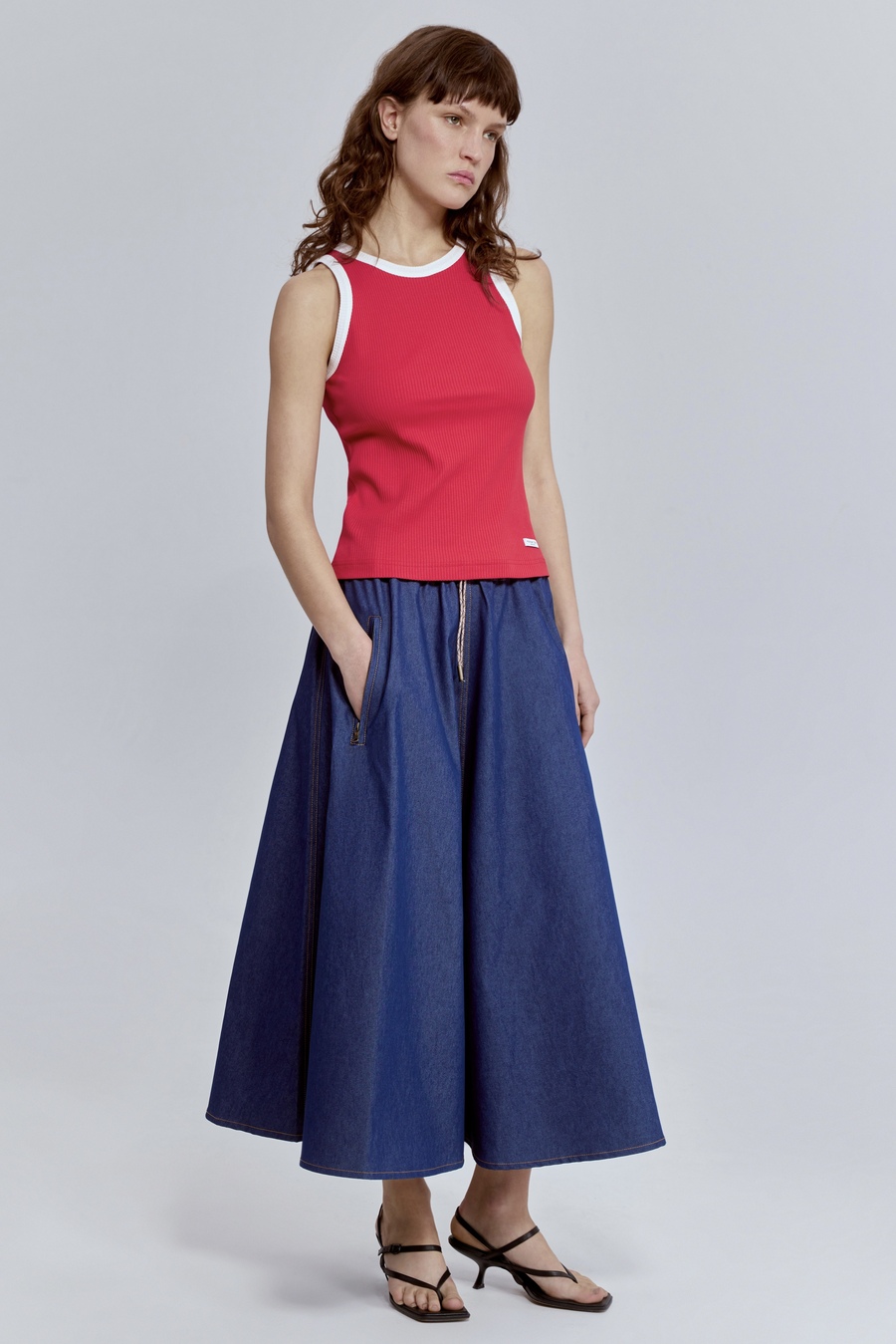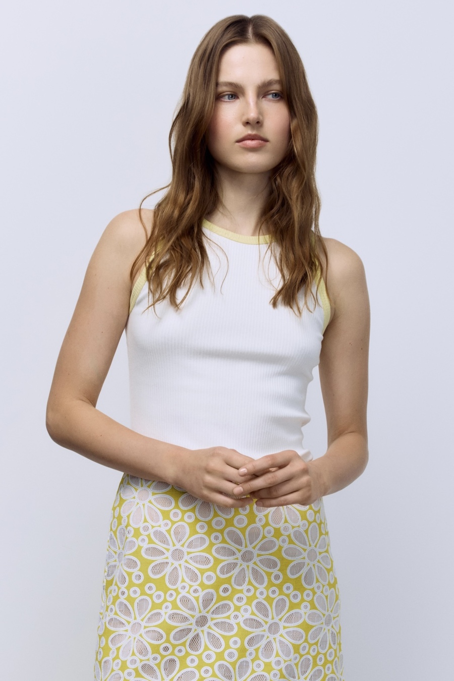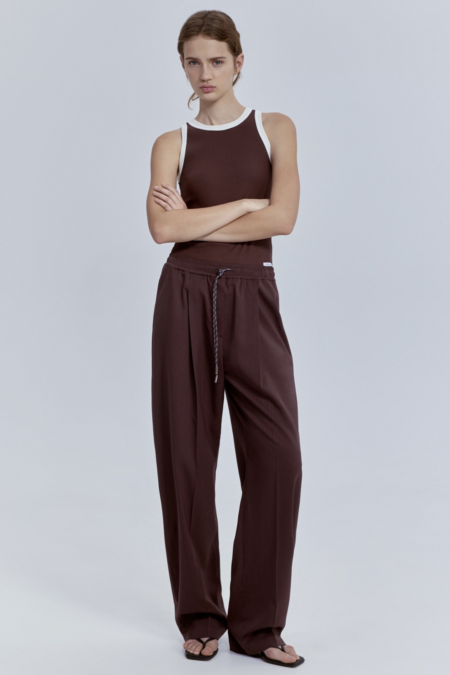 Лаконичный, но с характером. Мягкая хлопковая рибана идеально садится по фигуре, подчёркивая силуэт, а контрастная отделка расставляет точные модные акценты. Этот топ работает как стильная база: самодостаточный в минималистичных образах и эффектный в многослойных сочетаниях.