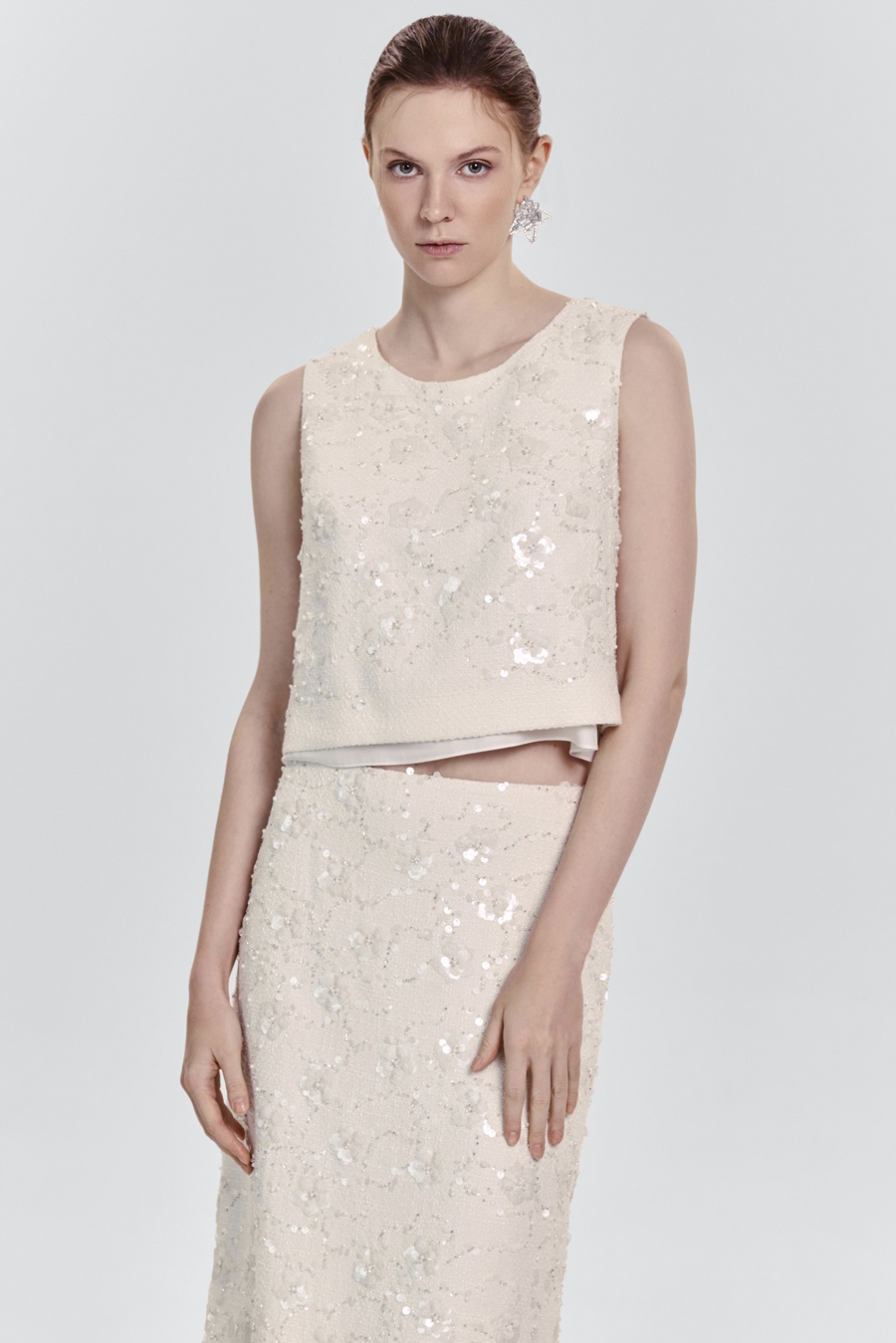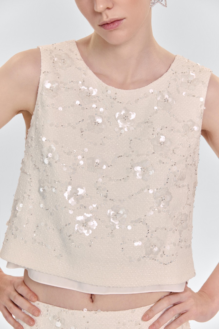 Топ из твида с бисером и пайетками